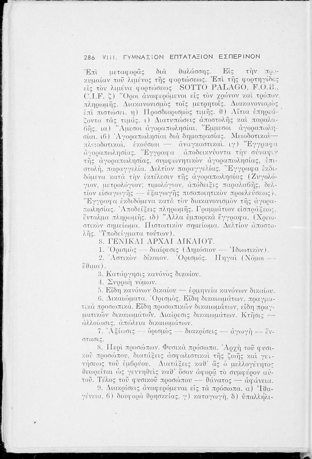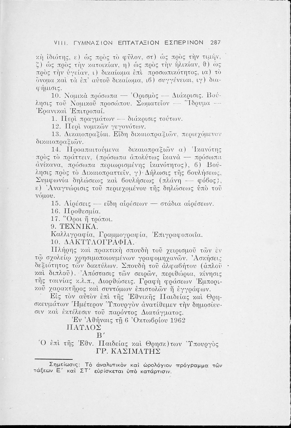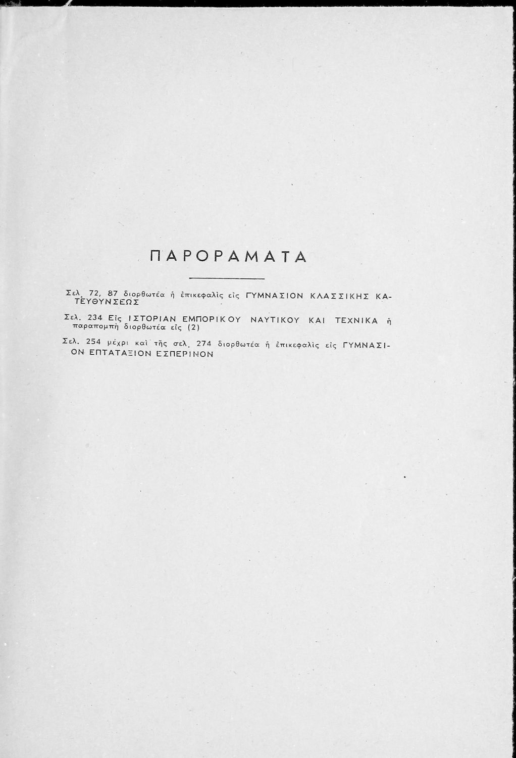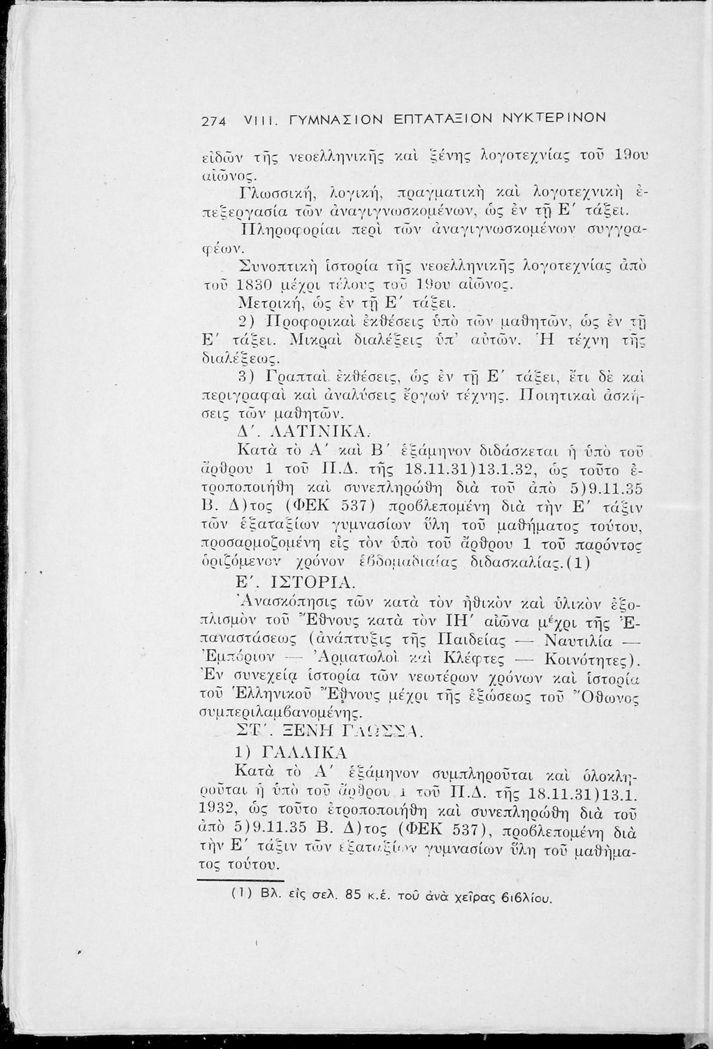 Έκδοση του Υπουργείο Παιδείας που περιλαμβάνει τα ωρολόγια αναλυτικά προγράμματα των μαθημάτων που διδάσκονται στα Εξατάξια Γυμνάσια, Πρακτικά Λύκεια, Ανώτερα Παρθεναγωγεία και τα Τριτάξια Αστικά Σχολεία.