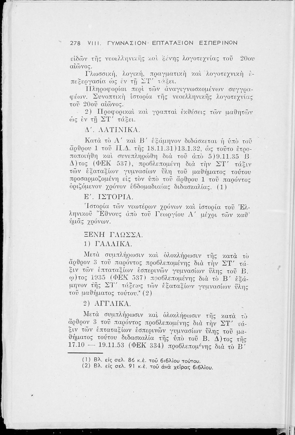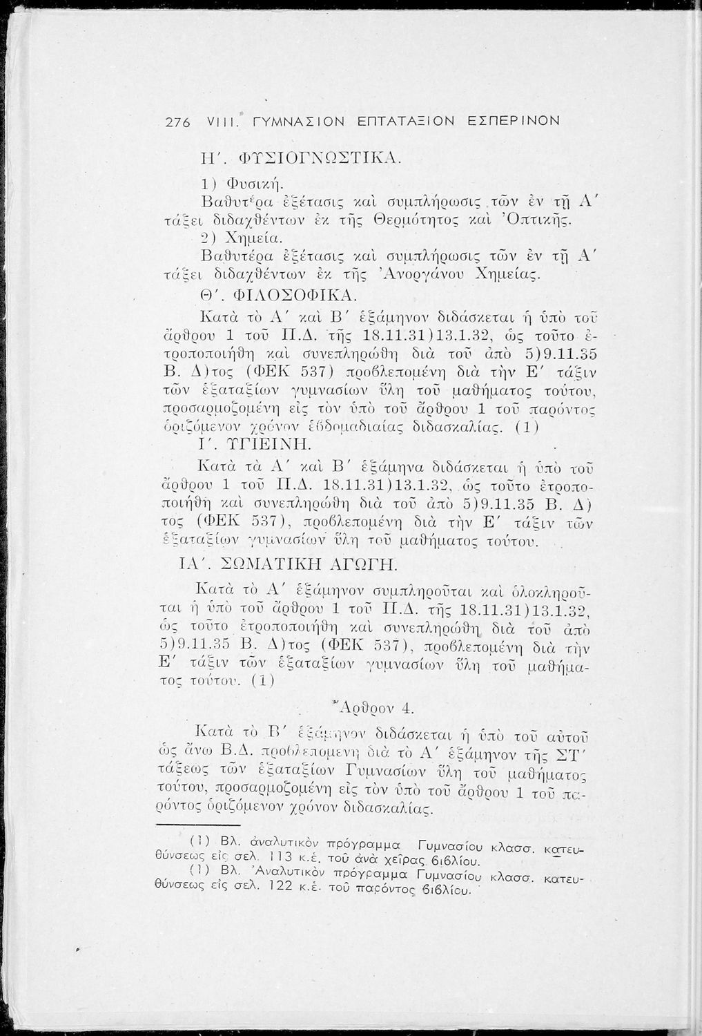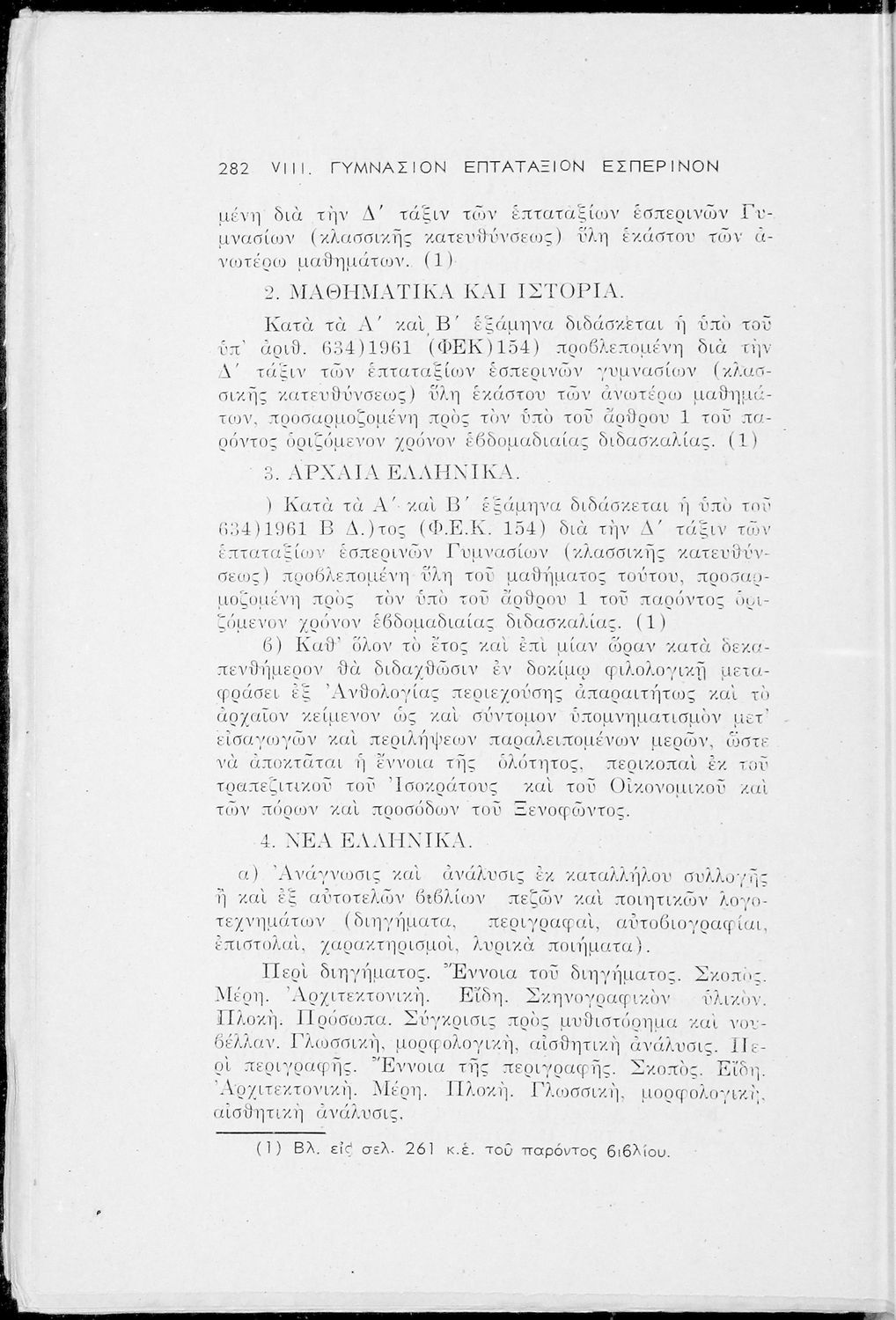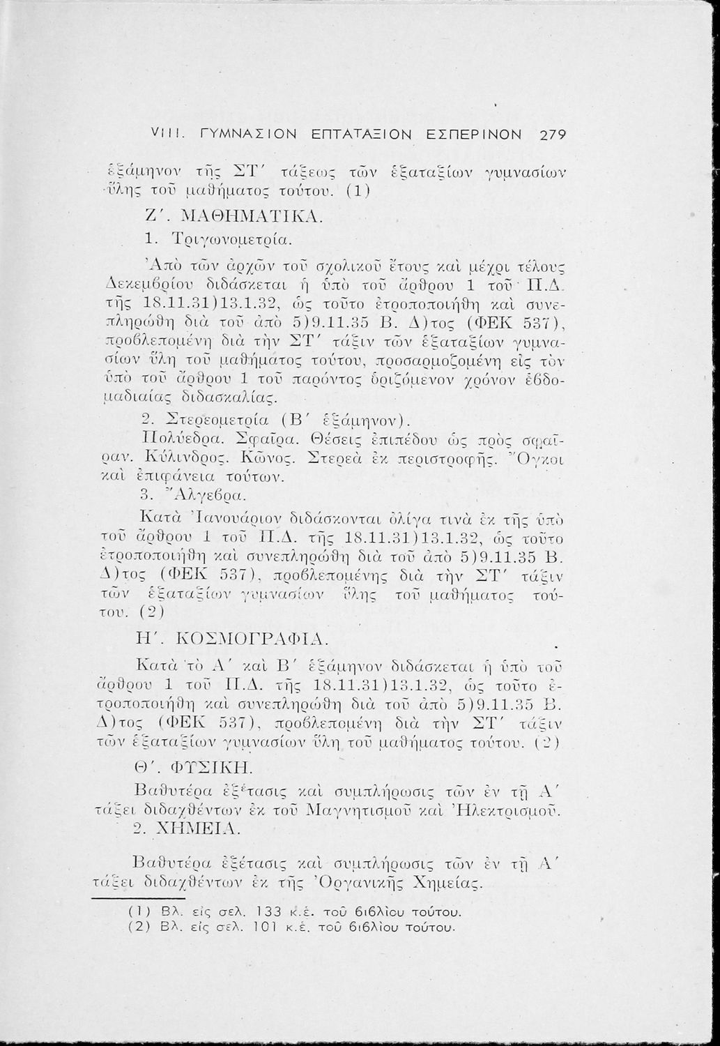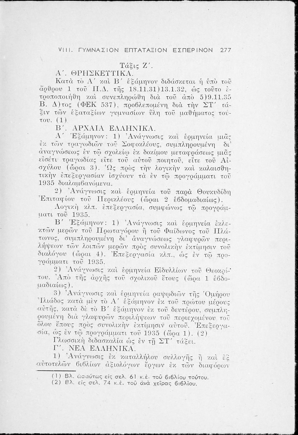 Έκδοση του Υπουργείο Παιδείας που περιλαμβάνει τα ωρολόγια αναλυτικά προγράμματα των μαθημάτων που διδάσκονται στα Εξατάξια Γυμνάσια, Πρακτικά Λύκεια, Ανώτερα Παρθεναγωγεία και τα Τριτάξια Αστικά Σχολεία.
