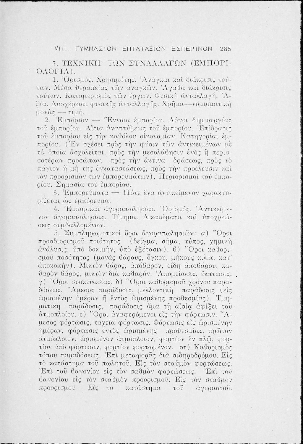 Έκδοση του Υπουργείου Παιδείας και Θρησκευμάτων που περιλαμβάνει τα ωρολόγια και αναλυτικά προγράμματα των μαθημάτων που διδάσκονται στις Εμπορικές Σχολές.
