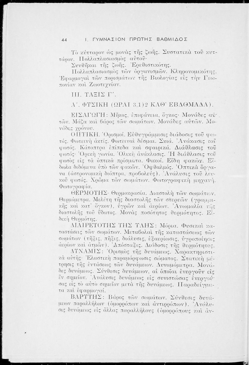 Έκδοση του Υπουργείο Παιδείας που περιλαμβάνει τα ωρολόγια αναλυτικά προγράμματα των μαθημάτων που διδάσκονται στα Εξατάξια Γυμνάσια, Πρακτικά Λύκεια, Ανώτερα Παρθεναγωγεία και τα Τριτάξια Αστικά Σχολεία.