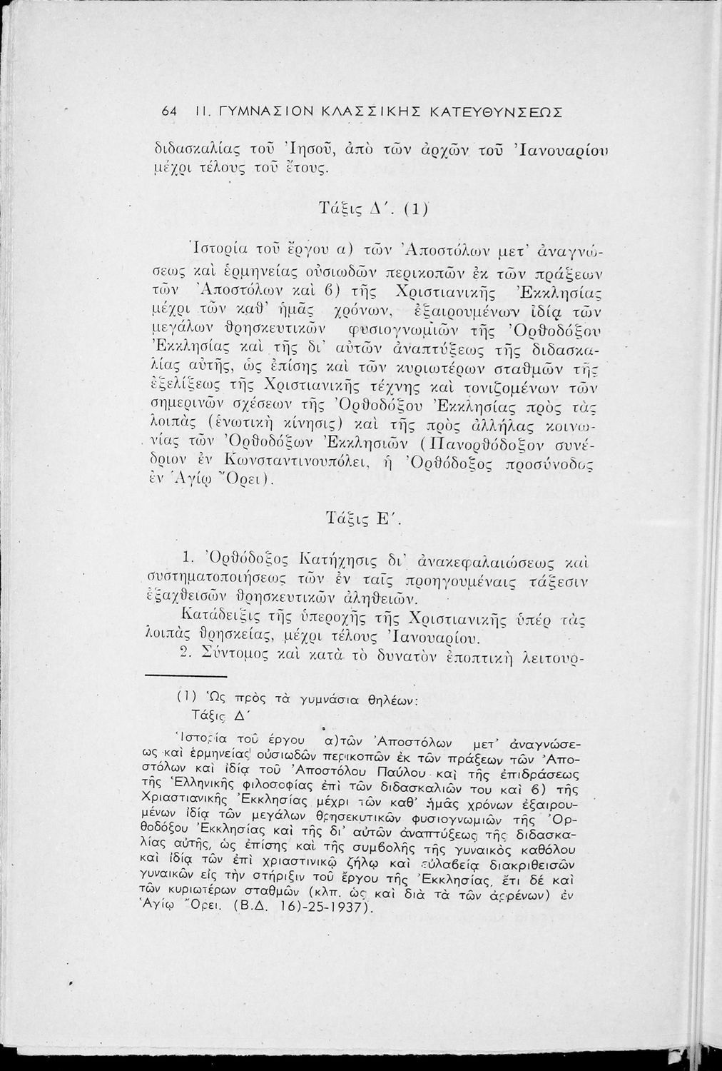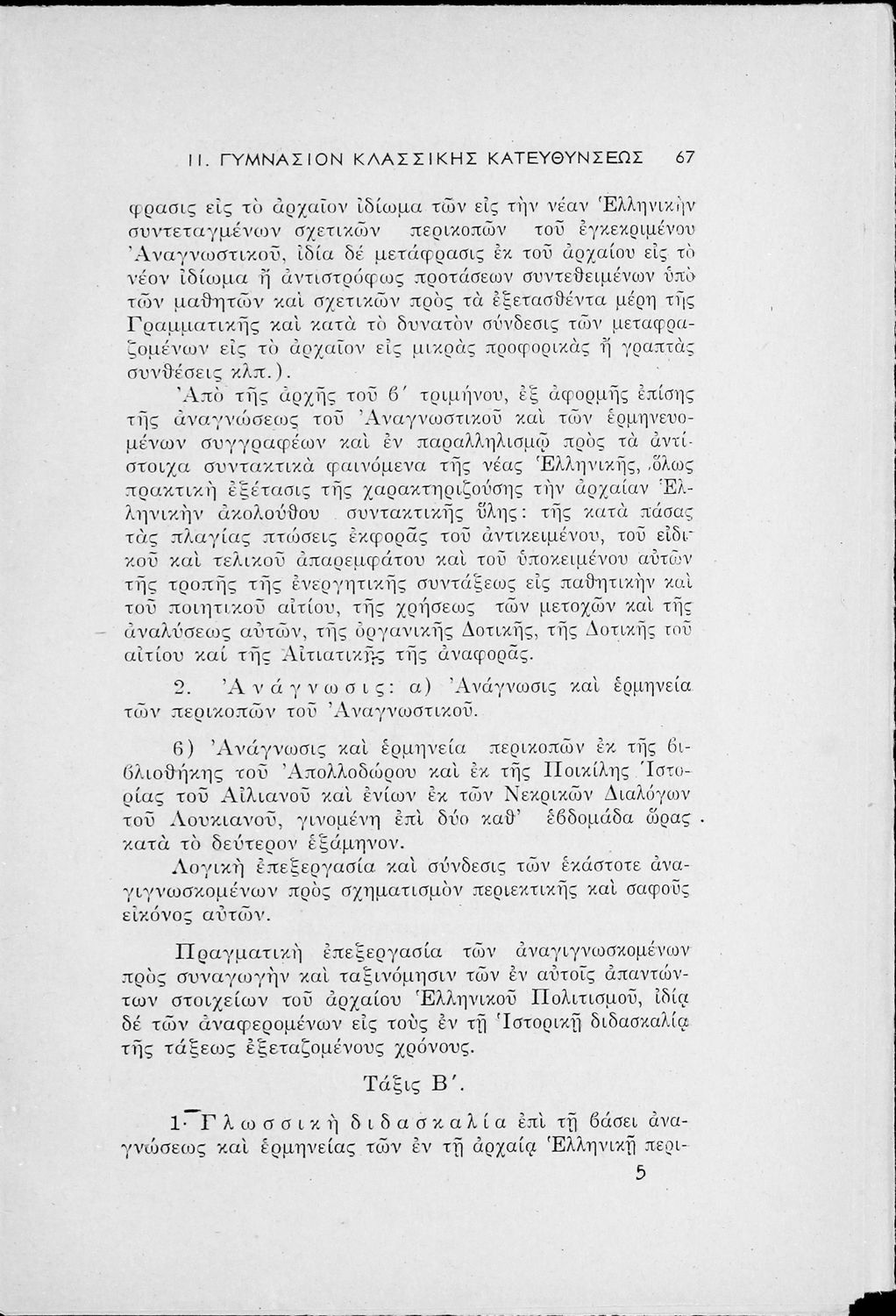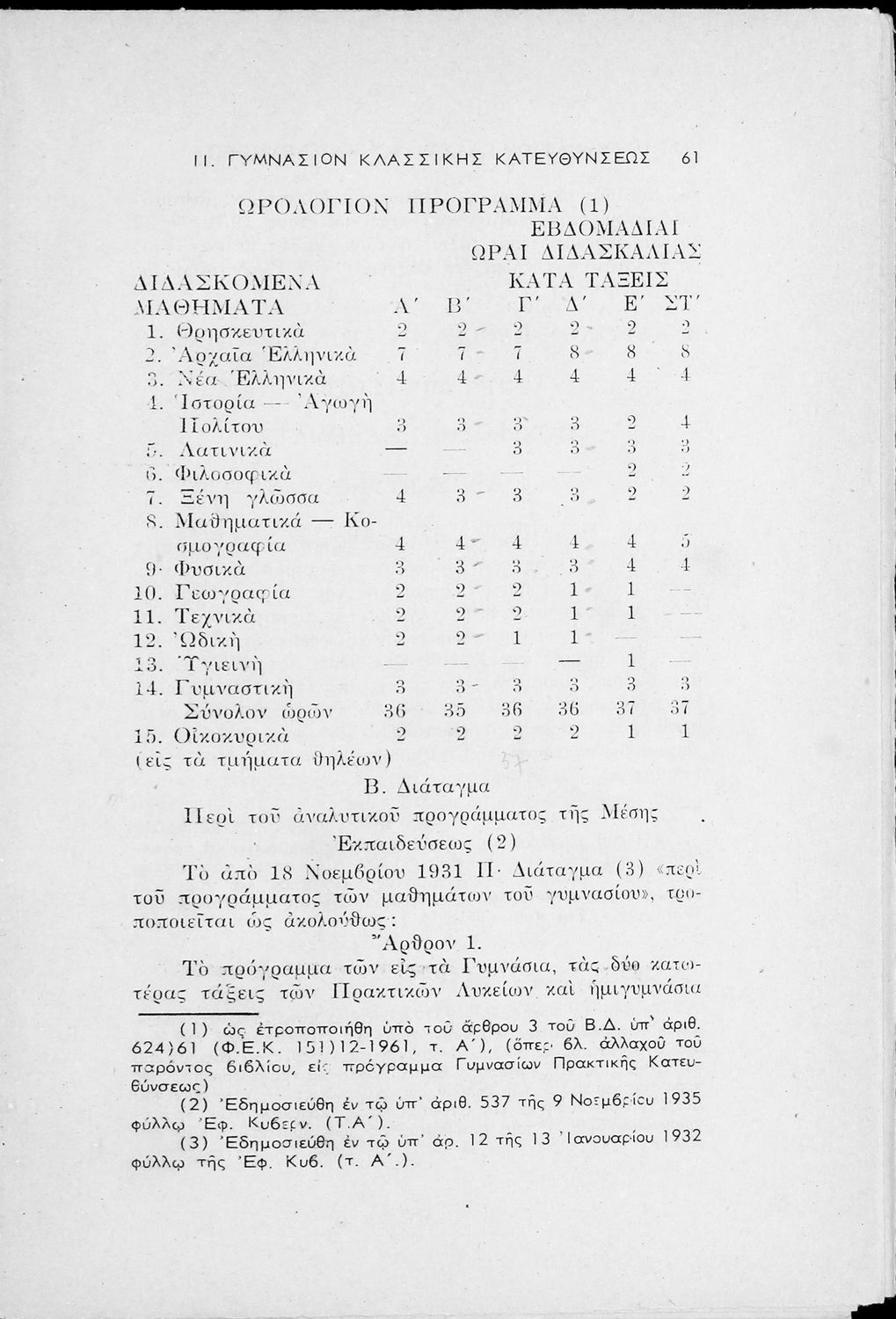 Έκδοση του Υπουργείο Παιδείας που περιλαμβάνει τα ωρολόγια αναλυτικά προγράμματα των μαθημάτων που διδάσκονται στα Εξατάξια Γυμνάσια, Πρακτικά Λύκεια, Ανώτερα Παρθεναγωγεία και τα Τριτάξια Αστικά Σχολεία.