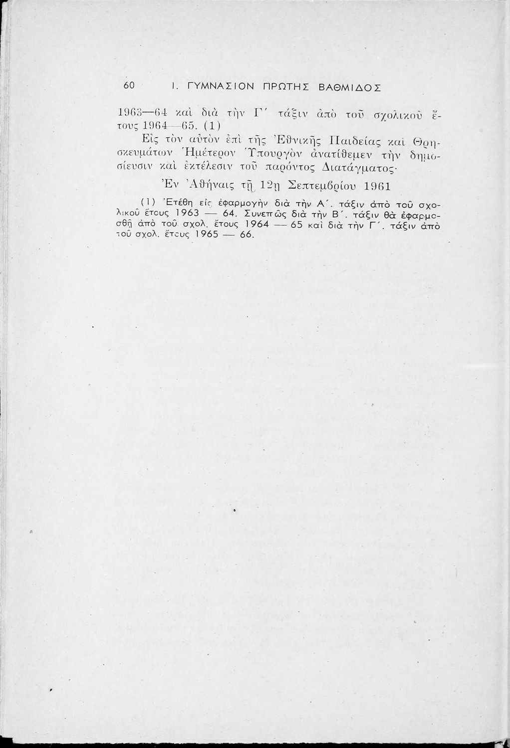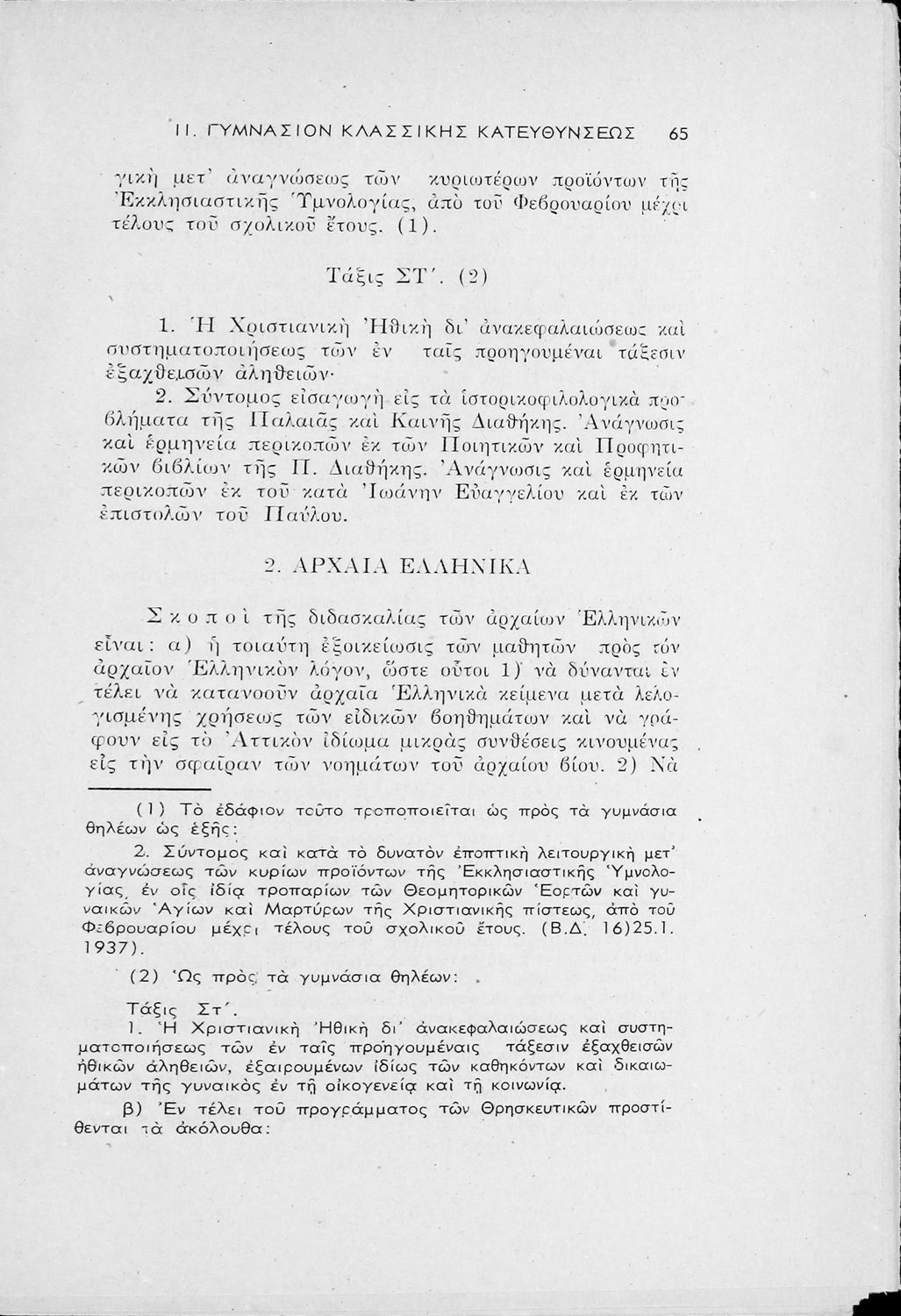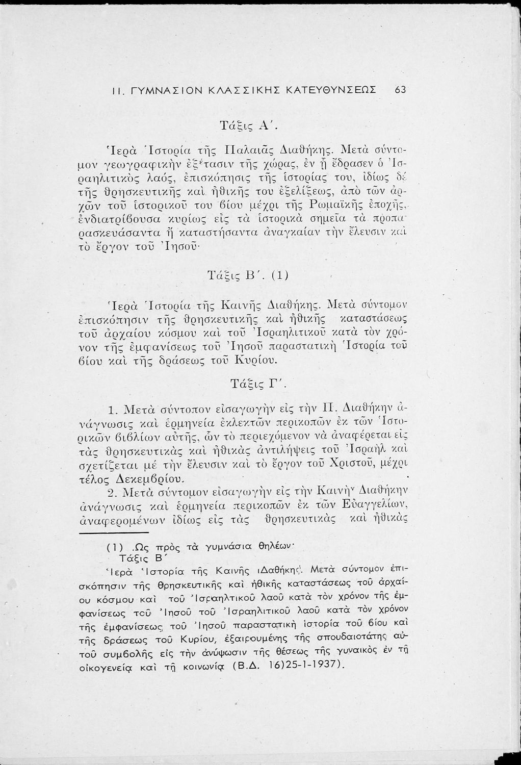 Έκδοση του Υπουργείο Παιδείας που περιλαμβάνει τα ωρολόγια αναλυτικά προγράμματα των μαθημάτων που διδάσκονται στα Εξατάξια Γυμνάσια, Πρακτικά Λύκεια, Ανώτερα Παρθεναγωγεία και τα Τριτάξια Αστικά Σχολεία.