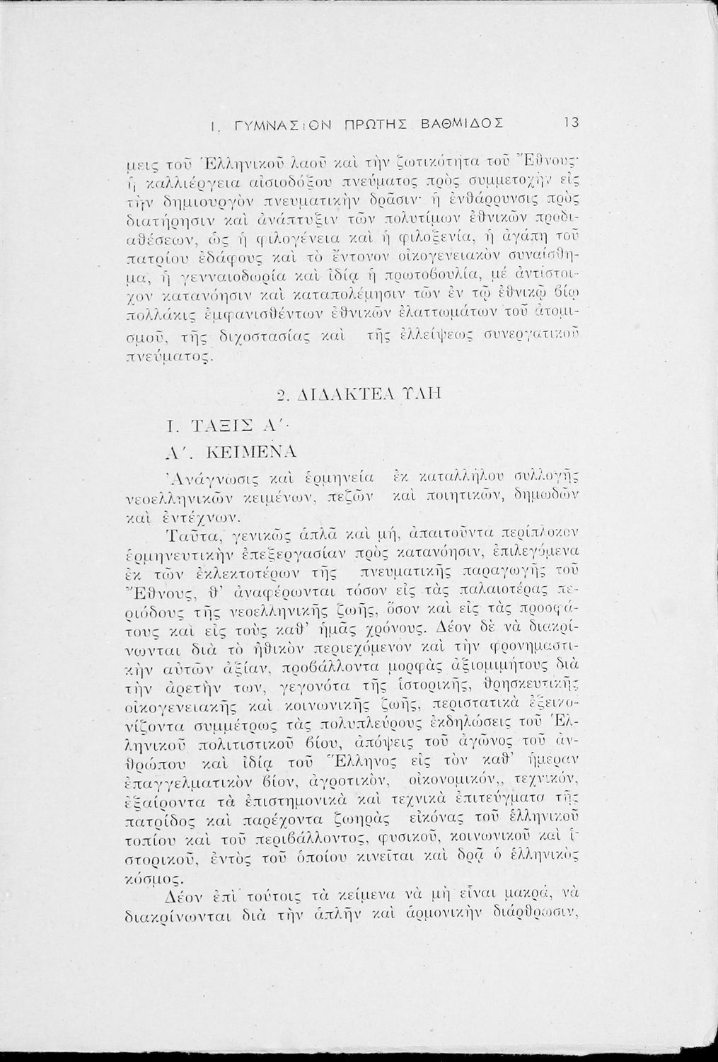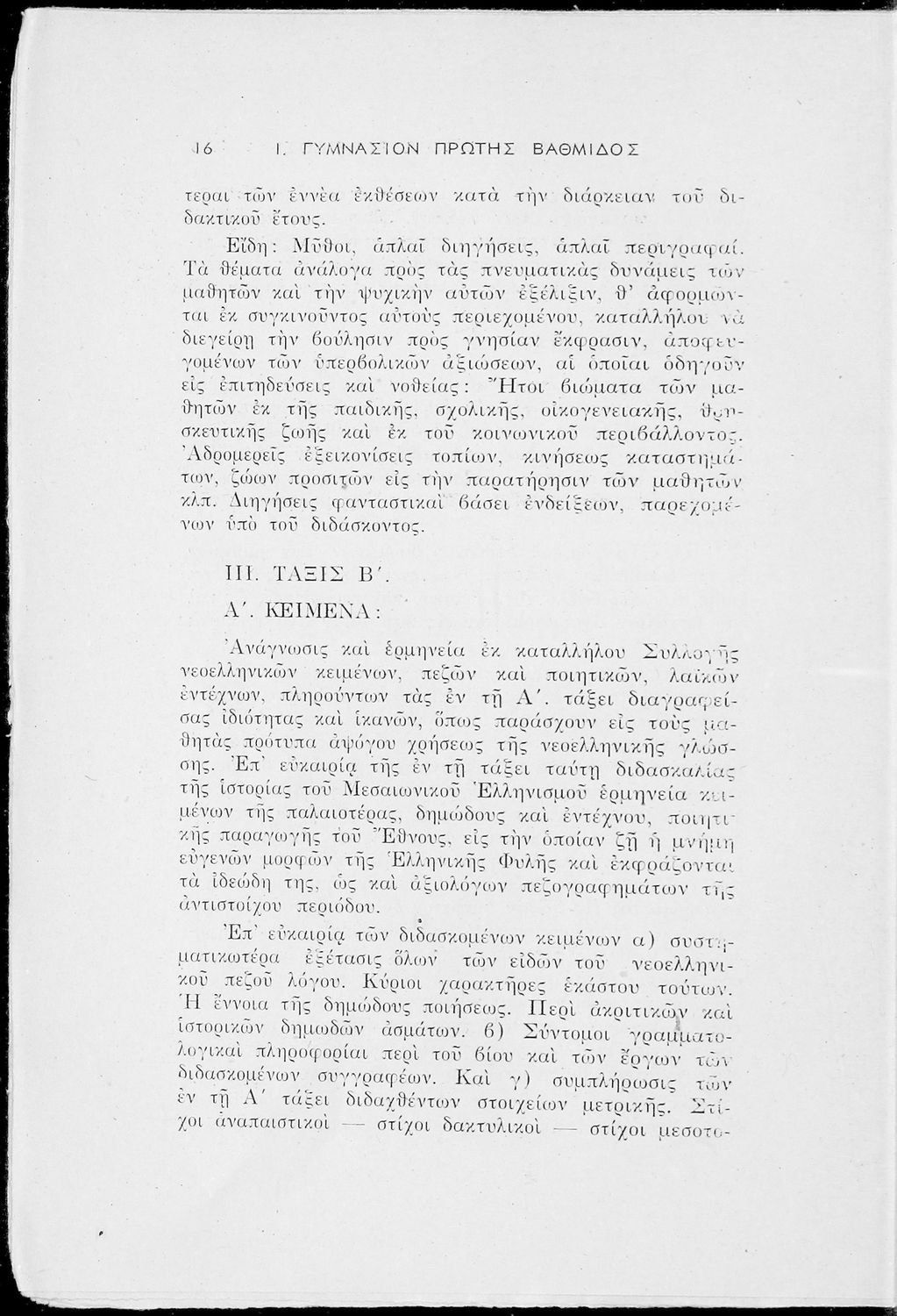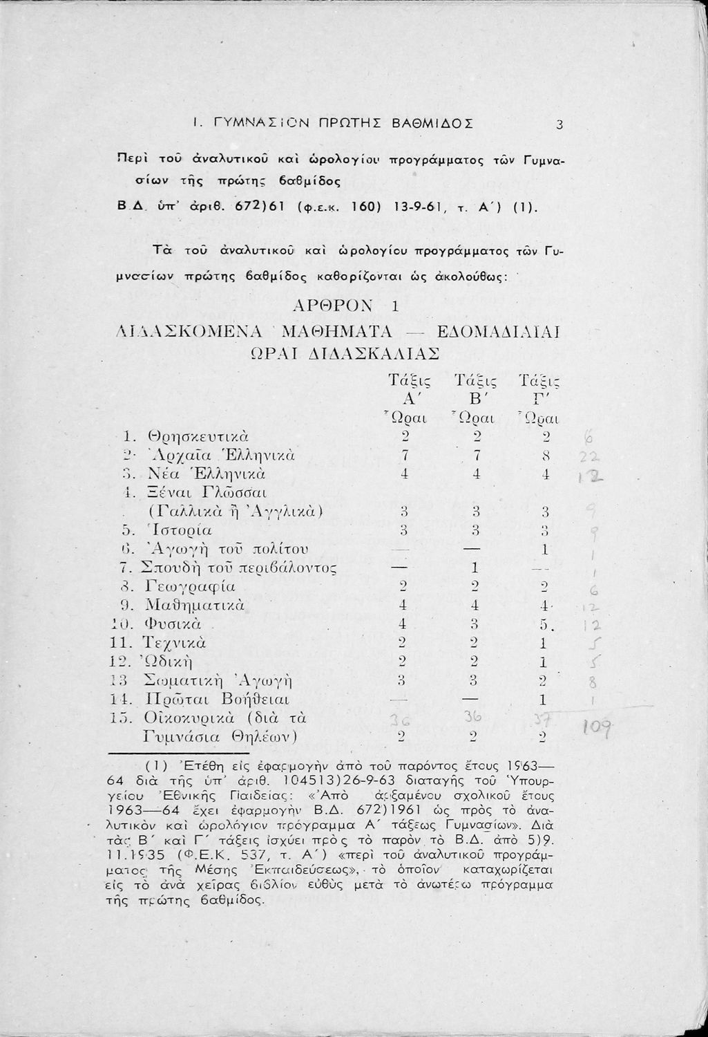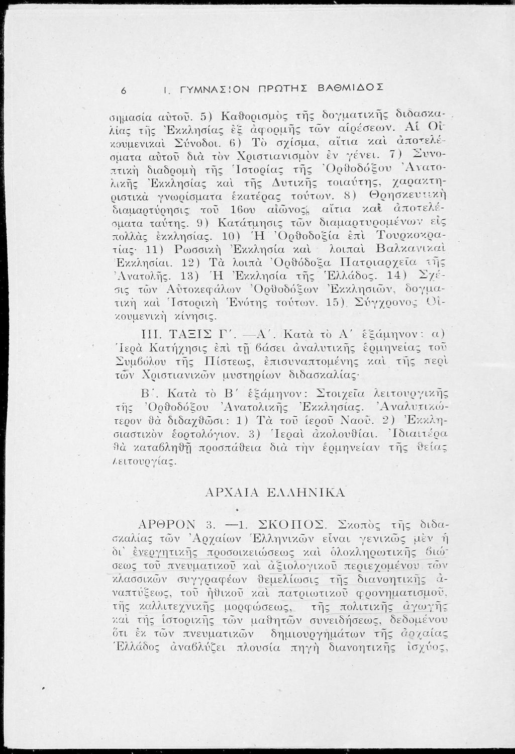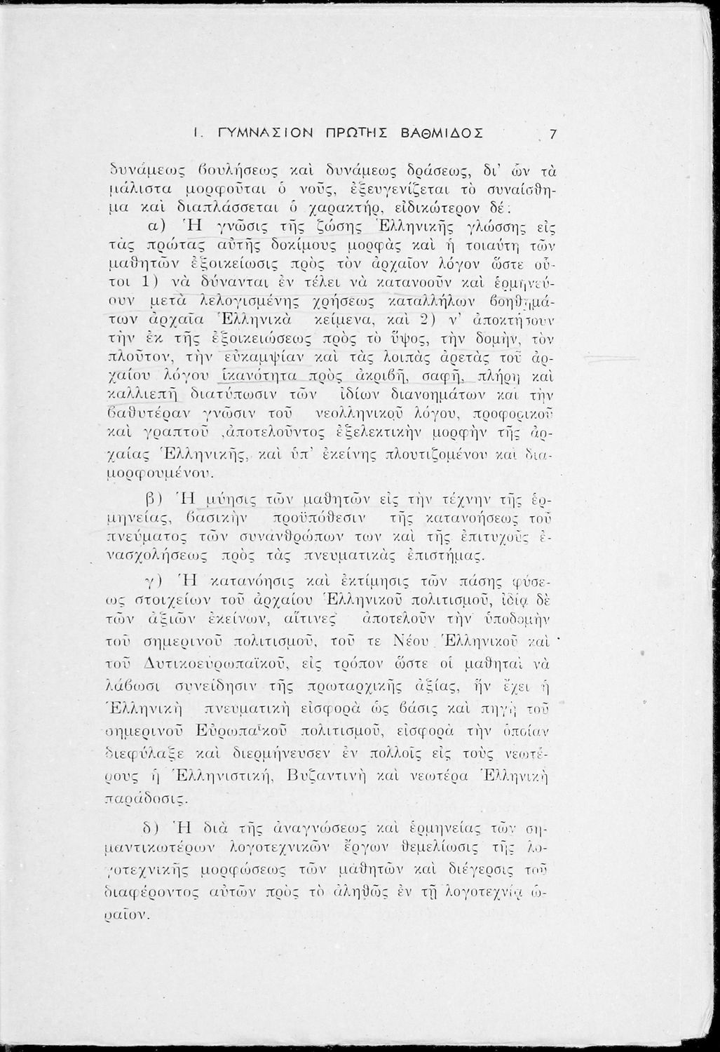 Έκδοση του Υπουργείο Παιδείας που περιλαμβάνει τα ωρολόγια αναλυτικά προγράμματα των μαθημάτων που διδάσκονται στα Εξατάξια Γυμνάσια, Πρακτικά Λύκεια, Ανώτερα Παρθεναγωγεία και τα Τριτάξια Αστικά Σχολεία.