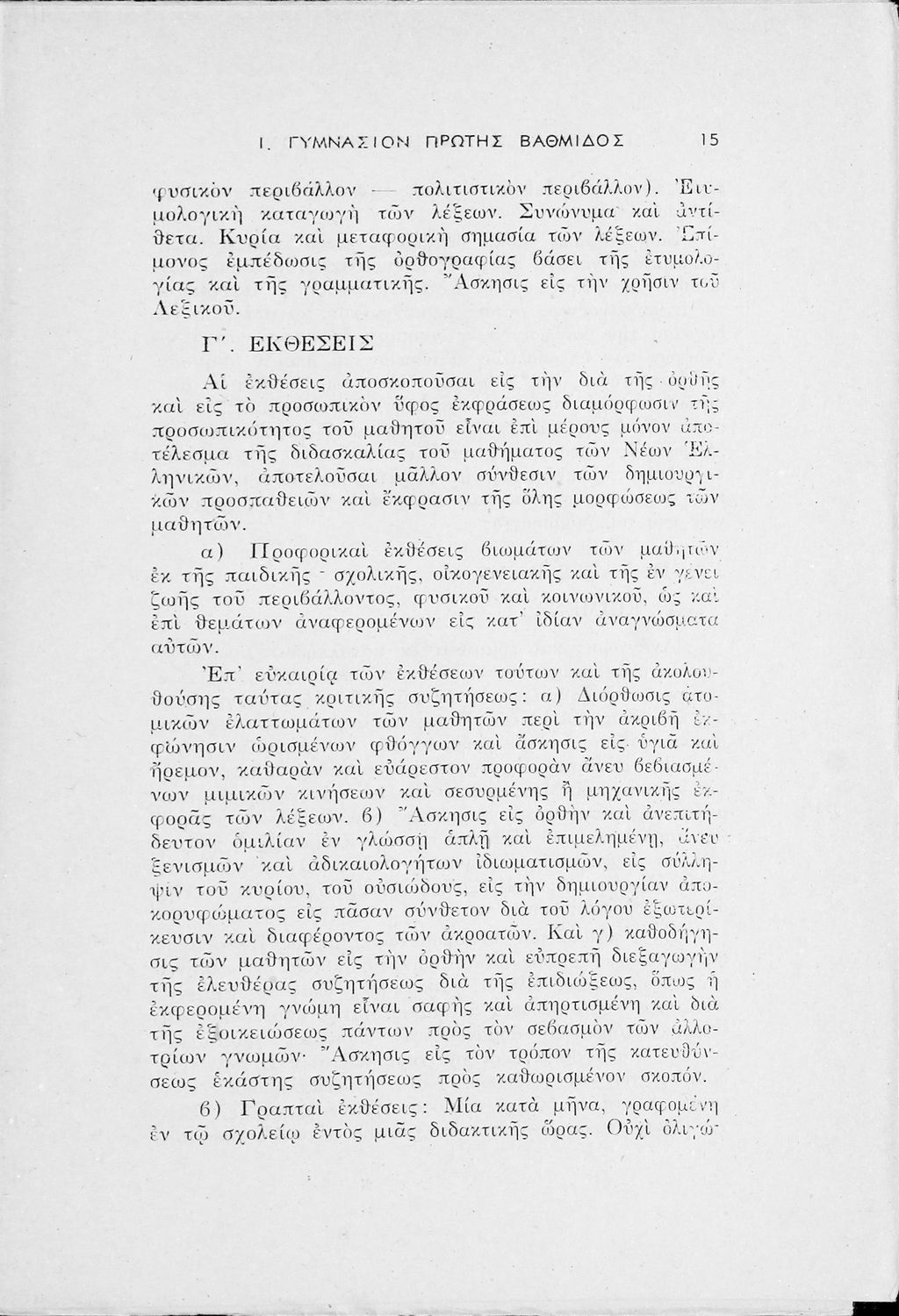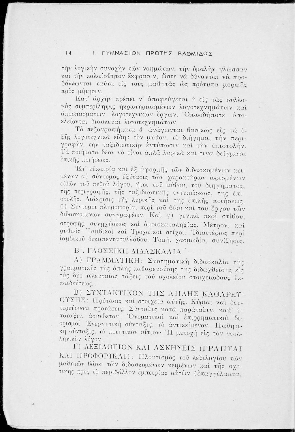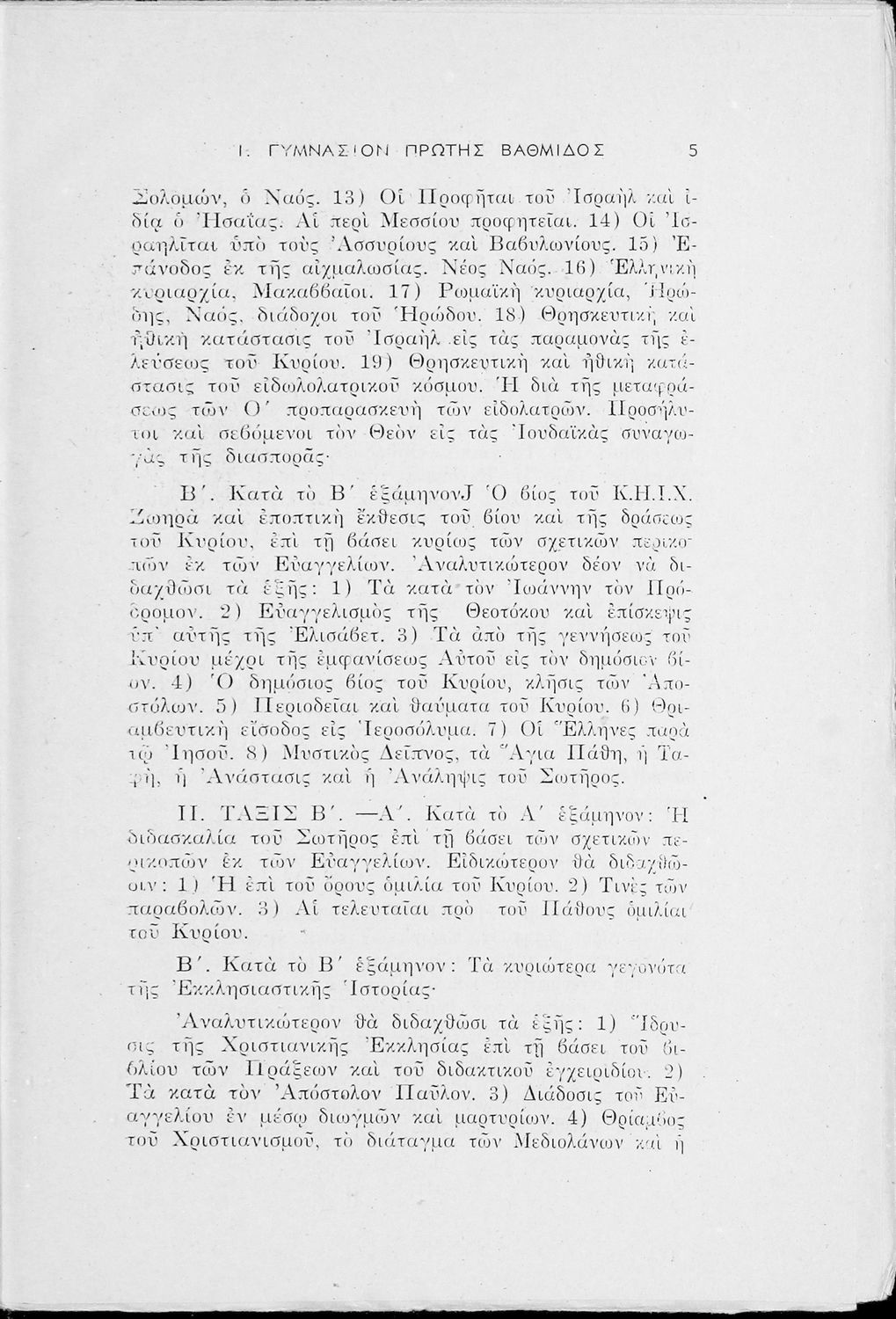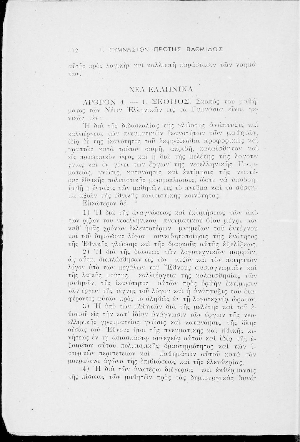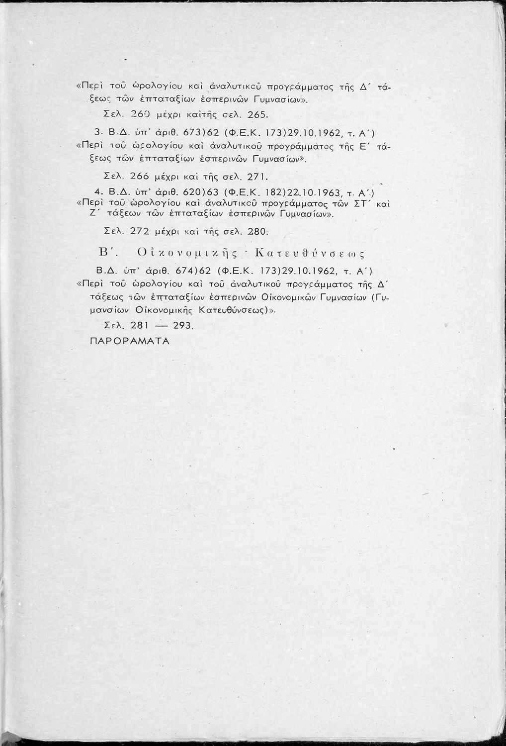 Έκδοση του Υπουργείο Παιδείας που περιλαμβάνει τα ωρολόγια αναλυτικά προγράμματα των μαθημάτων που διδάσκονται στα Εξατάξια Γυμνάσια, Πρακτικά Λύκεια, Ανώτερα Παρθεναγωγεία και τα Τριτάξια Αστικά Σχολεία.