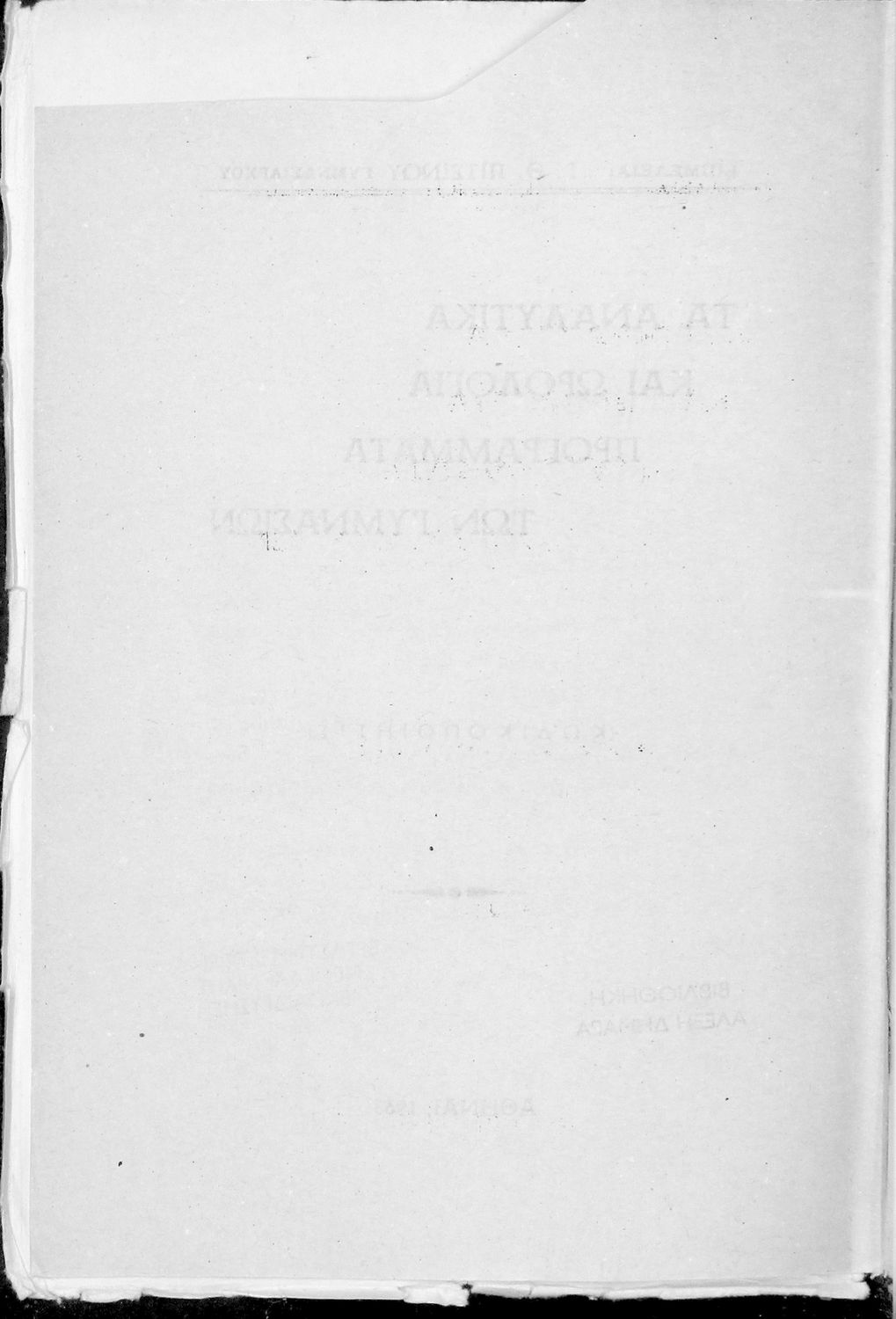 Αναλυτικό πρόγραμμα το οποίο είναι ανατύπωση σχετικών διαταγμάτων για εξατάξια γυμνάσια, πρακτικά Λύκεια, Ανώτερα Παρθεναγωγεία και τριτάξιες Αστικές Σχολές. Έχει την υπογραφή του τότε Υφυπουργού Ν. Σπέντζα.
