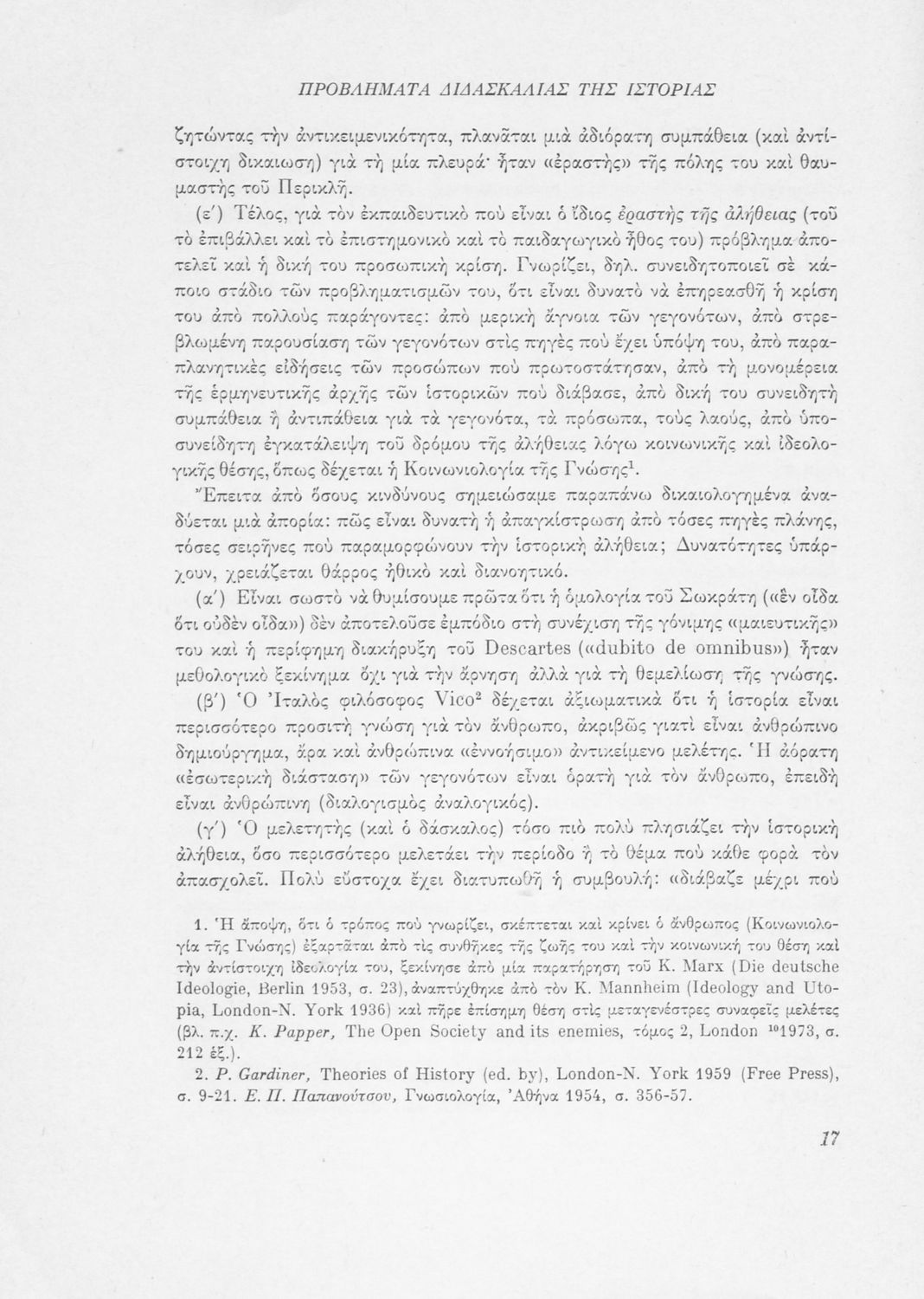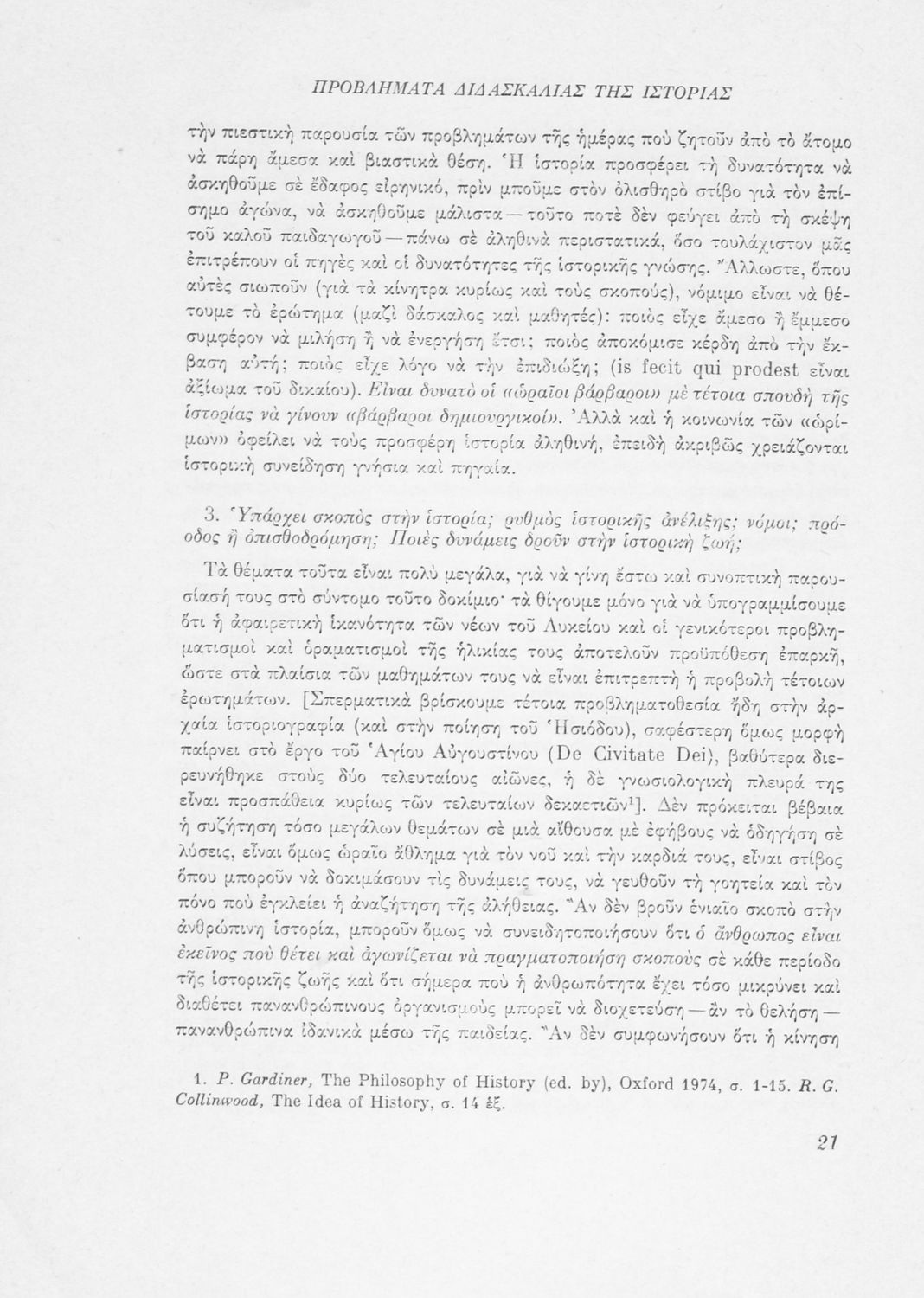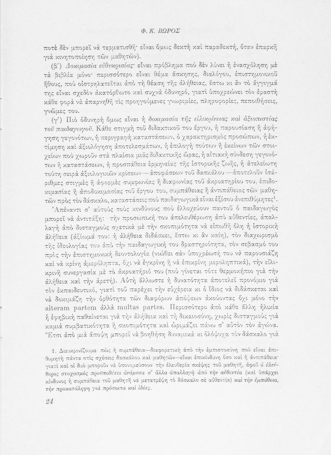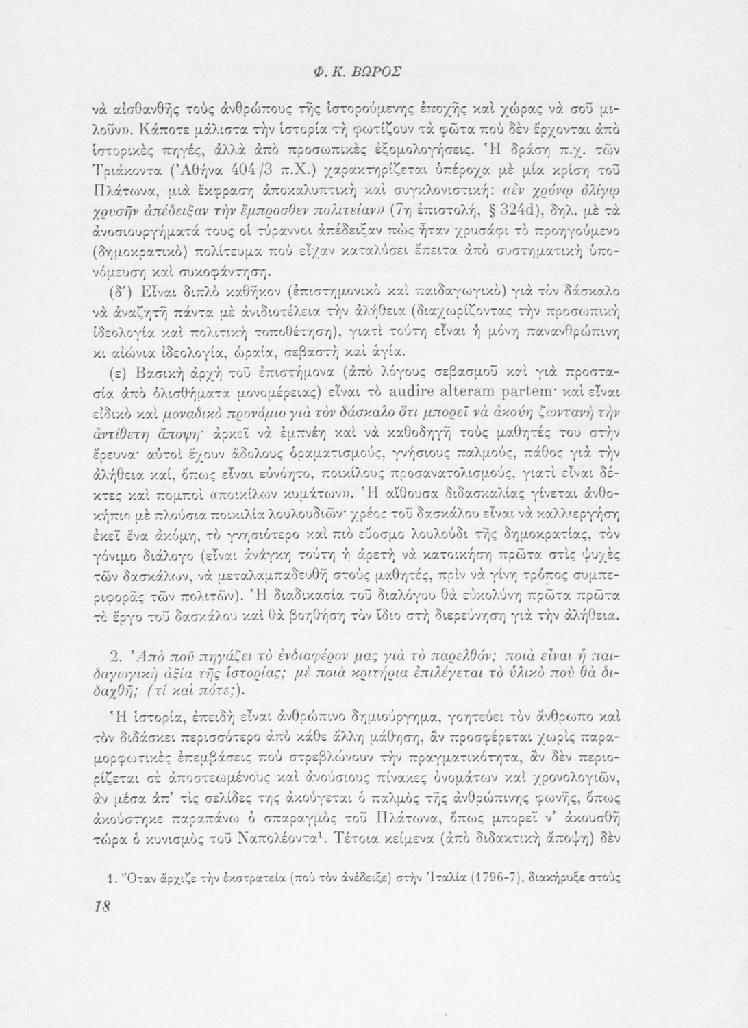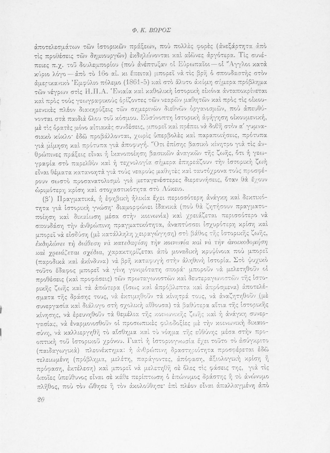 Ανάτυπο, από το περιοδικό Φιλόλογος, το οποίο μέσω ερωτήσεων εξετάζει διάφορα προβλήματα στη διδασκαλία της Ιστορίας. Στην 1η σελίδα φέρει ιδιόχειρη αφιέρωση του συγγραφέα.