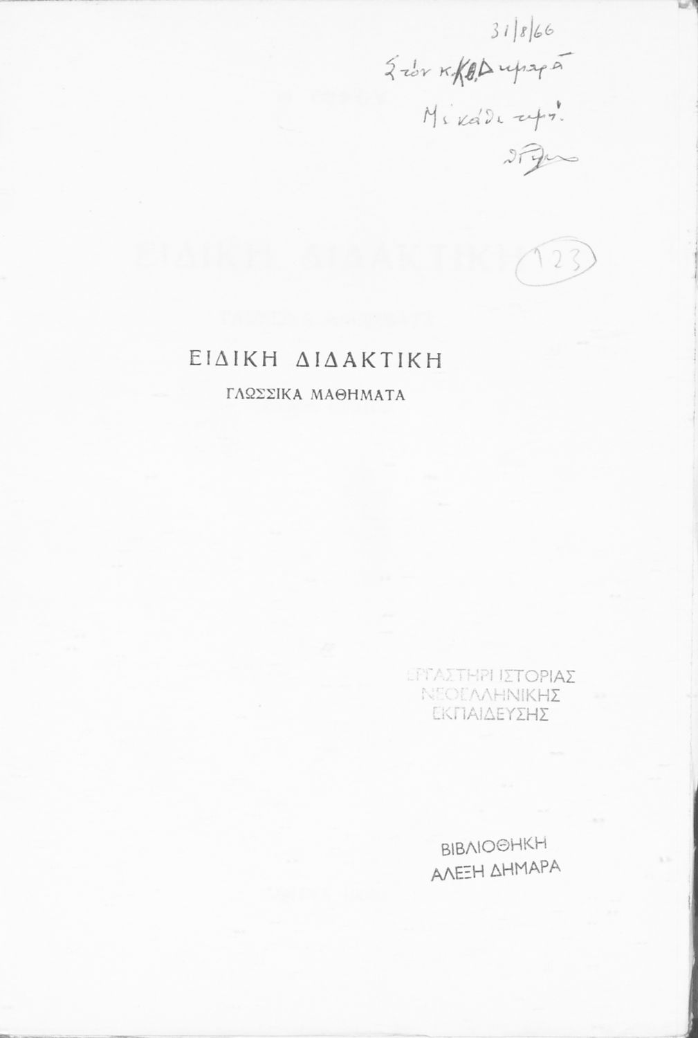 Εντοπισμός πρωτοτύπου: Εργαστήρι Ιστορίας Ν.Ε. Εκπαίδευσης, Πανεπιστήμιο Ιωαννίνων Κωδικός βιβλιοθήκης: 123 |