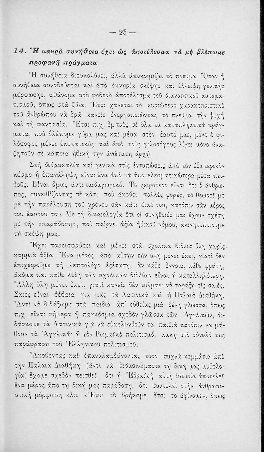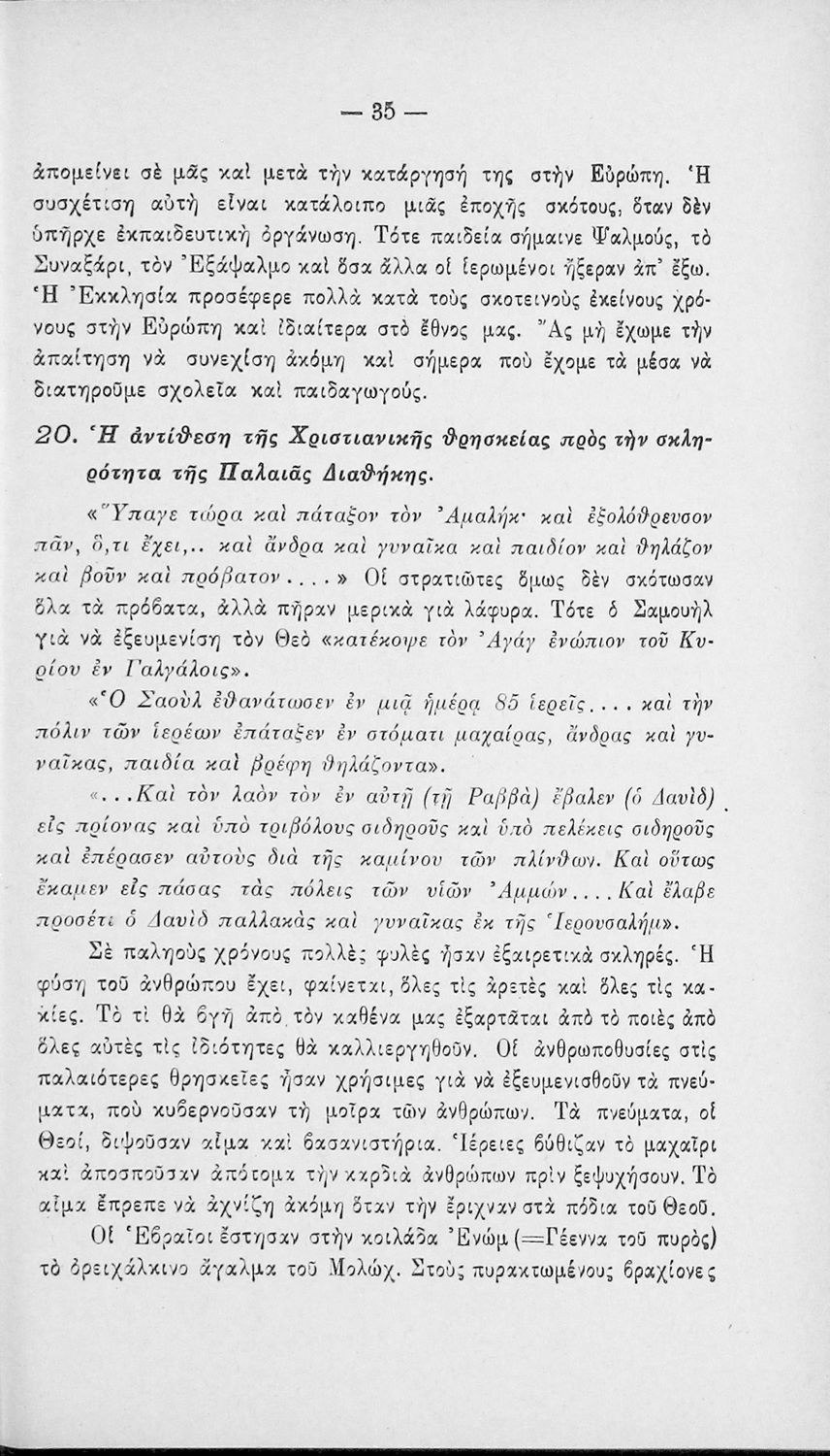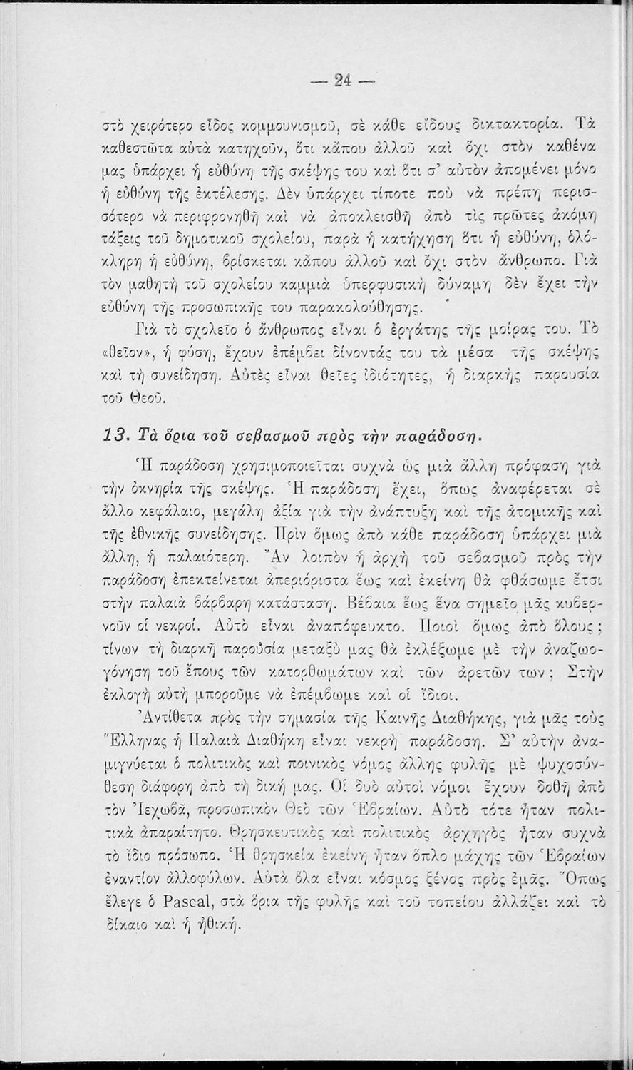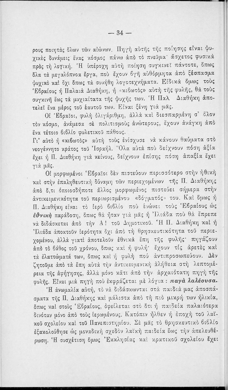 Μάθημα: Θρησκευτικά Γλώσσα: Δημοτική με στοιχεία καθαρεύουσας Παρουσίαση περιεχομένου: Παιδαγωγικό βοήθημα που εστιάζει στο μάθημα των Θρησκευτικών και αποσκοπούσε να ενημερώσει τους εκπαιδευτικούς της Πρωτοβάθμιας και Δευτεροβάθμιας Εκπαίδευσης σχετικά με το διαφορισμό την Παιδεία. |