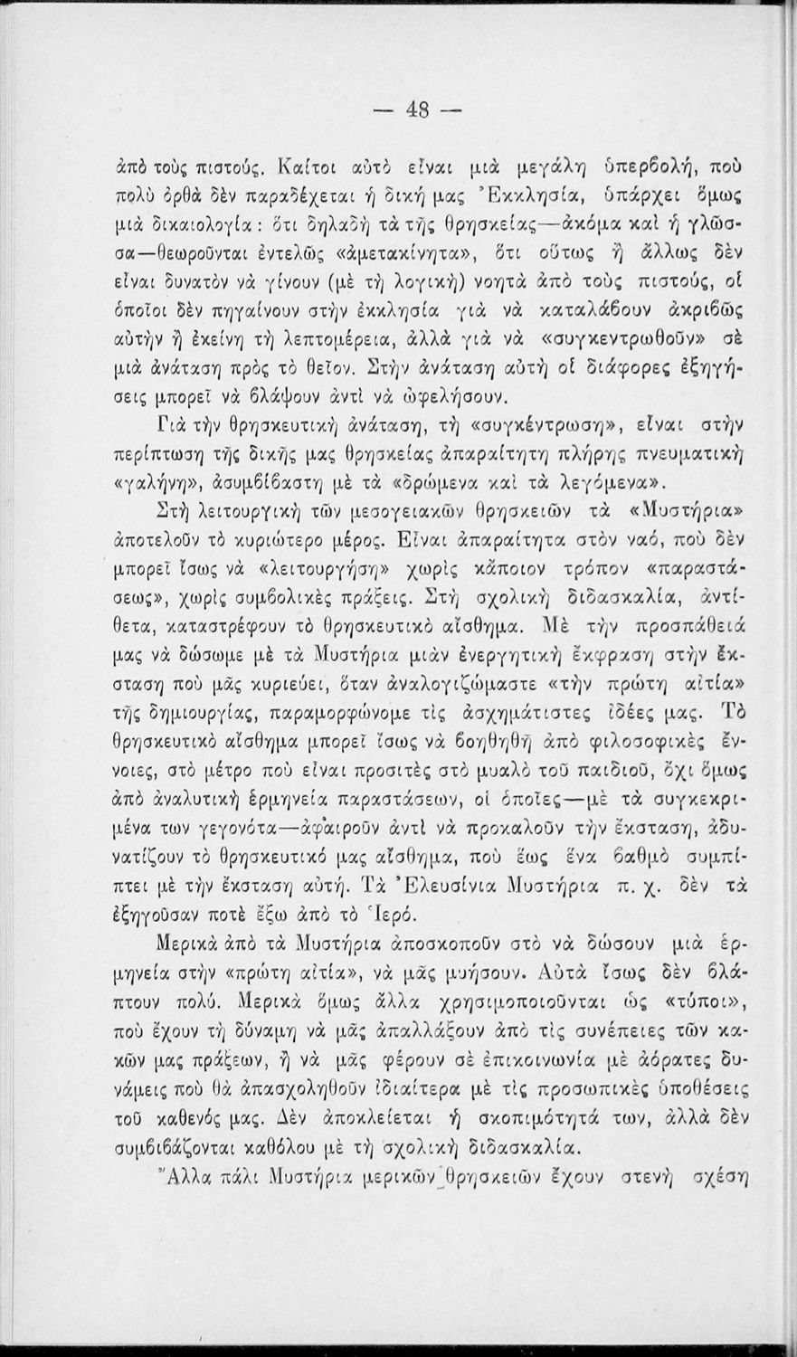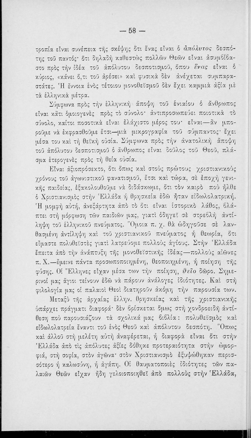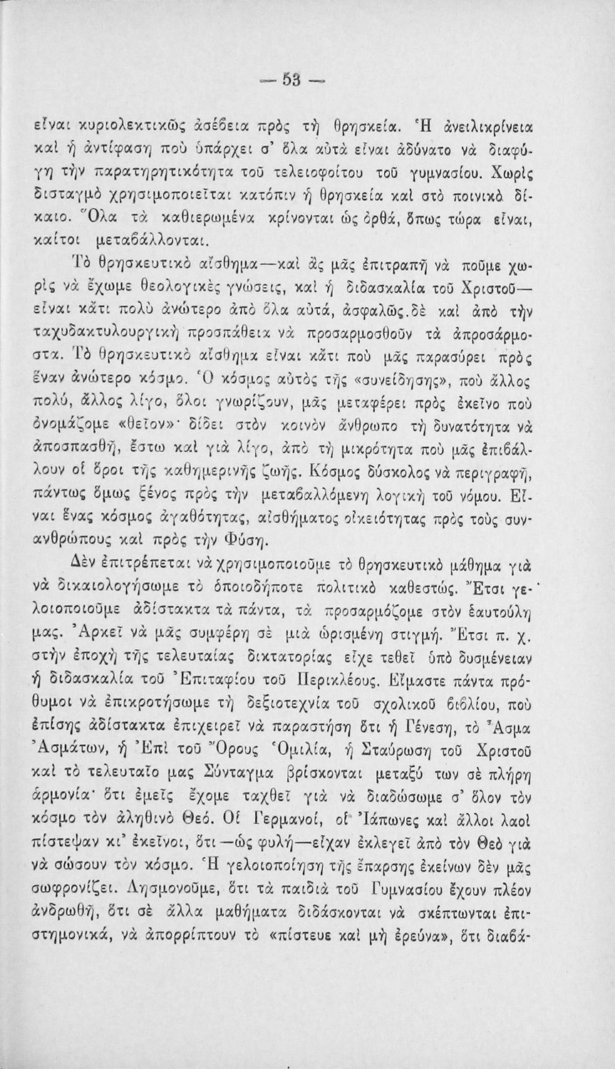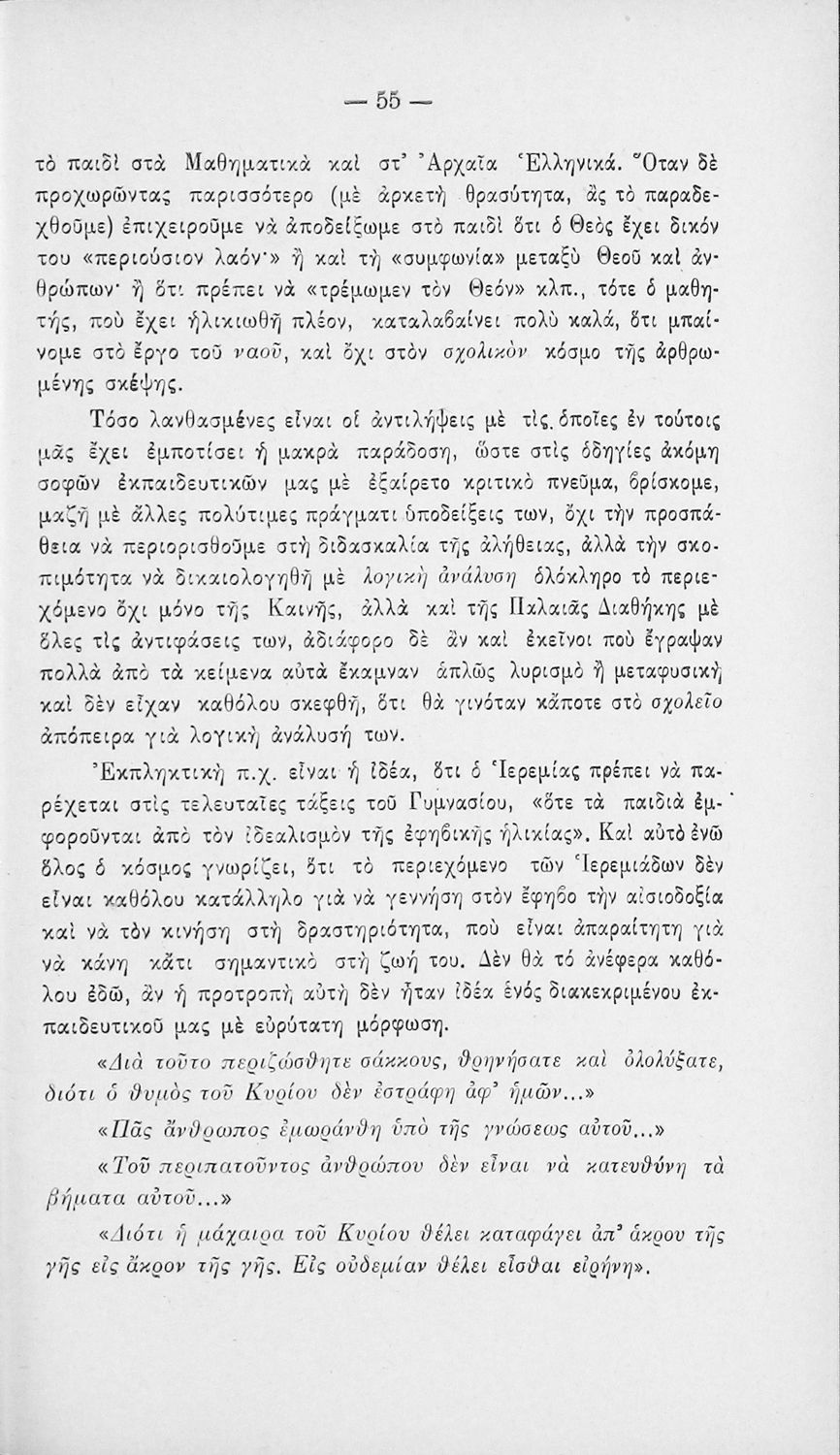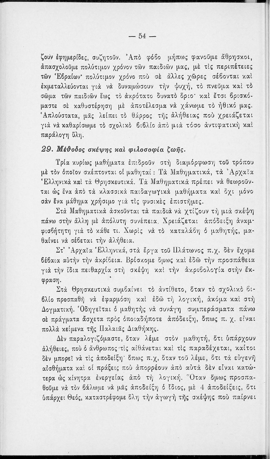 Μάθημα: Θρησκευτικά Γλώσσα: Δημοτική με στοιχεία καθαρεύουσας Παρουσίαση περιεχομένου: Παιδαγωγικό βοήθημα που εστιάζει στο μάθημα των Θρησκευτικών και αποσκοπούσε να ενημερώσει τους εκπαιδευτικούς της Πρωτοβάθμιας και Δευτεροβάθμιας Εκπαίδευσης σχετικά με το διαφορισμό την Παιδεία. |