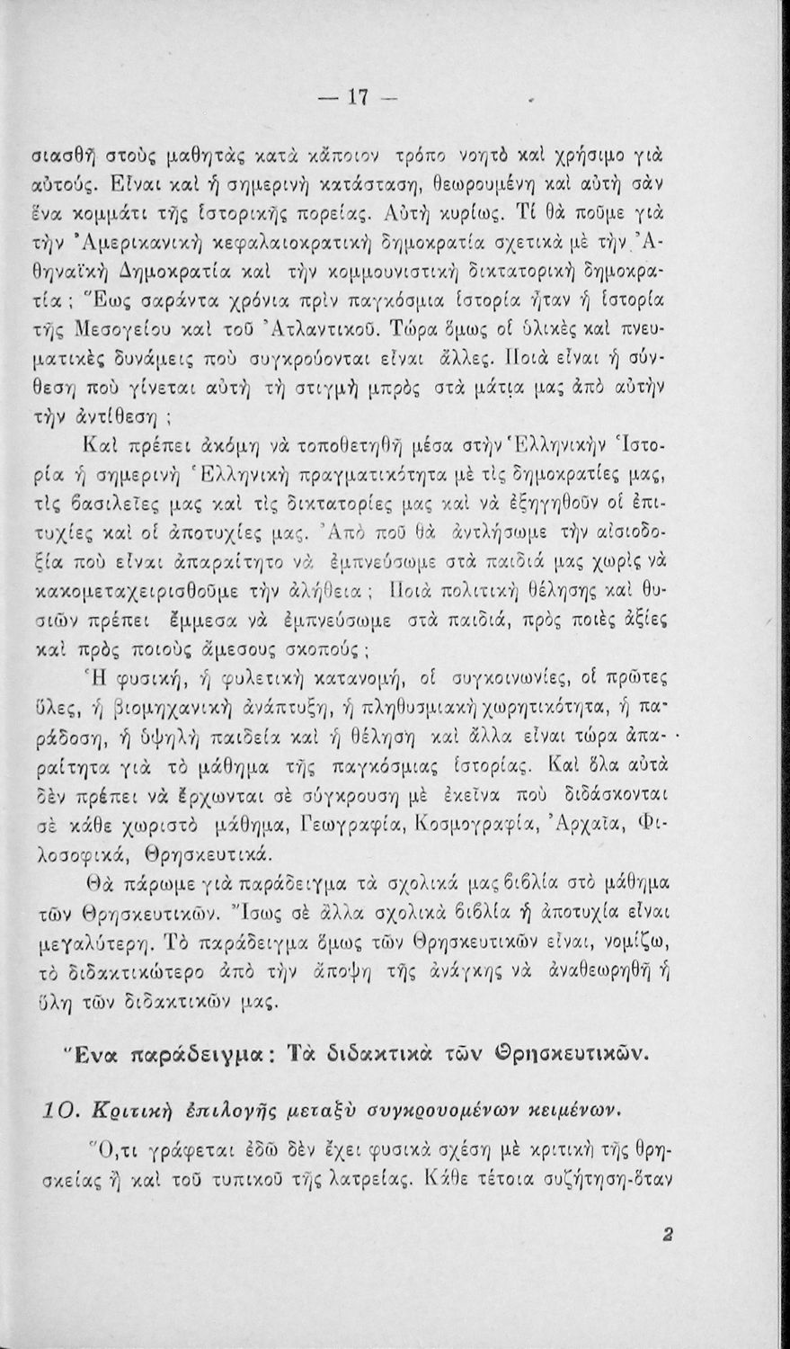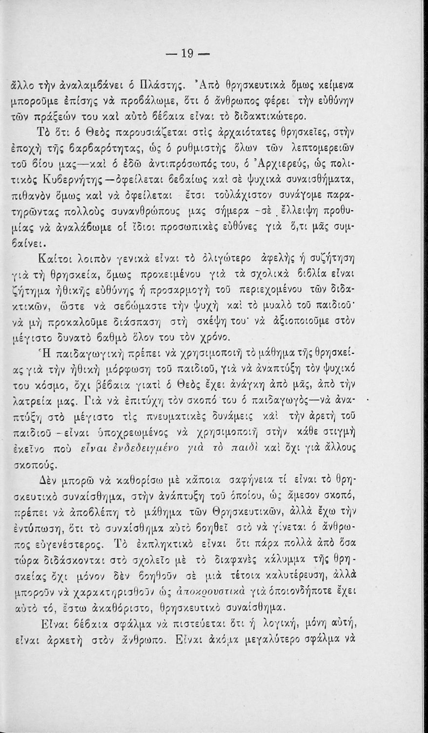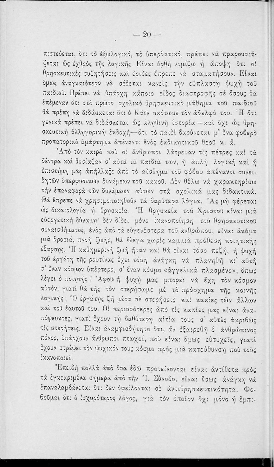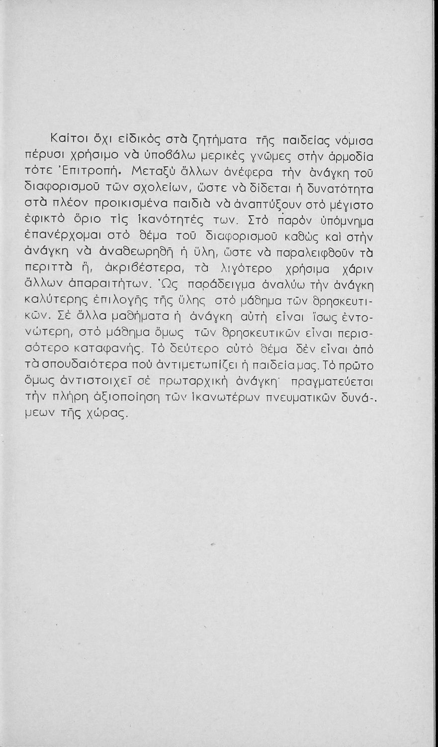 Μάθημα: Θρησκευτικά Γλώσσα: Δημοτική με στοιχεία καθαρεύουσας Παρουσίαση περιεχομένου: Παιδαγωγικό βοήθημα που εστιάζει στο μάθημα των Θρησκευτικών και αποσκοπούσε να ενημερώσει τους εκπαιδευτικούς της Πρωτοβάθμιας και Δευτεροβάθμιας Εκπαίδευσης σχετικά με το διαφορισμό την Παιδεία. |