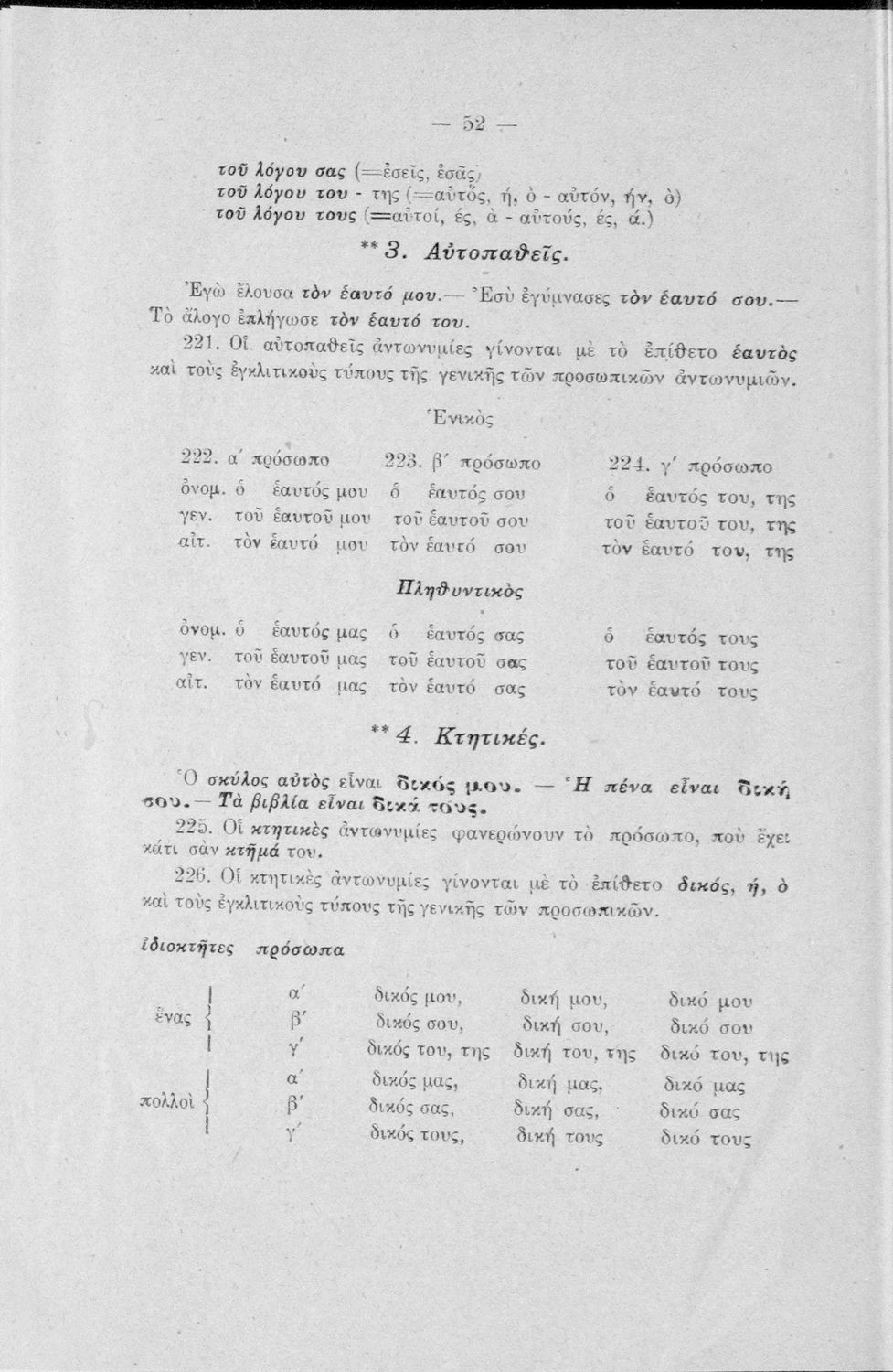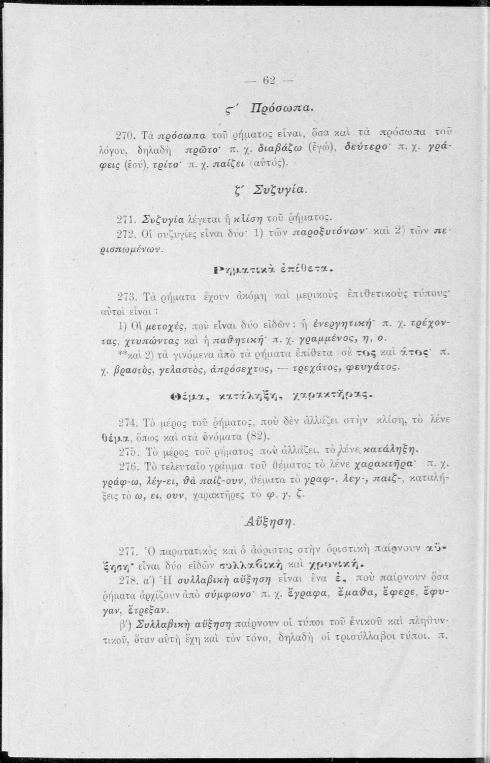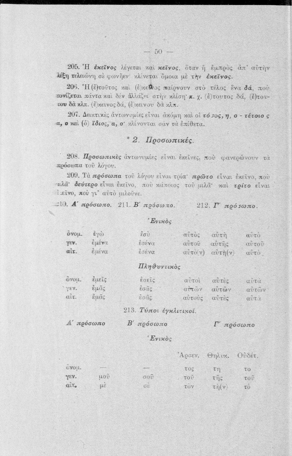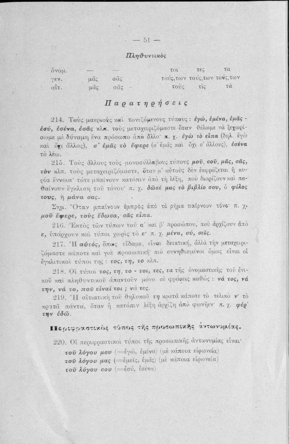 Σχολικό εγχειρίδιο Αρχαίων Ελληνικών Γυμνασίου που περιέχει τους κανόνες γραμματικής και είναι χωρισμένο σε φθογγολογικό, τυπολογικό και ετυμολογικό μέρος. Περιέχει και κατάλογο ανωμάλων ρημάτων.