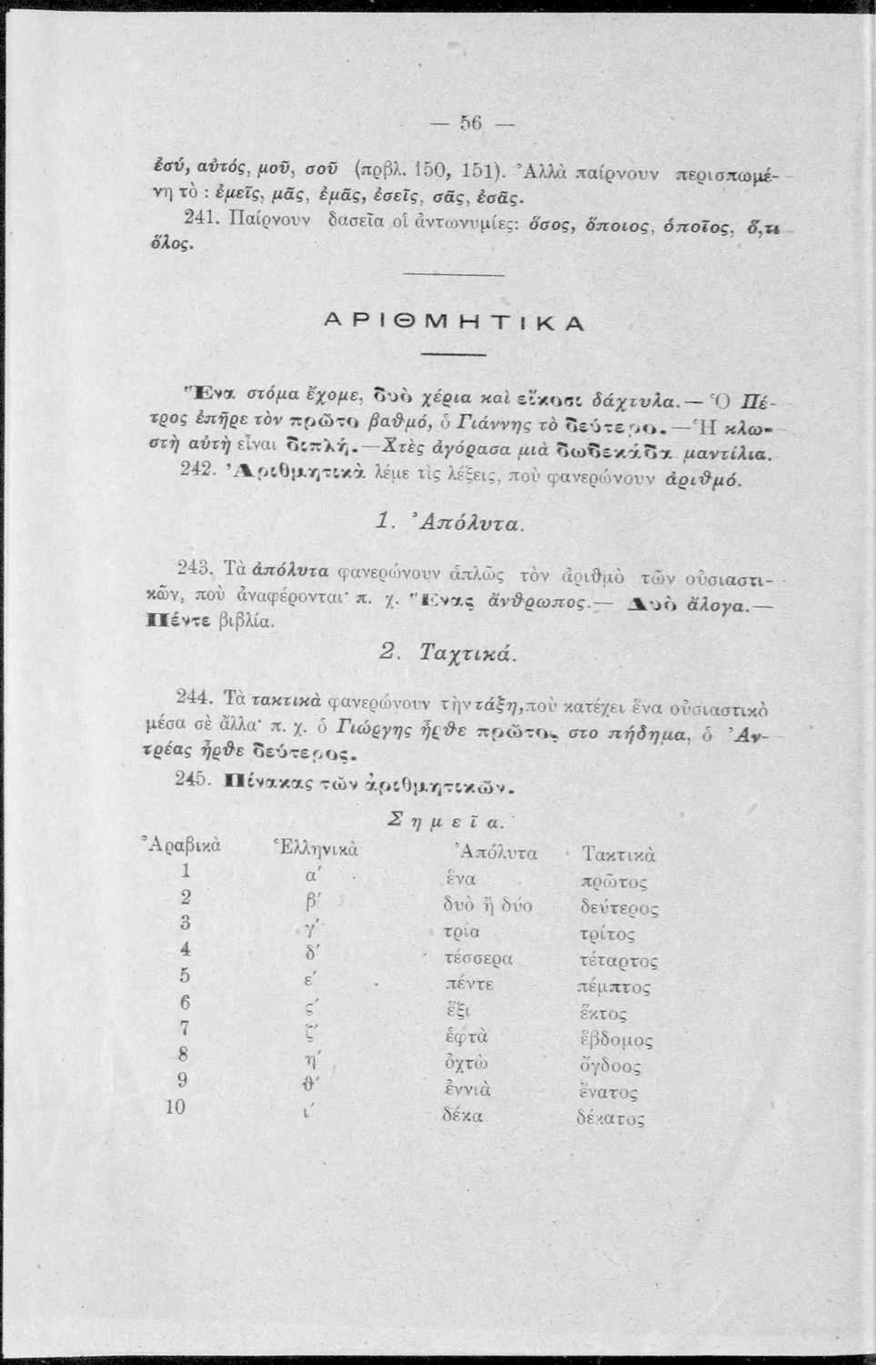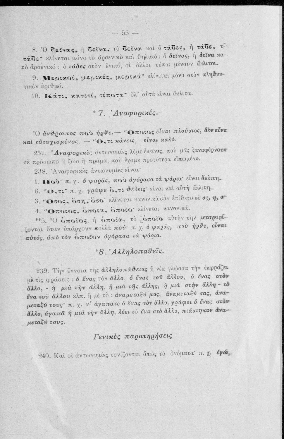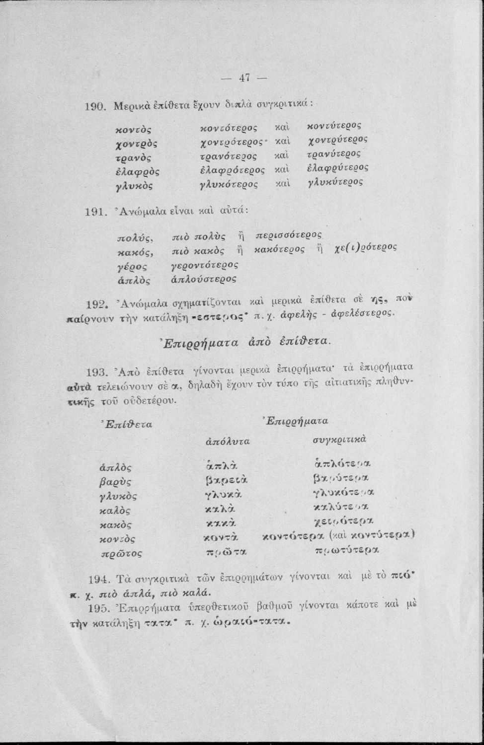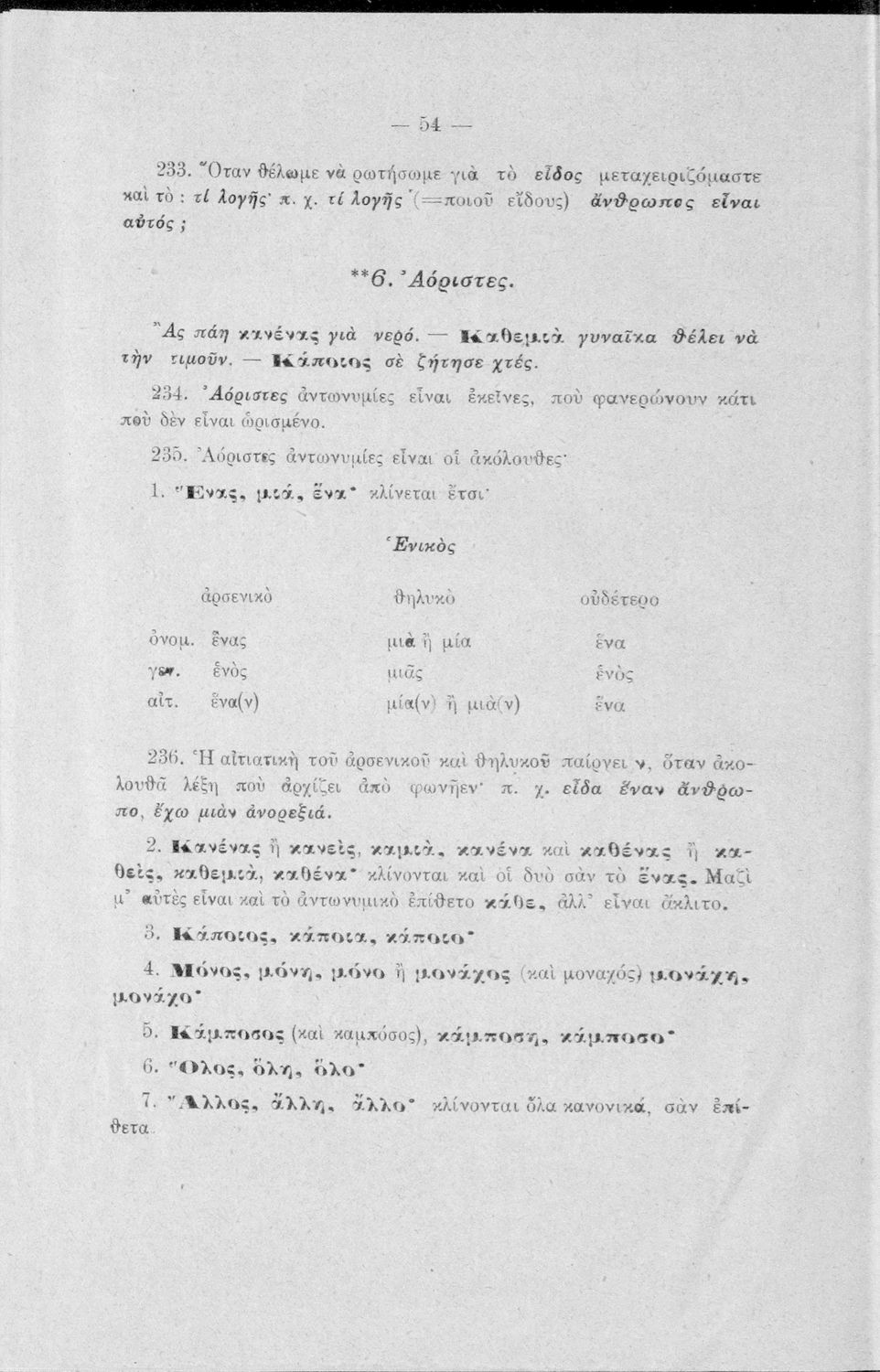Σχολικό εγχειρίδιο Αρχαίων Ελληνικών Γυμνασίου που περιέχει τους κανόνες γραμματικής και είναι χωρισμένο σε φθογγολογικό, τυπολογικό και ετυμολογικό μέρος. Περιέχει και κατάλογο ανωμάλων ρημάτων.