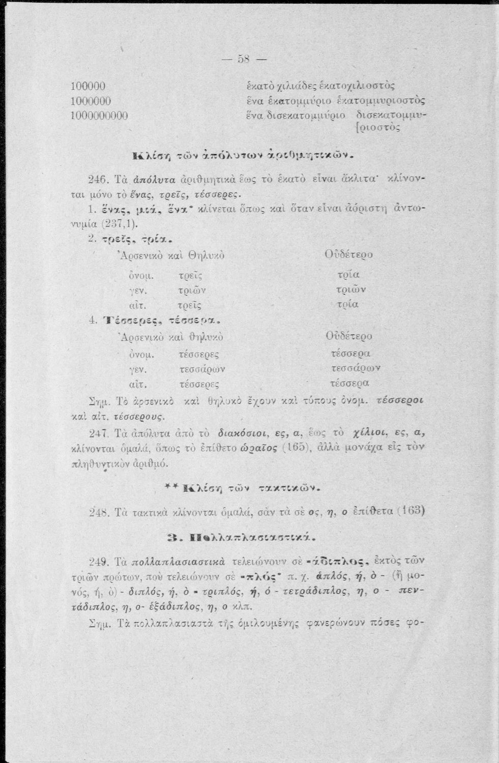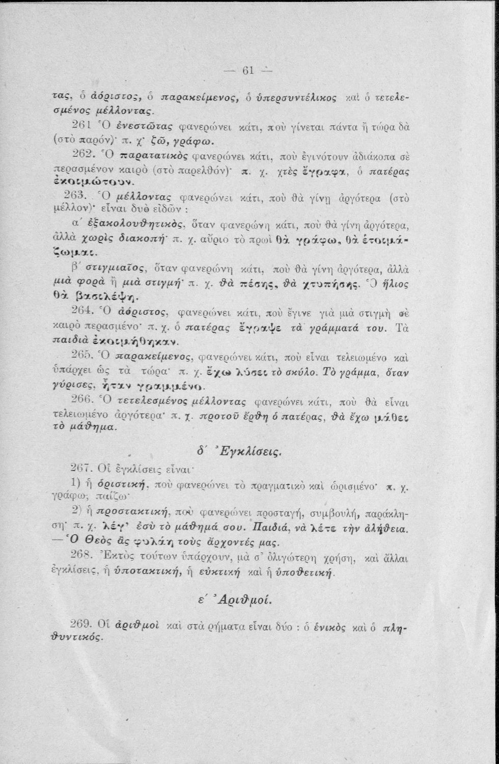 Σχολικό εγχειρίδιο Γλώσσας που περιέχει τη γραμματικής της καθαρεύουσας για τα Δημοτικά σχολεία.