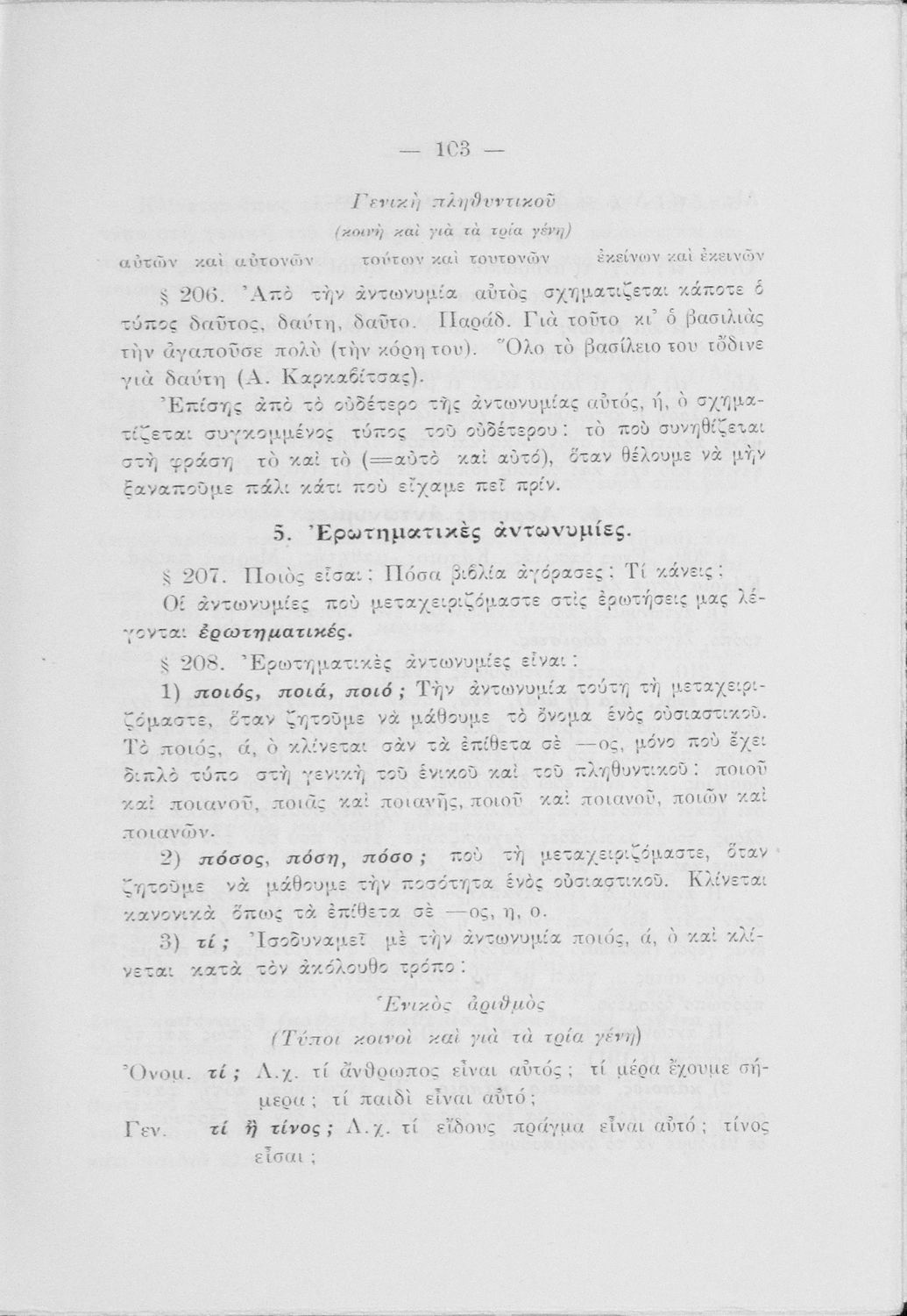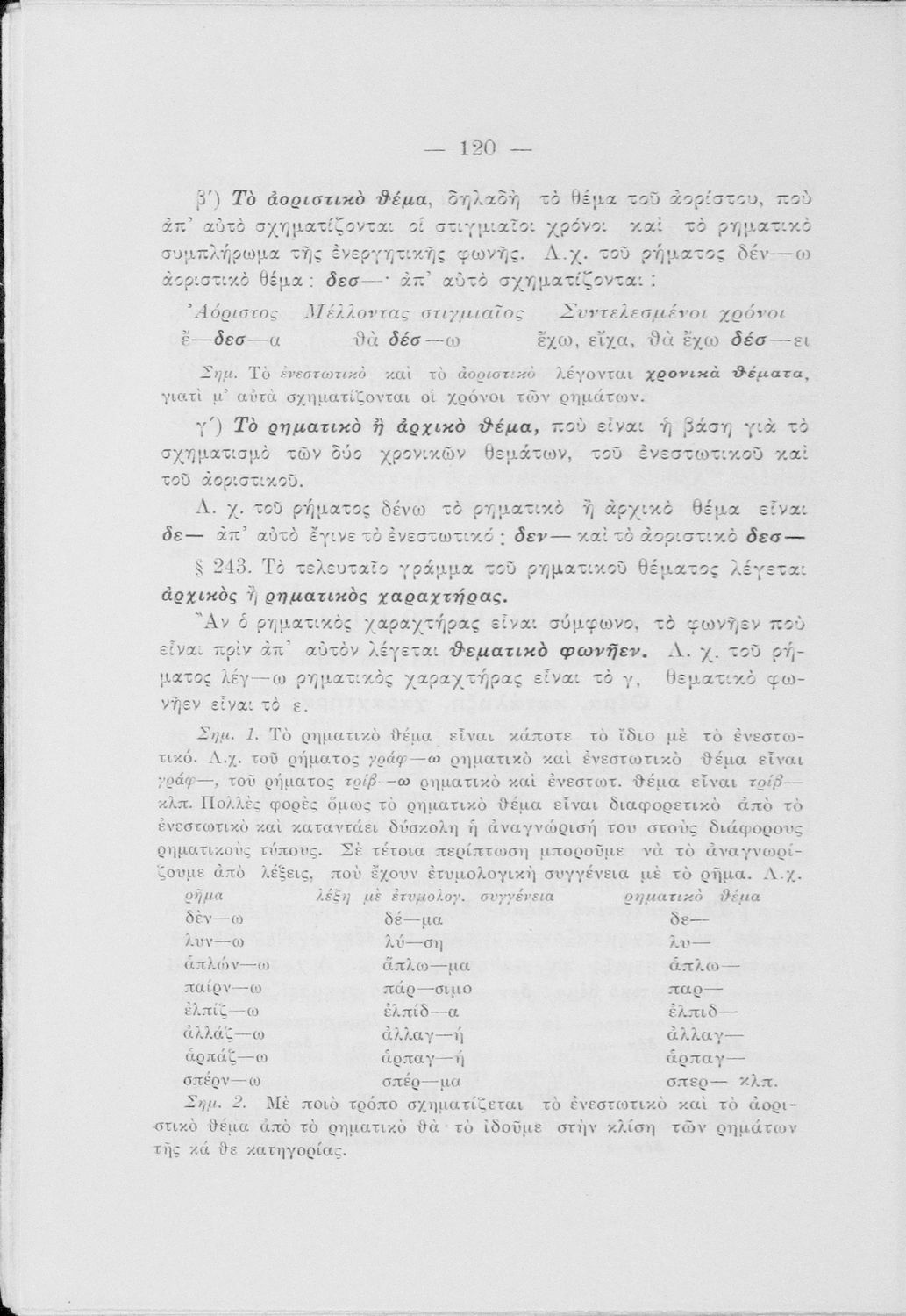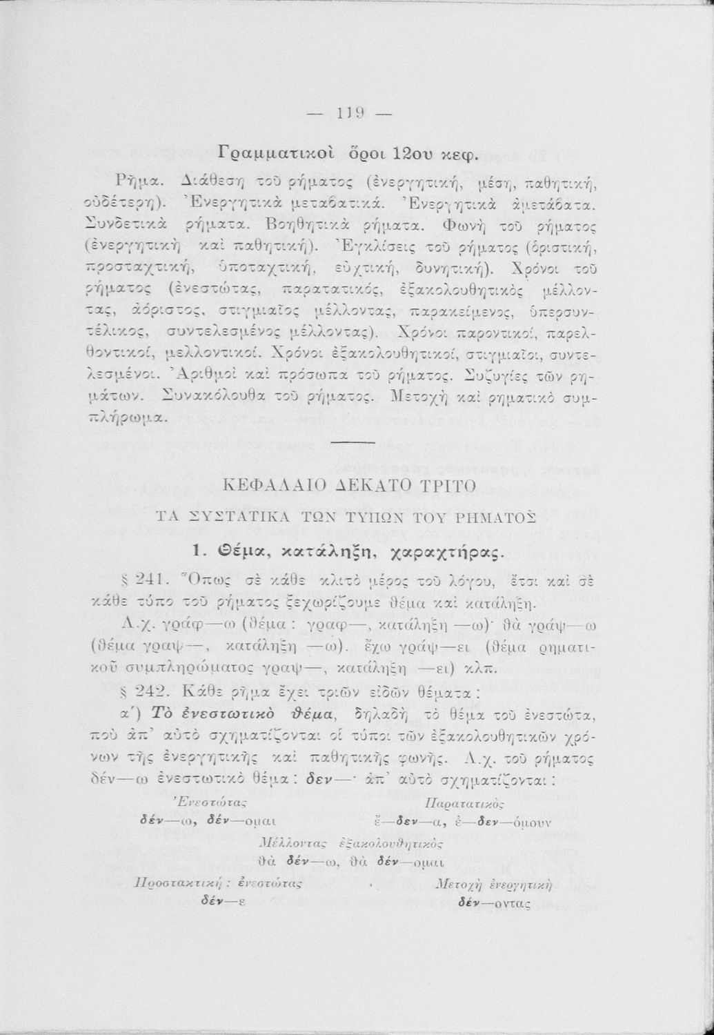 Μαθητικό βοήθημα Δημοτικού που περιλαμβάνει τη γραμματική και το συντακτικό της καθαρεύουσας και πίνακες παραδειγμάτων.