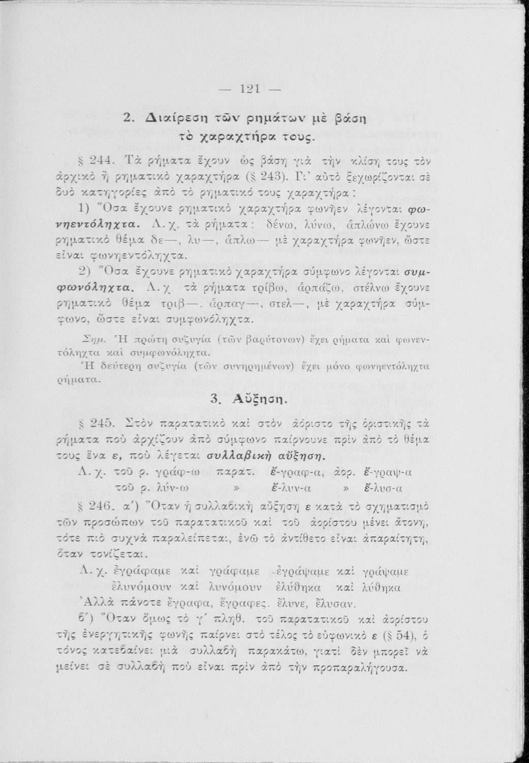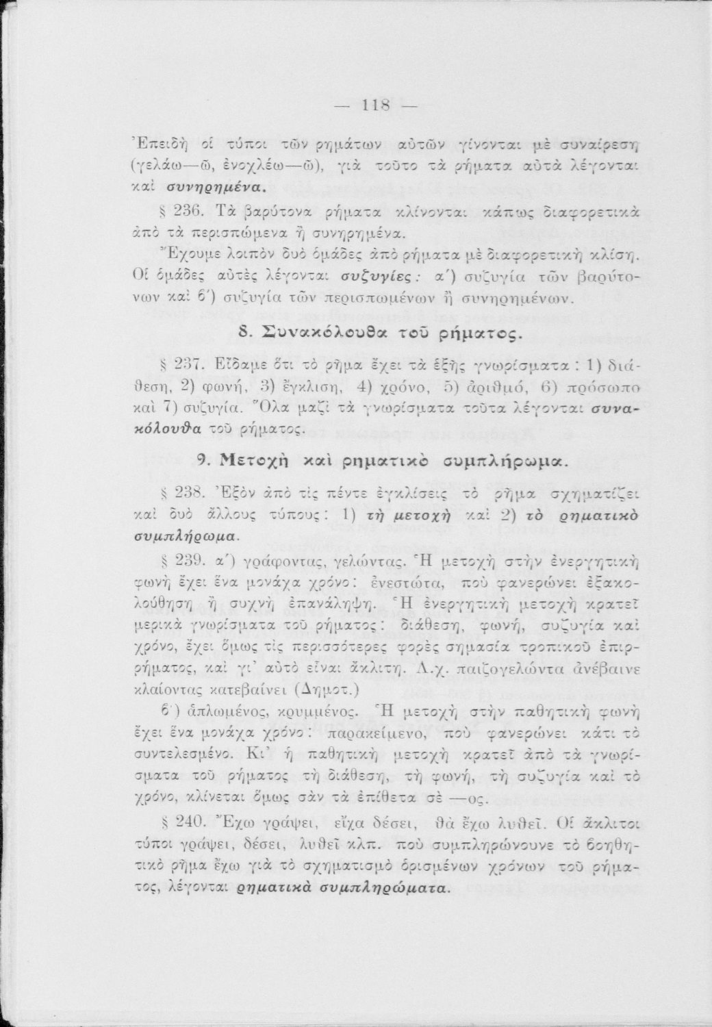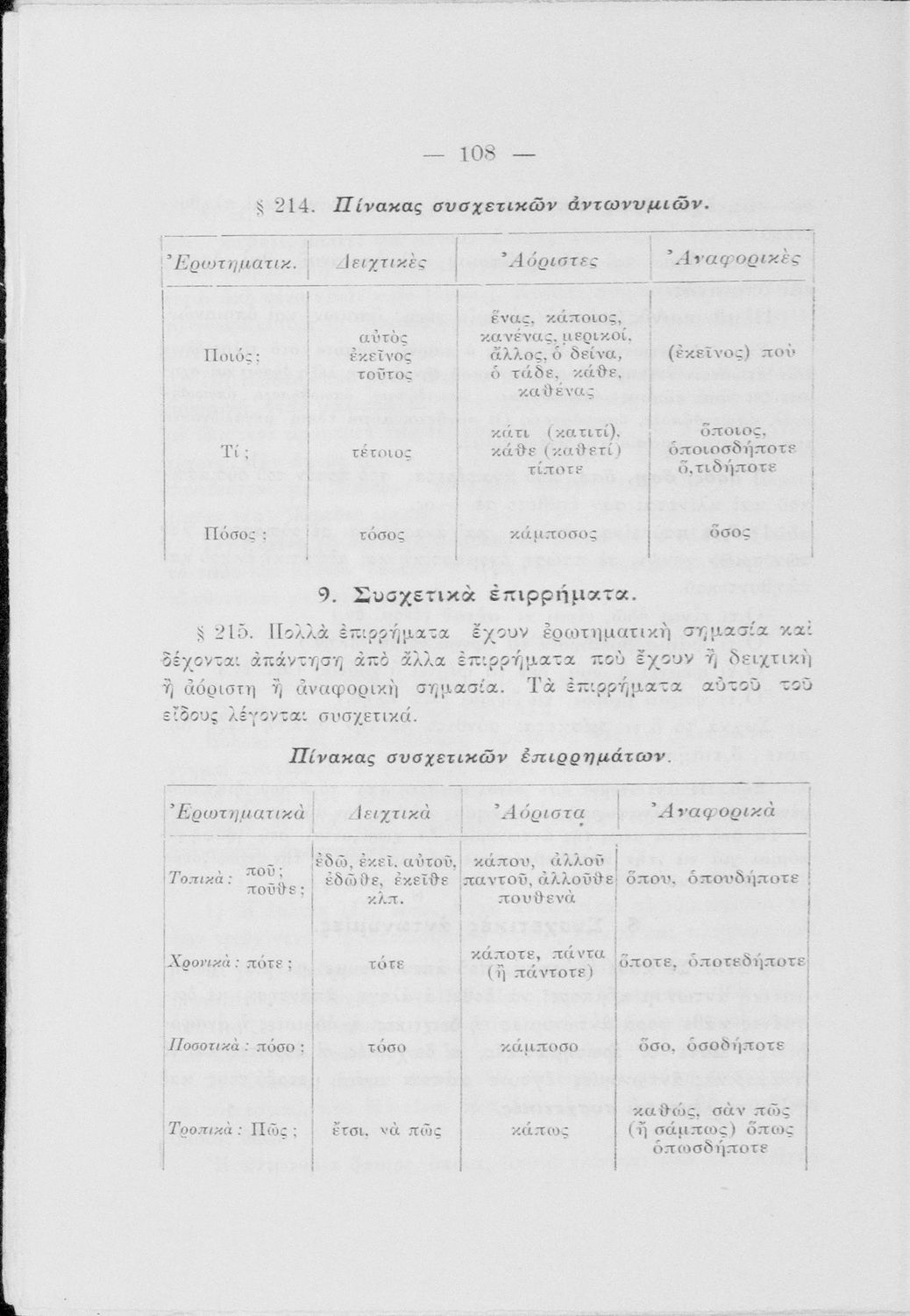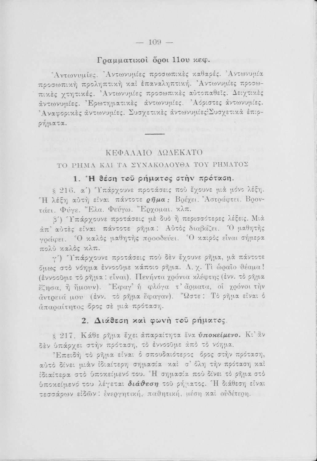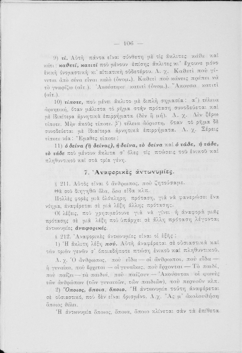 Σχολικό εγχειρίδιο Συντακτικού που γράφηκε από επιτροπή Καθηγητών που ορίστηκε από το Υπουργείο των Θρησκευμάτων και της Εθνικής Παιδείας. Περιλαμβάνει κανόνες και παραδείγματα του συντακτικού της Δημοτικής.