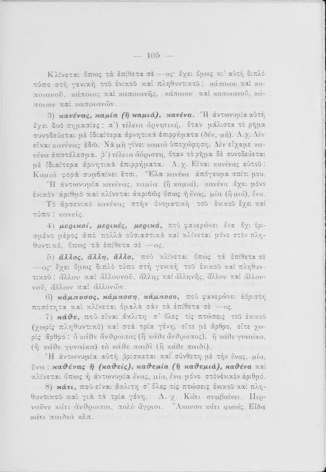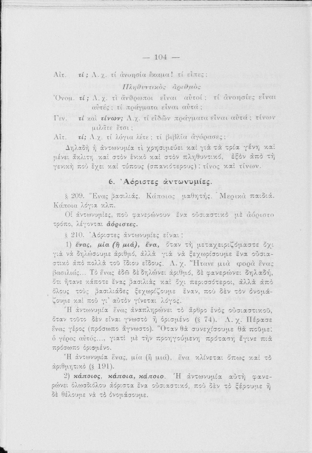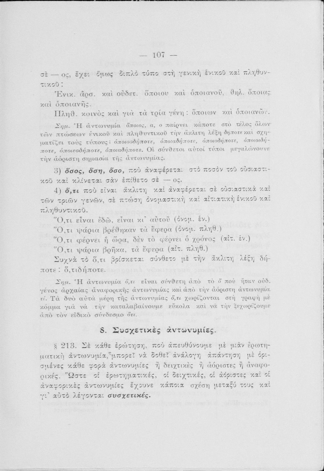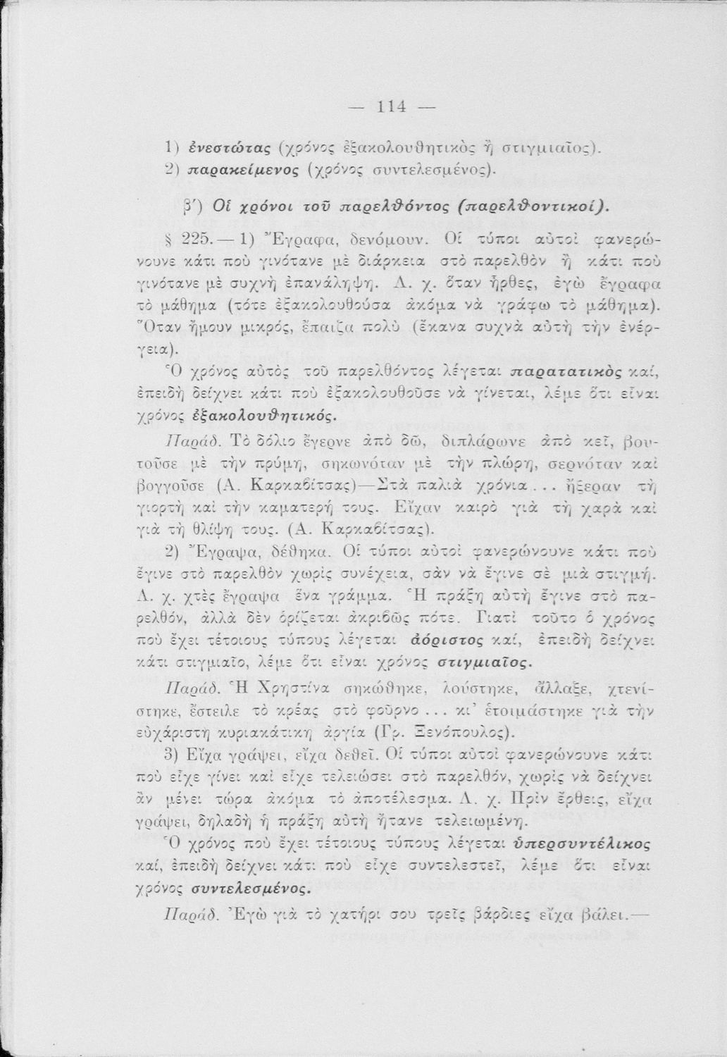 Σχολικό εγχειρίδιο Συντακτικού που γράφηκε από επιτροπή Καθηγητών που ορίστηκε από το Υπουργείο των Θρησκευμάτων και της Εθνικής Παιδείας. Περιλαμβάνει κανόνες και παραδείγματα του συντακτικού της Δημοτικής.