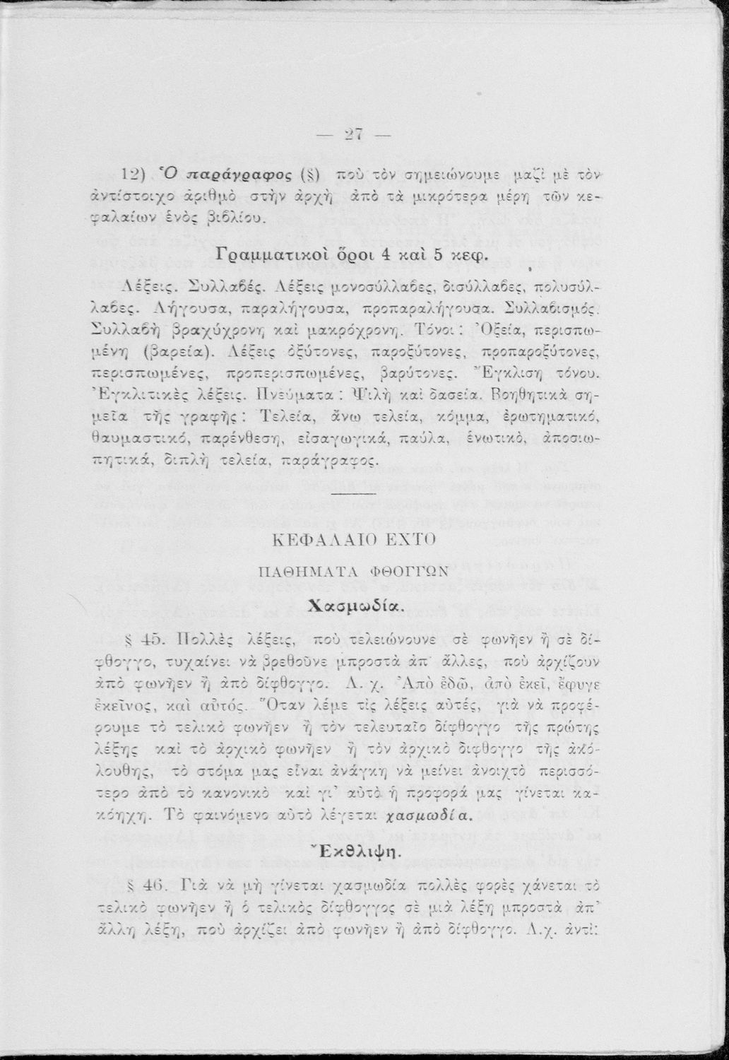 Μαθητικό βοήθημα Δημοτικού που περιλαμβάνει τη γραμματική και το συντακτικό της καθαρεύουσας και πίνακες παραδειγμάτων.