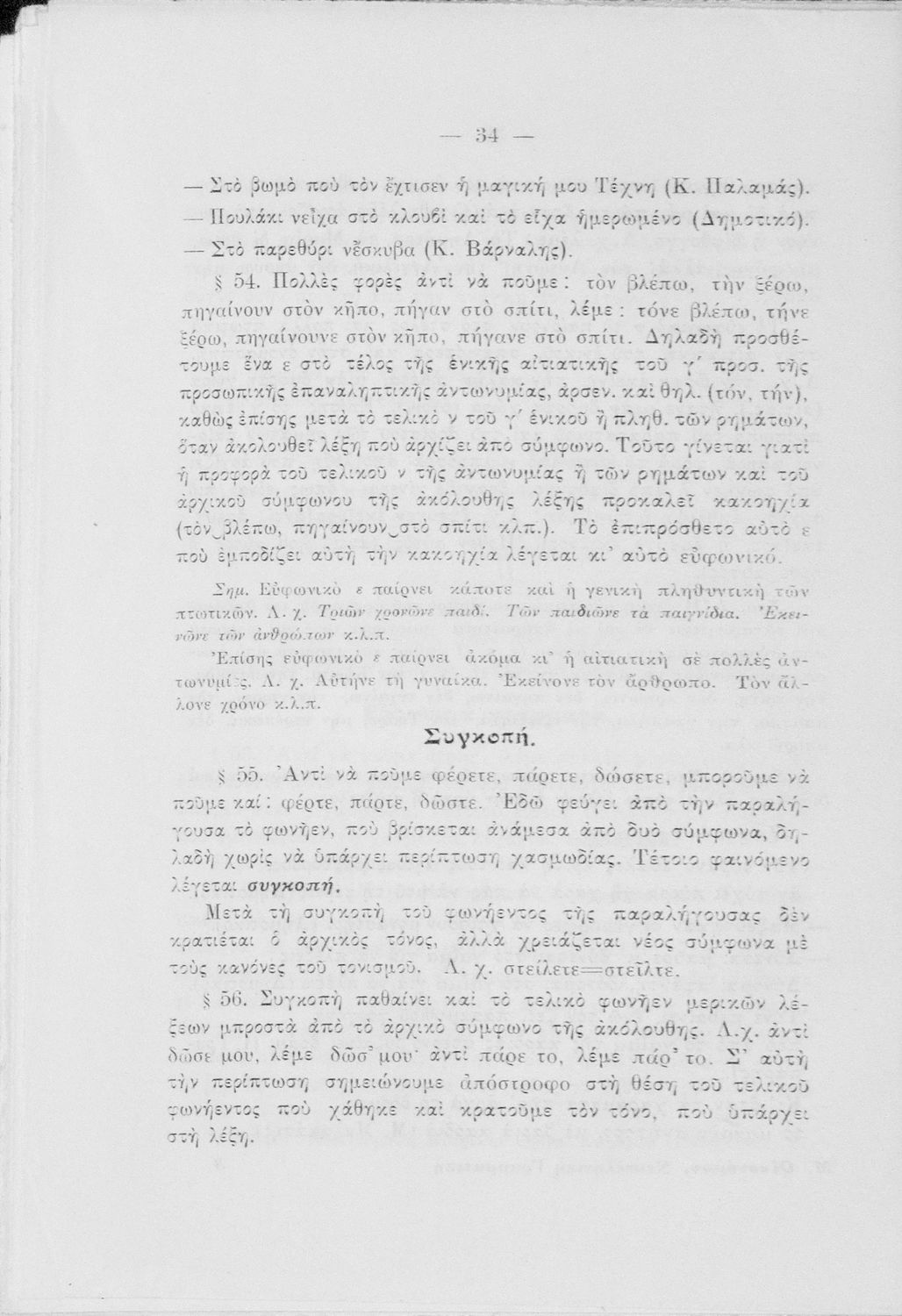 Σχολικό εγχειρίδιο Συντακτικού που γράφηκε από επιτροπή Καθηγητών που ορίστηκε από το Υπουργείο των Θρησκευμάτων και της Εθνικής Παιδείας. Περιλαμβάνει κανόνες και παραδείγματα του συντακτικού της Δημοτικής.