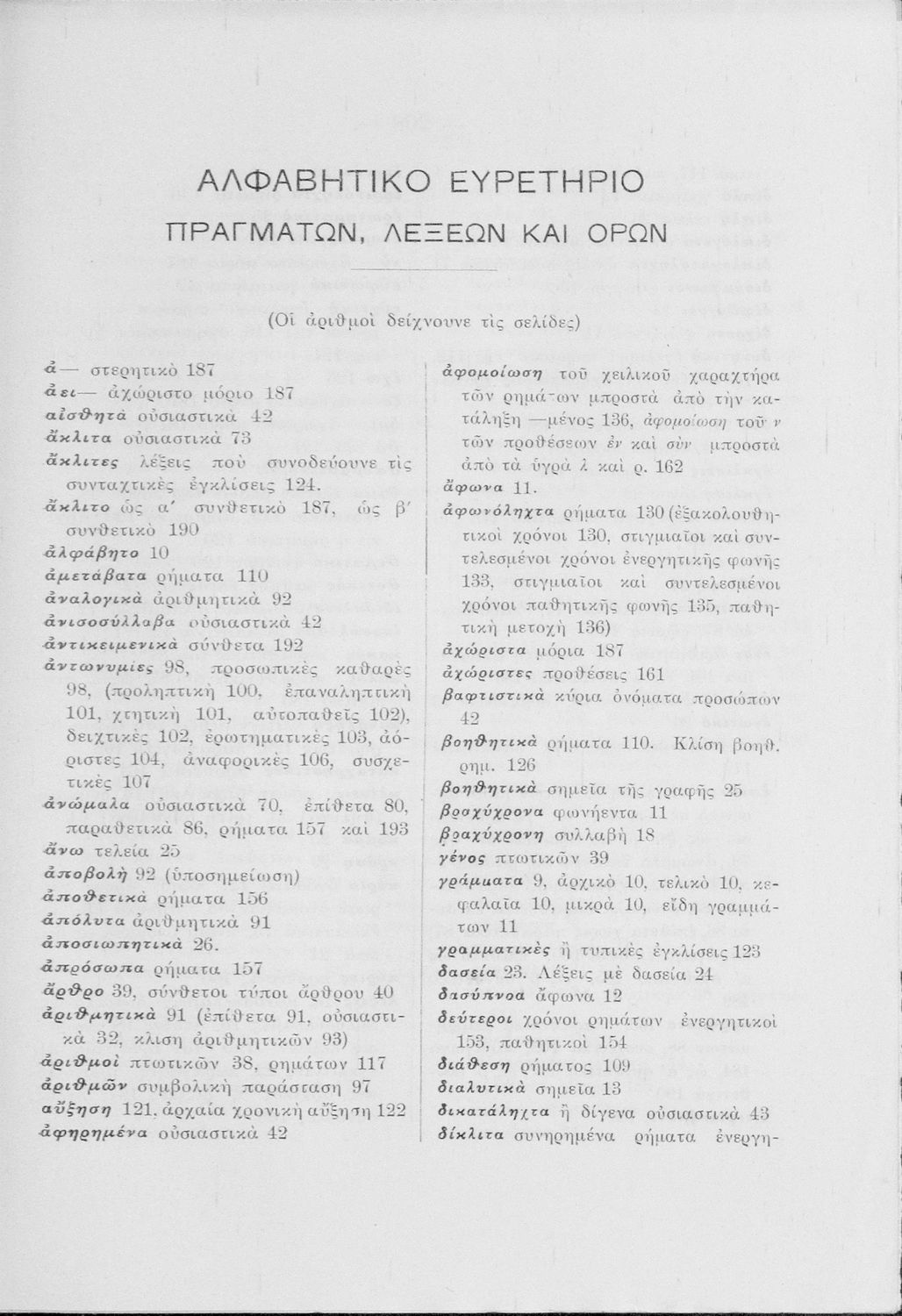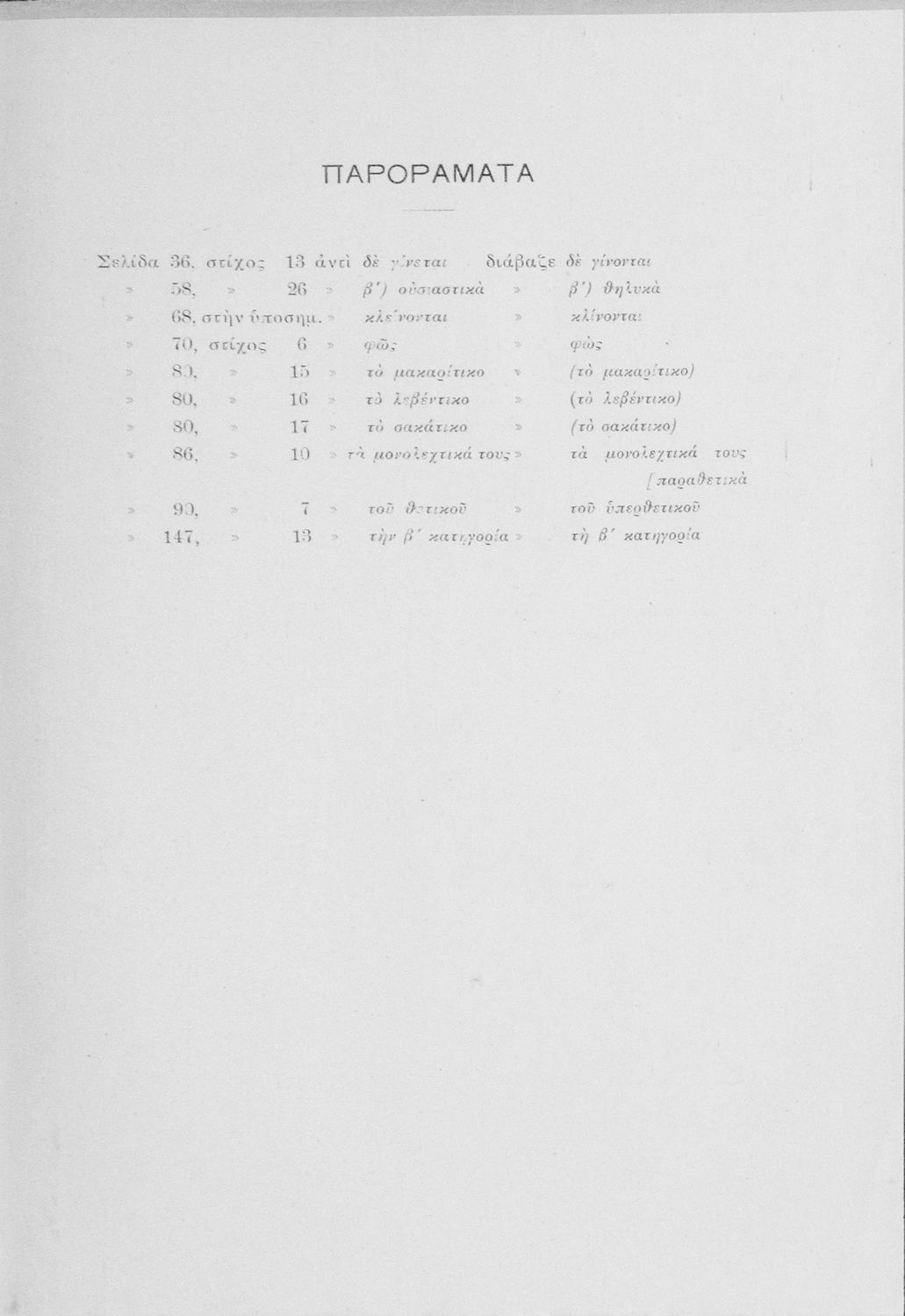 Μαθητικό βοήθημα Δημοτικού που περιλαμβάνει τη γραμματική και το συντακτικό της καθαρεύουσας και πίνακες παραδειγμάτων.