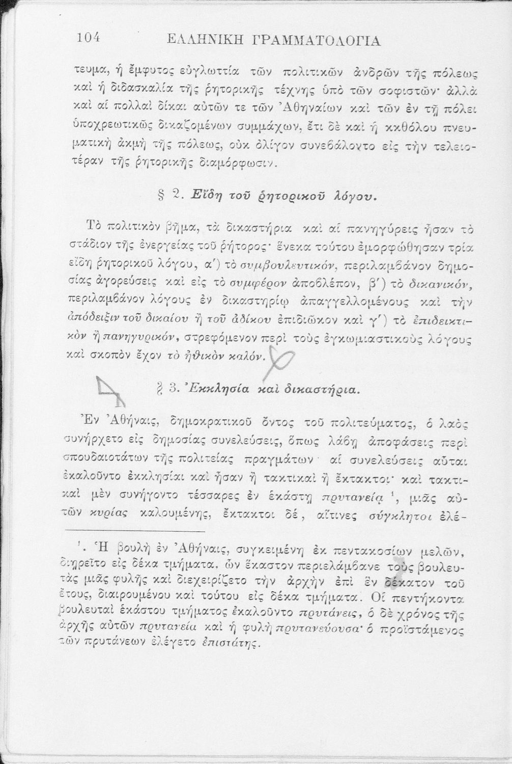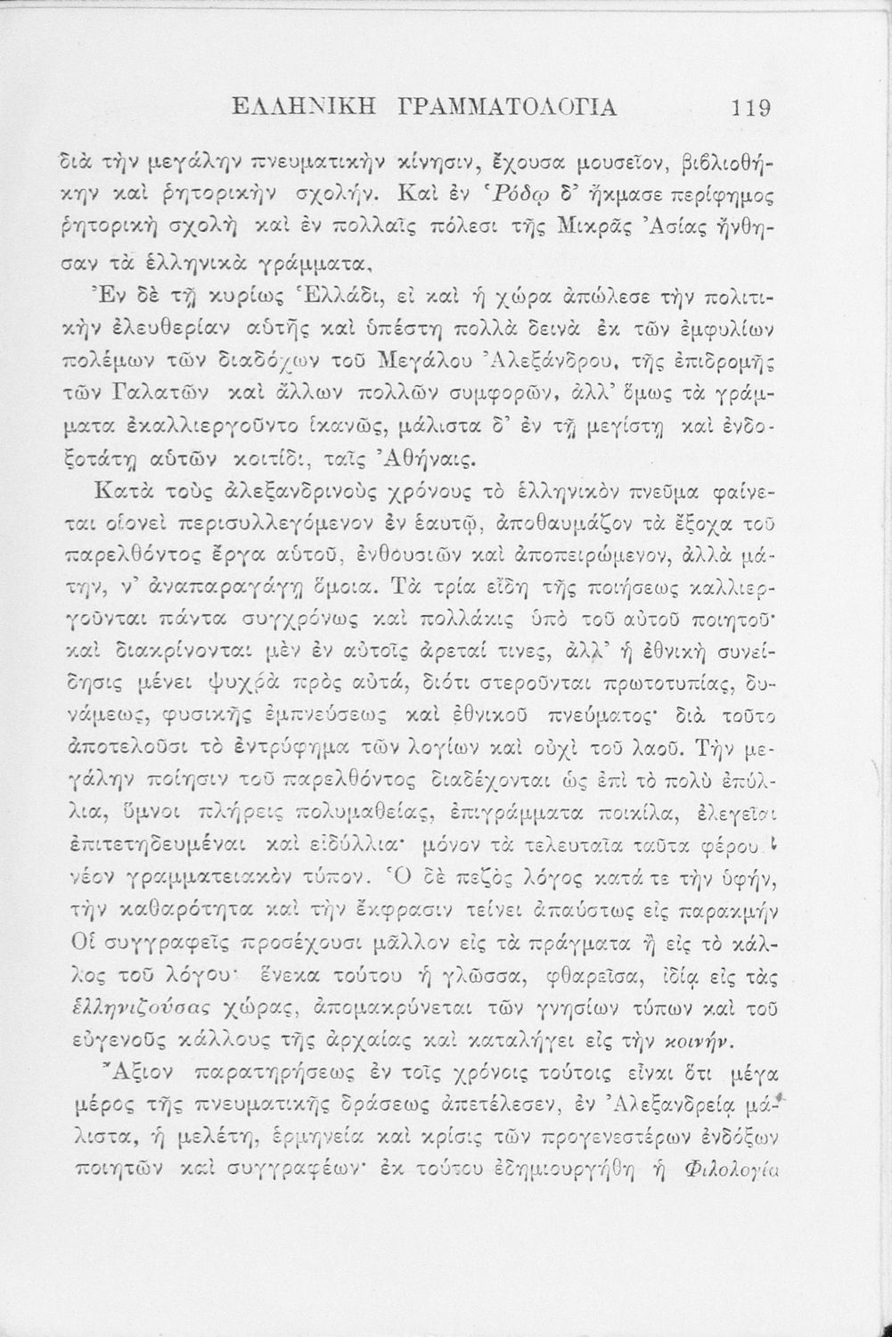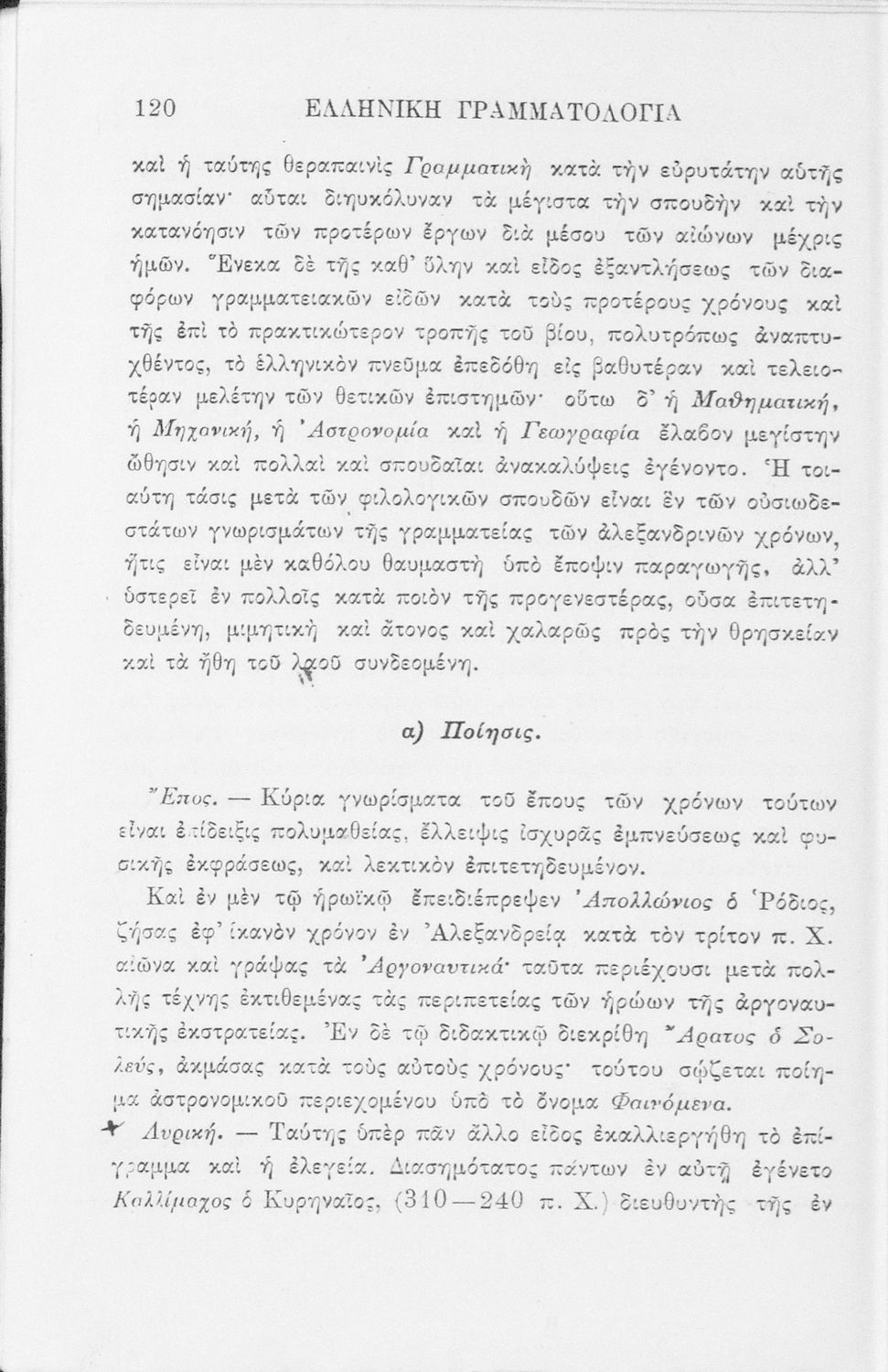 Βαθμίδα εκπαίδευσης: Δευτεροβάθμια Τάξη: Γυμνάσιο Μάθημα: Νέα Ελληνικά Γλώσσα: Καθαρεύουσα Παρουσίαση περιεχομένου: Σχολικό εγχειρίδιο Αρχαίων και Νέων Ελληνικών για το Γυμνάσιο που εξετάζει την εξέλιξη της ποίησης και του πεζού λόγου κατά την Αρχαϊκή, Κλασσική, Αλεξανδρινή και Ρωμαϊκή και Βυζαντινή περίοδο. |