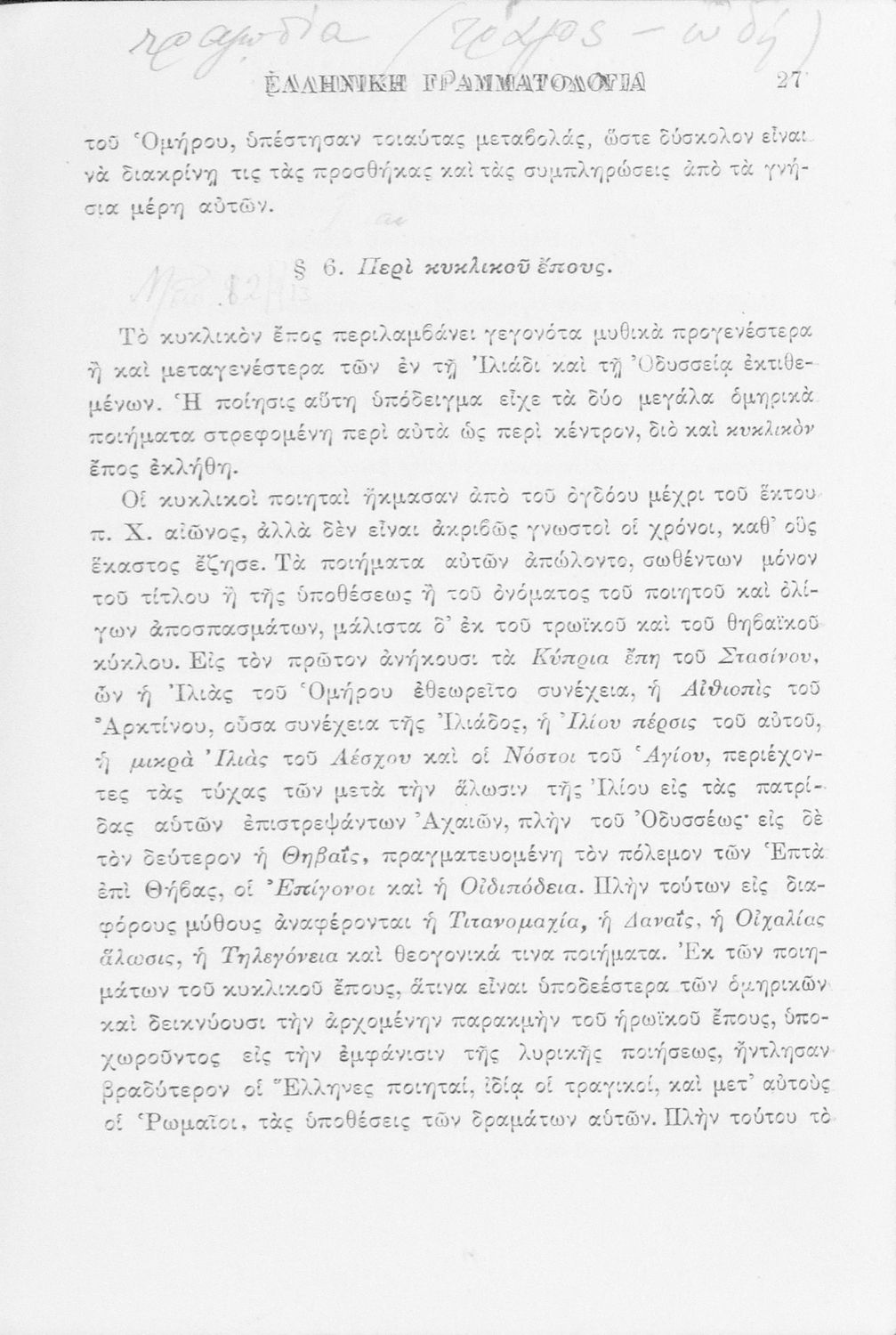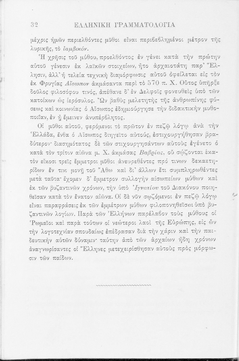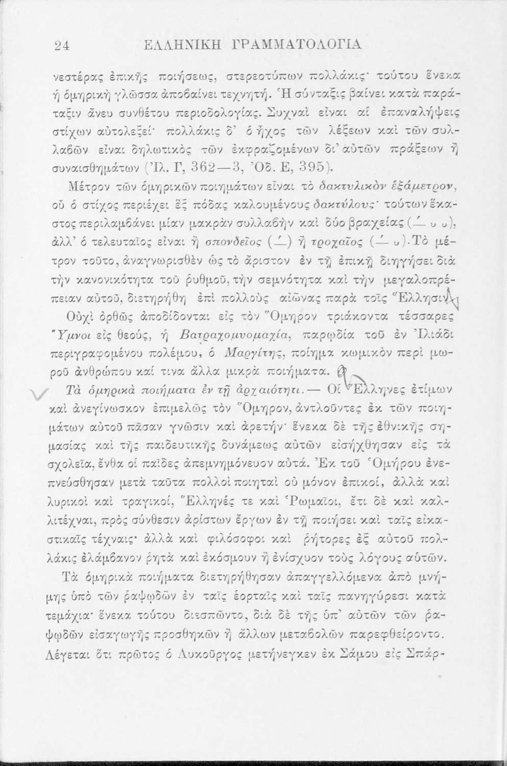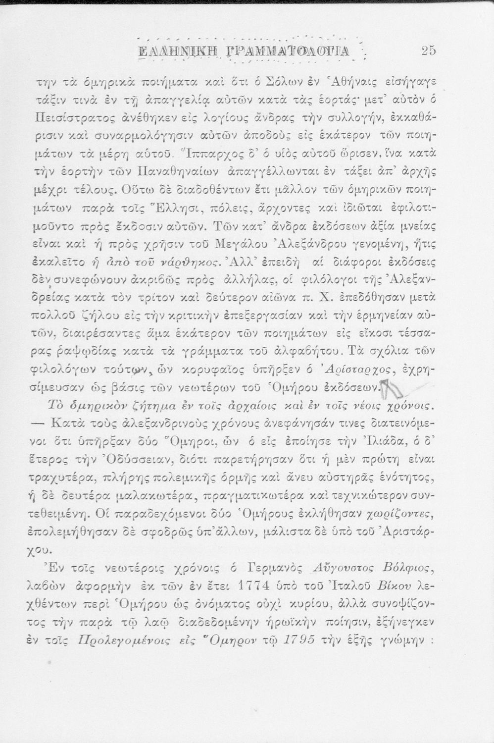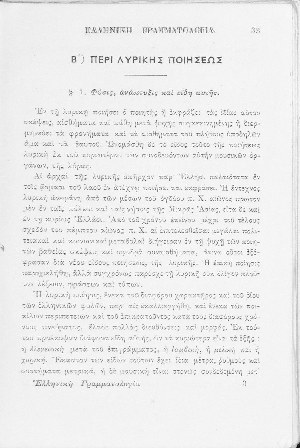 Σχολικό εγχειρίδιο Αρχαίων Ελληνικών για τα Ελληνικά Σχολεία, Παρθεναγωγεία και Γυμνάσια που περιέχει τους κανόνες γραμματικής και είναι χωρισμένο σε φθογγολογικό, τυπολογικό και ετυμολογικό μέρος.