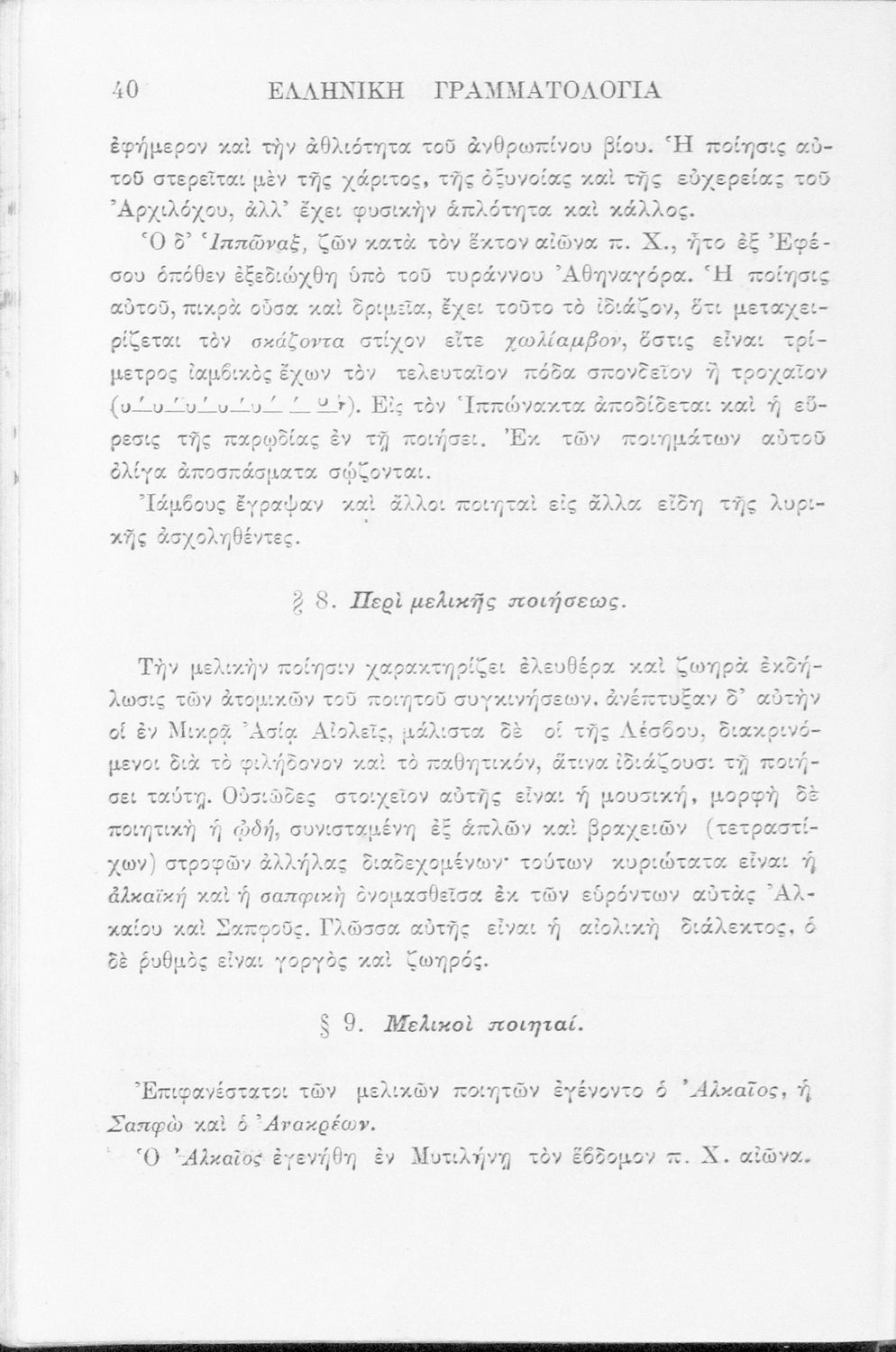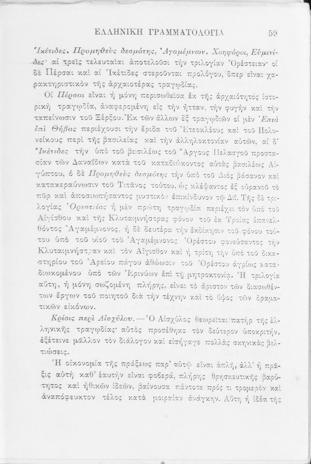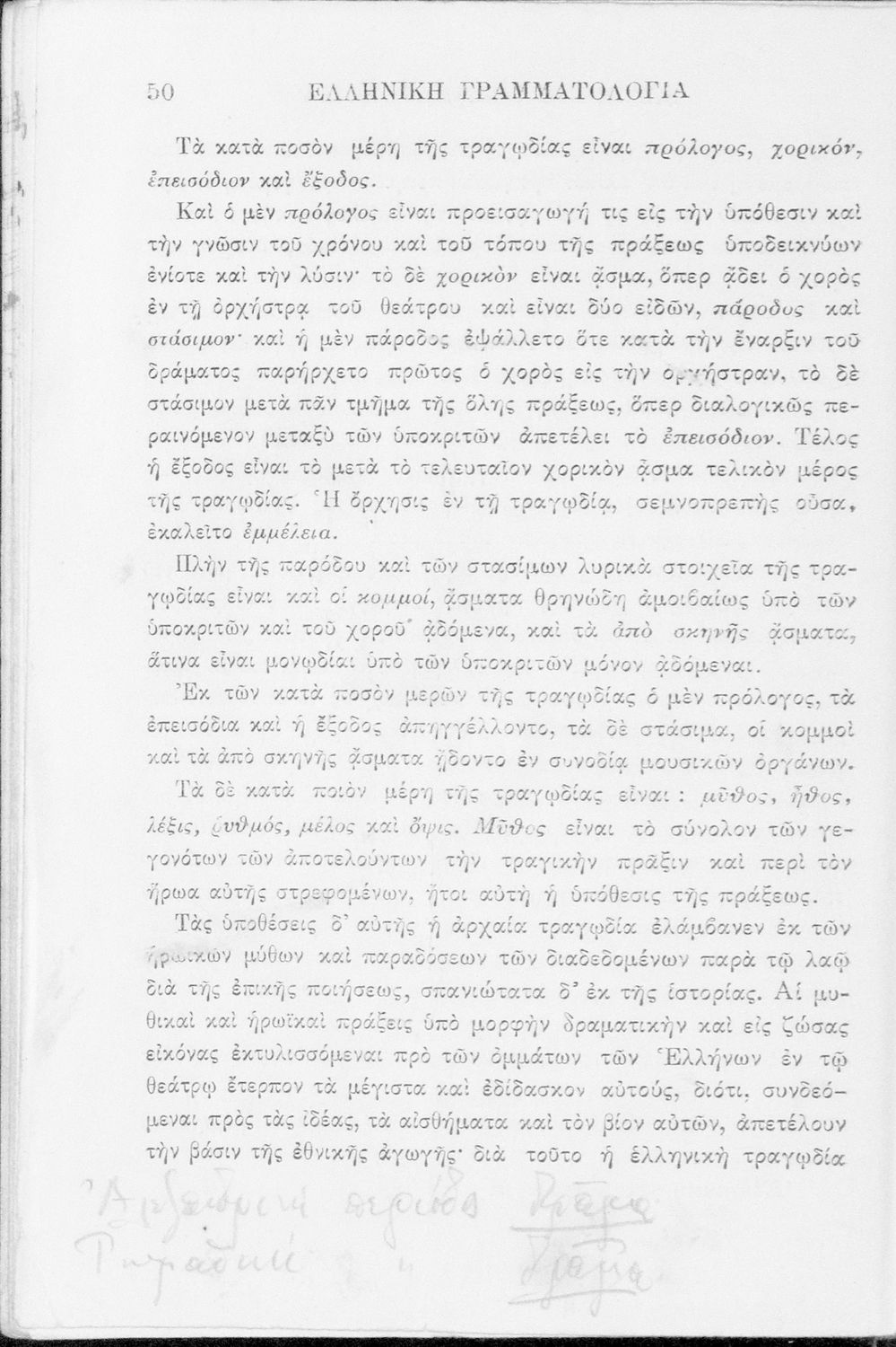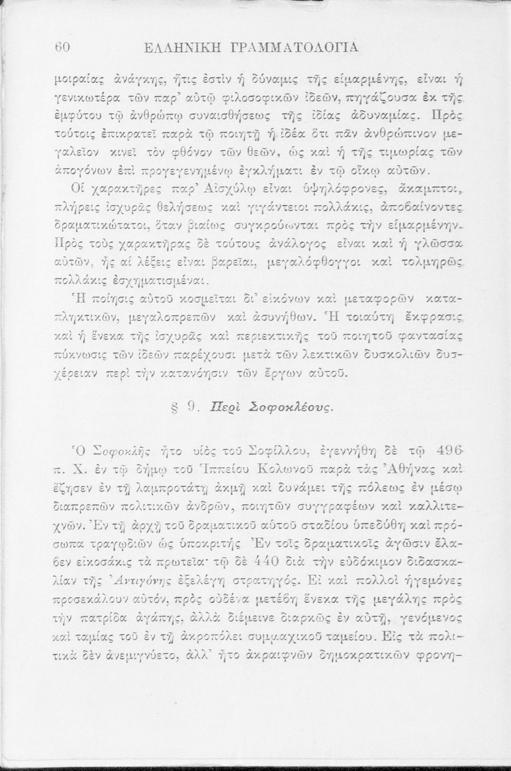Σχολικό εγχειρίδιο Αρχαίων Ελληνικών για τα Ελληνικά Σχολεία, Παρθεναγωγεία και Γυμνάσια που περιέχει τους κανόνες γραμματικής και είναι χωρισμένο σε φθογγολογικό, τυπολογικό και ετυμολογικό μέρος.