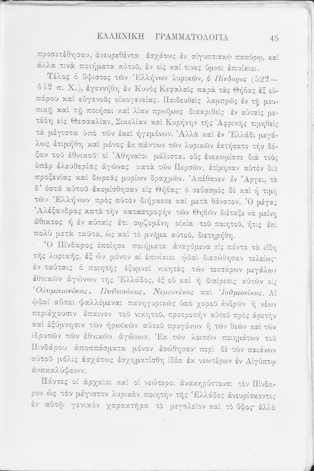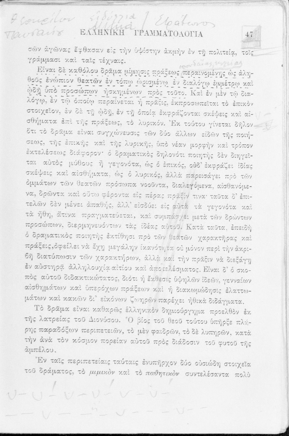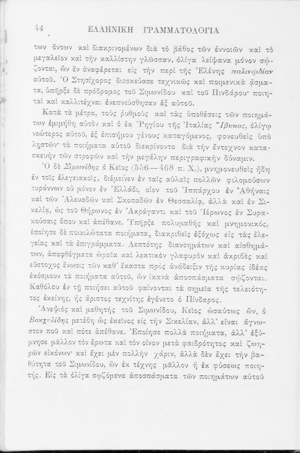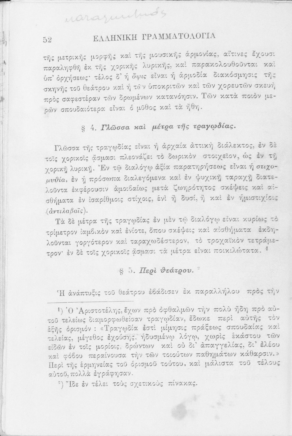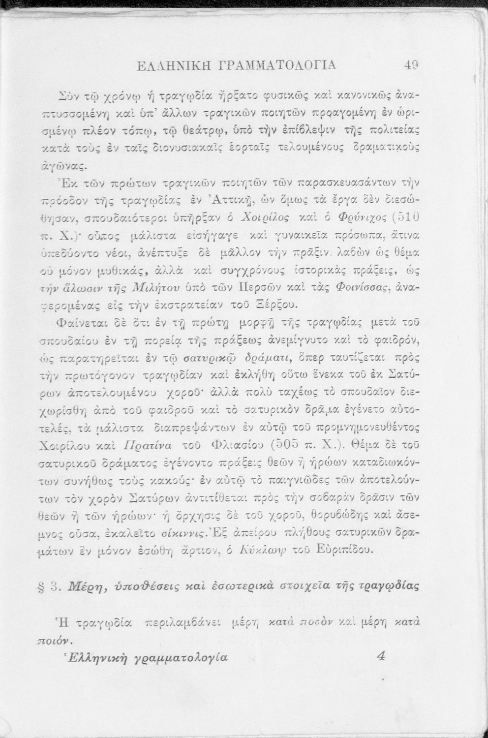 Σχολικό εγχειρίδιο Αρχαίων Ελληνικών για τα Ελληνικά Σχολεία, Παρθεναγωγεία και Γυμνάσια που περιέχει τους κανόνες γραμματικής και είναι χωρισμένο σε φθογγολογικό, τυπολογικό και ετυμολογικό μέρος.