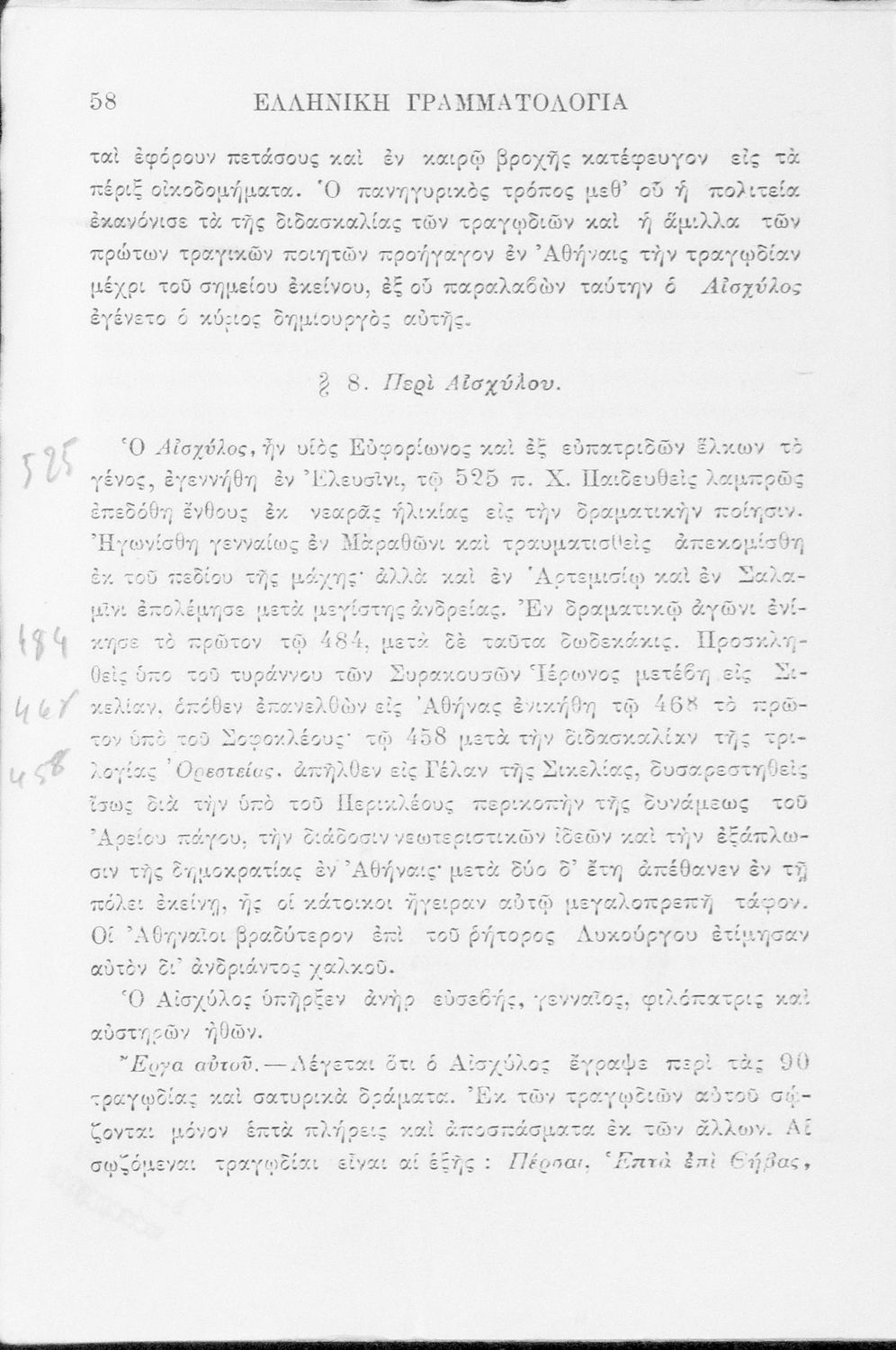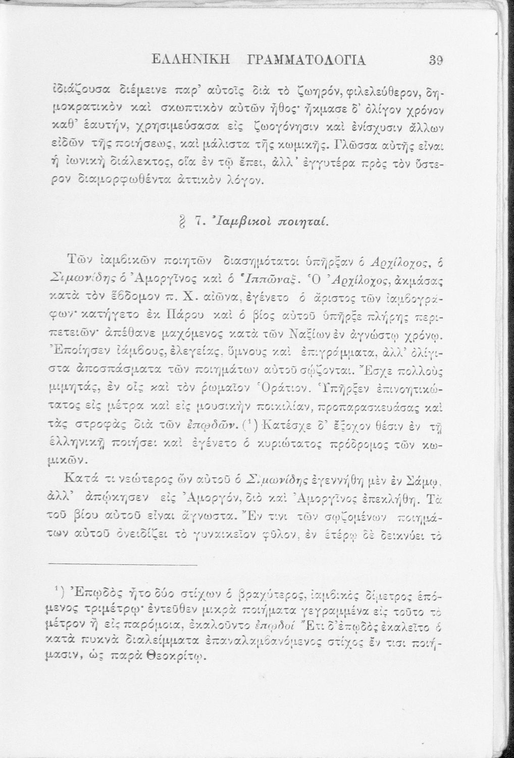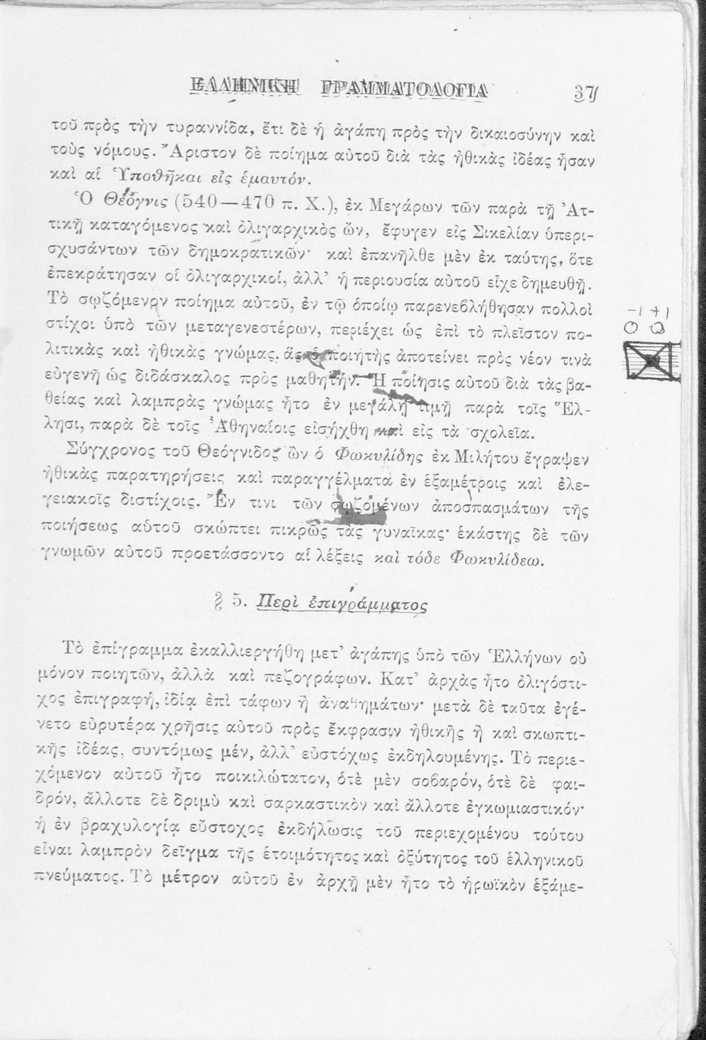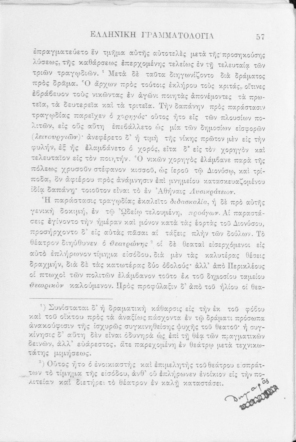 Σχολικό εγχειρίδιο Αρχαίων Ελληνικών για τα Ελληνικά Σχολεία, Παρθεναγωγεία και Γυμνάσια που περιέχει τους κανόνες γραμματικής και είναι χωρισμένο σε φθογγολογικό, τυπολογικό και ετυμολογικό μέρος.