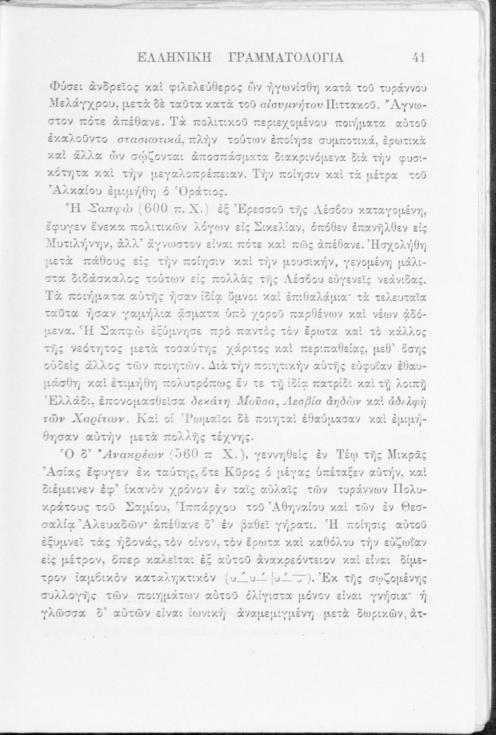 Παρουσίαση περιεχομένου: Σχολικό εγχειρίδιο Αρχαίων και Νέων Ελληνικών για το Γυμνάσιο που εξετάζει την εξέλιξη της ποίησης και του πεζού λόγου κατά την Αρχαϊκή, Κλασσική, Αλεξανδρινή και Ρωμαϊκή και Βυζαντινή περίοδο.