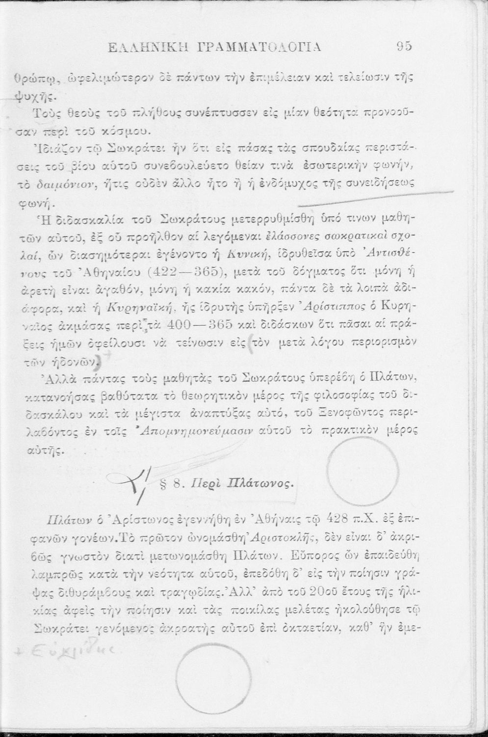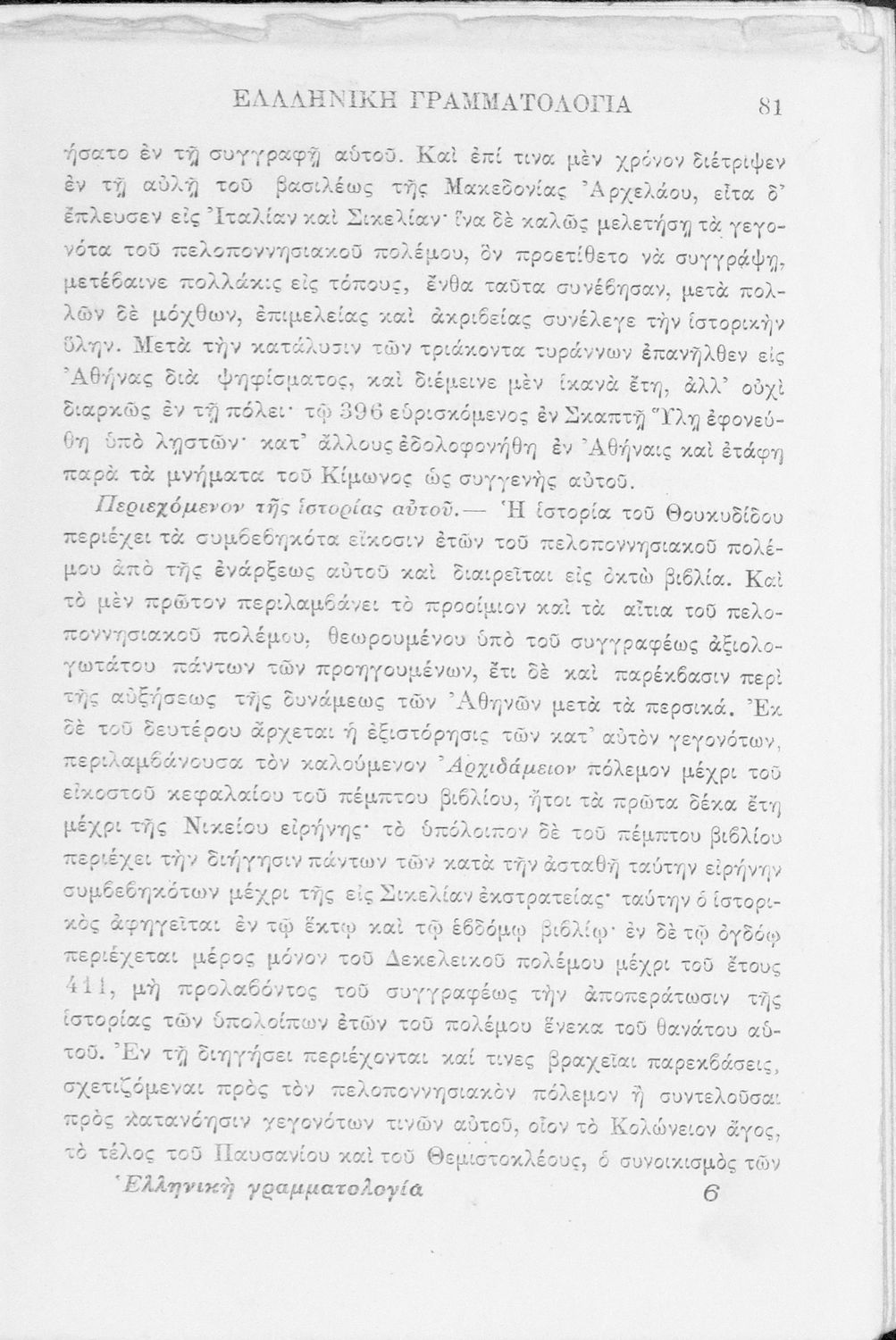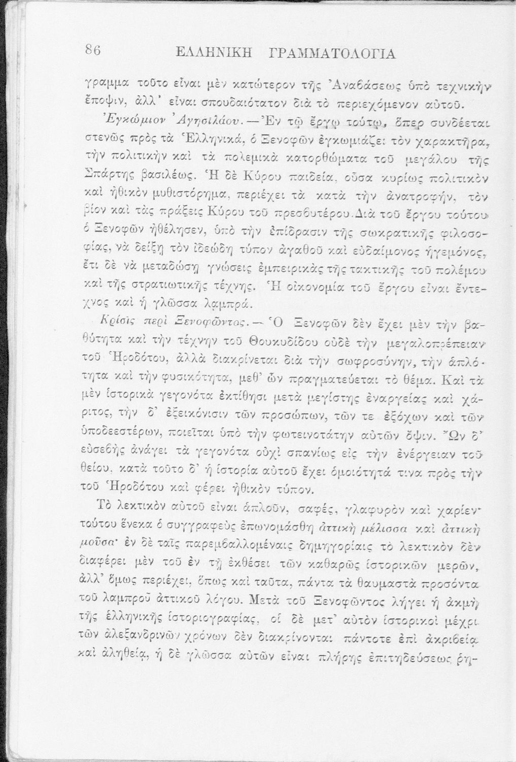 Βαθμίδα εκπαίδευσης: Δευτεροβάθμια Τάξη: Γυμνάσιο Μάθημα: Νέα Ελληνικά Γλώσσα: Καθαρεύουσα Παρουσίαση περιεχομένου: Σχολικό εγχειρίδιο Αρχαίων και Νέων Ελληνικών για το Γυμνάσιο που εξετάζει την εξέλιξη της ποίησης και του πεζού λόγου κατά την Αρχαϊκή, Κλασσική, Αλεξανδρινή και Ρωμαϊκή και Βυζαντινή περίοδο. |