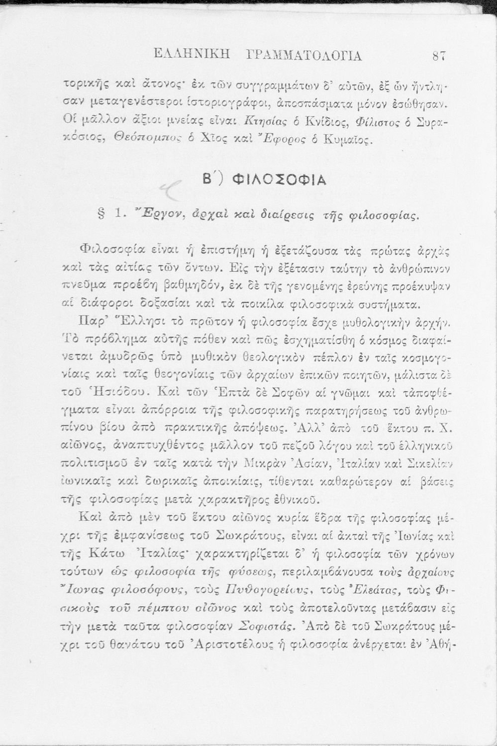 LDR 01144 2200193 4500 035 ## _a05-00130 040 ## _aΕργαστήρι Ιστορίας Ν.Ε. Εκπαίδευσης, Πανεπιστήμιο Ιωαννίνων 041 ## _ael 100 ## _aΓεώργιος Δ. Θοιβιδόπουλος 110 ## _a130 245 0# _aΕλληνική γραμματολογία. Προς χρήσιν των Γυμνασίων 260 ## _aΑθήνα _bΔ.Χ. Τερζόπουλος _c1910 300 ## _a160 _bΣκίτσα (ασπρόμαυρα) 520 ## _aΣχολικό εγχειρίδιο Αρχαίων και Νέων Ελληνικών για το Γυμνάσιο που εξετάζει την εξέλιξη της ποίησης και του πεζού λόγου κατά την Αρχαϊκή, Κλασσική, Αλεξανδρινή και Ρωμαϊκή και Βυζαντινή περίοδο. 521 ## _aΓυμνάσιο 522 ## _aΕλλάδα 546 ## _aΚαθαρεύουσα 563 ## _aΣκληρό Εξώφυλλο 650 #4 _aΔράμα _aΛογοτεχνία _aΛυρική ποίηση _aΡητορεία _aΦιλοσοφία