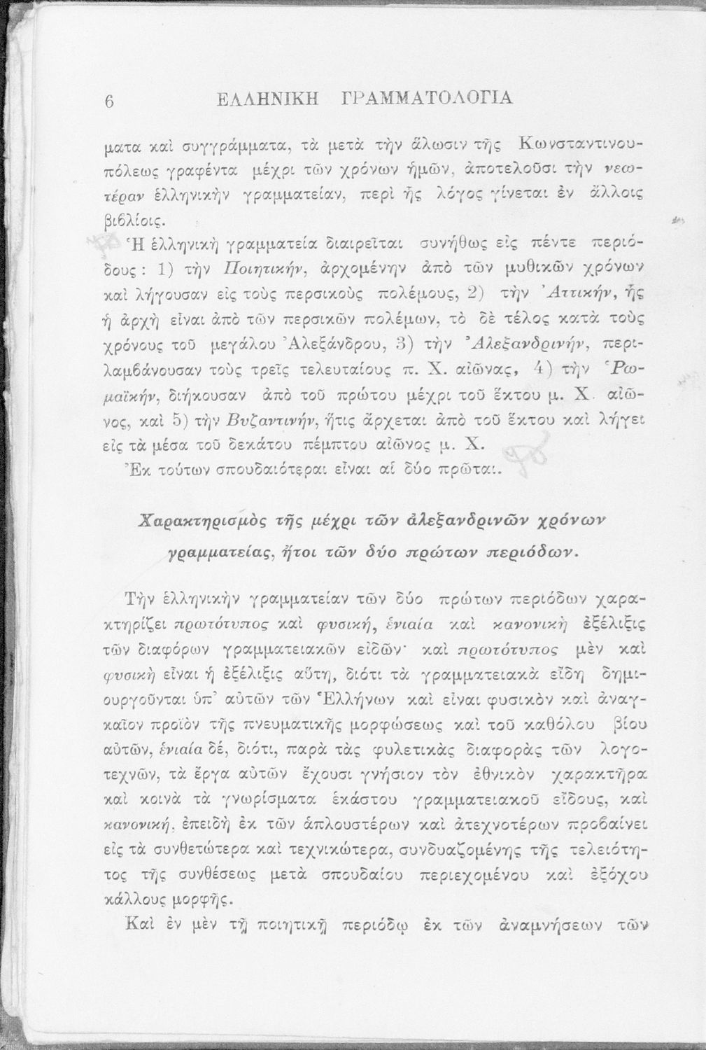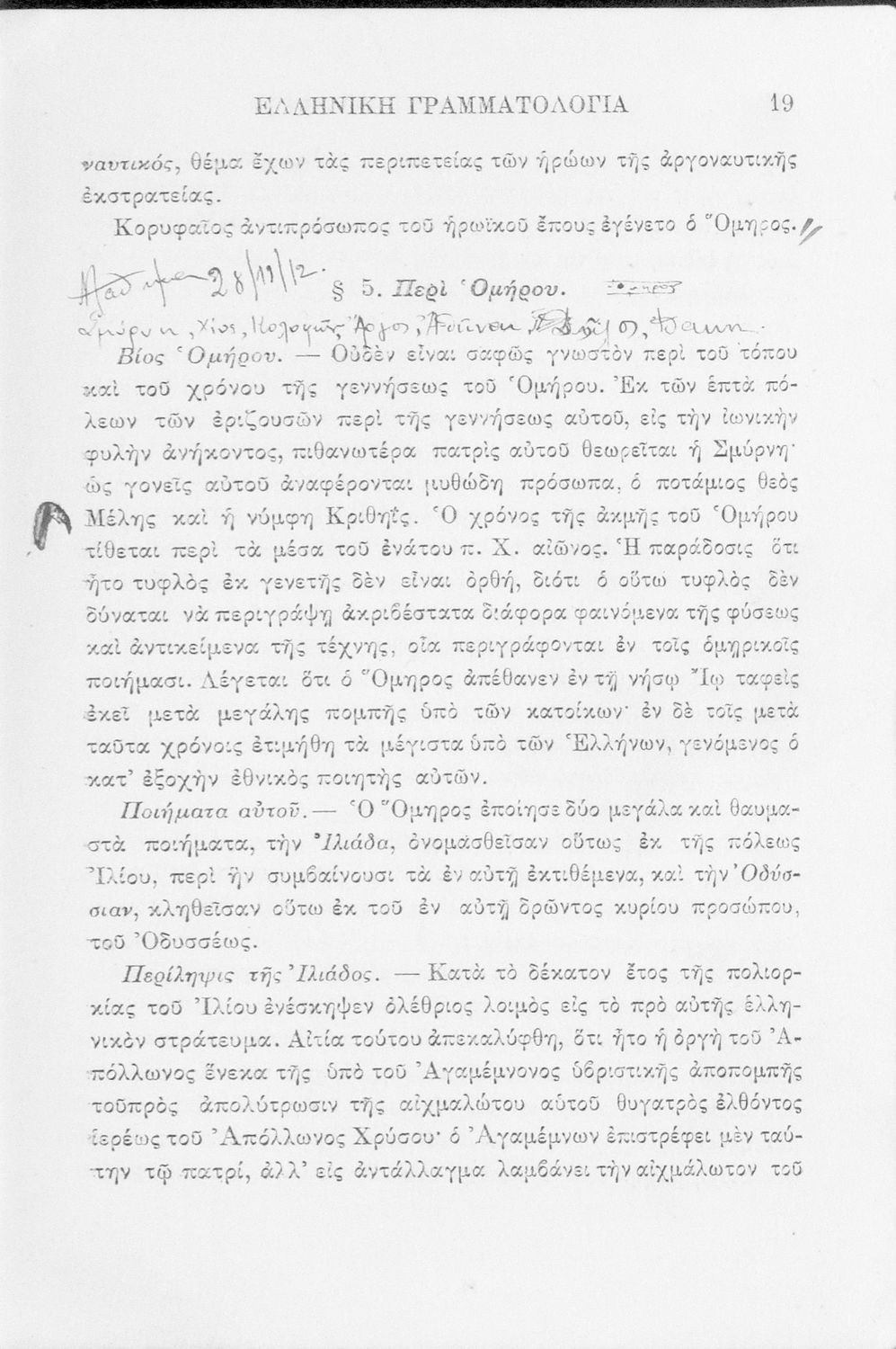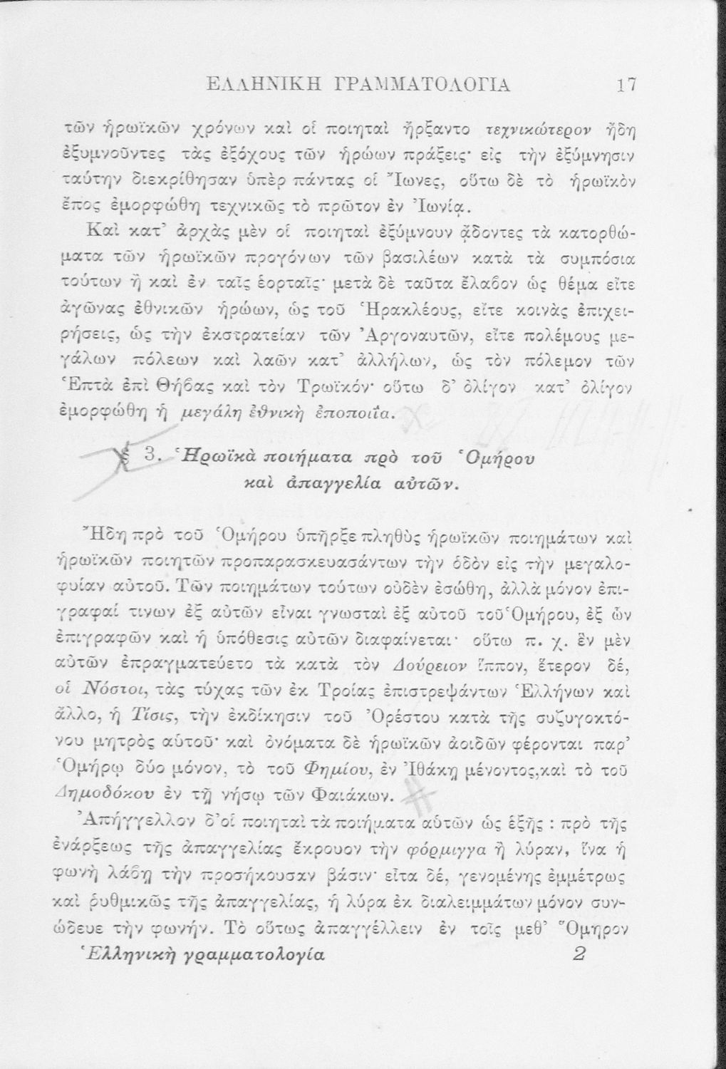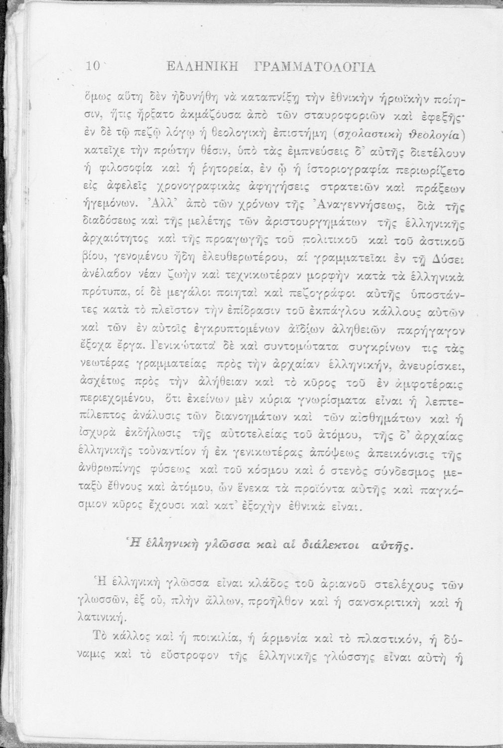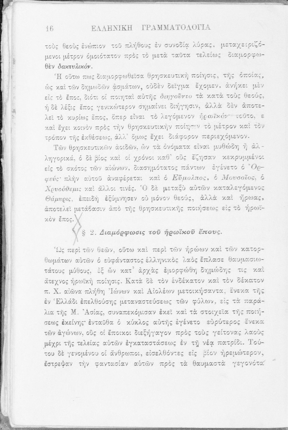 Βαθμίδα εκπαίδευσης: Δευτεροβάθμια Τάξη: Γυμνάσιο Μάθημα: Νέα Ελληνικά Γλώσσα: Καθαρεύουσα Παρουσίαση περιεχομένου: Σχολικό εγχειρίδιο Αρχαίων και Νέων Ελληνικών για το Γυμνάσιο που εξετάζει την εξέλιξη της ποίησης και του πεζού λόγου κατά την Αρχαϊκή, Κλασσική, Αλεξανδρινή και Ρωμαϊκή και Βυζαντινή περίοδο. |