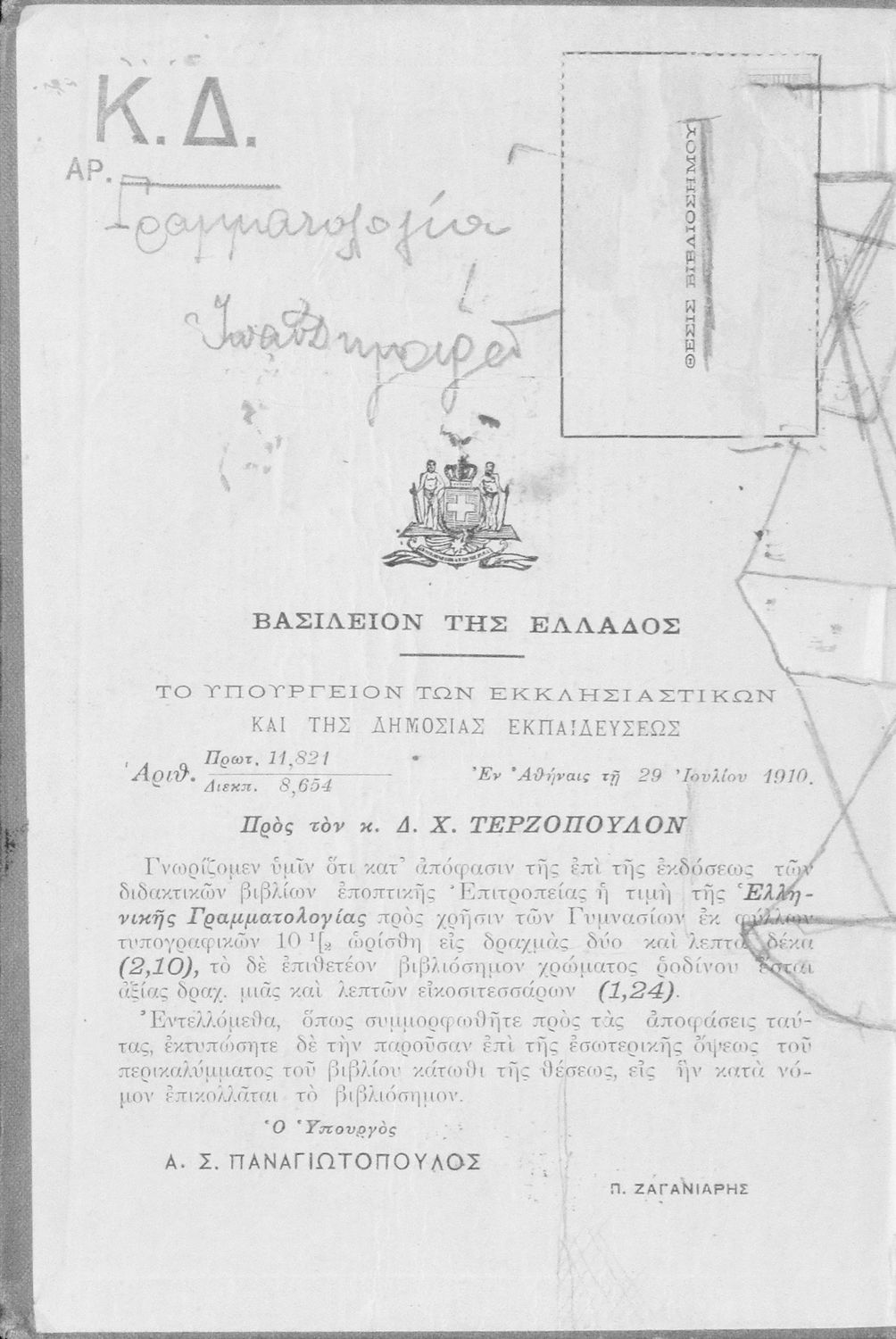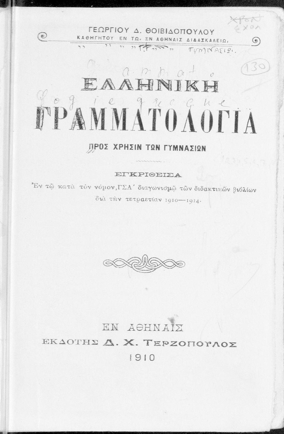 Εκδότης: Δ.Χ. Τερζόπουλος Έτος έκδοσης: 1910 Τόπος έκδοσης: Αθήνα |