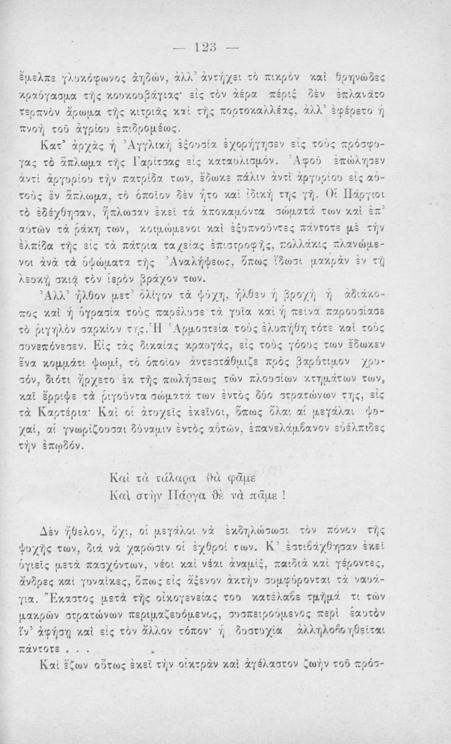 Σχολικό εγχειρίδιο Νέων Ελληνικών Β΄ Τετραταξίου Γυμνασίου και Γ΄ Αστικού Σχολείου Θηλέων που περιλαμβάνει ποιήματα και πεζά Ελλήνων συγγραφέων εμπνευσμένα από την σύγχρονη ελληνική ιστορία. Περιέχει και παράρτημα με βιογραφίες των συγγραφέων και λεξιλόγιο.
