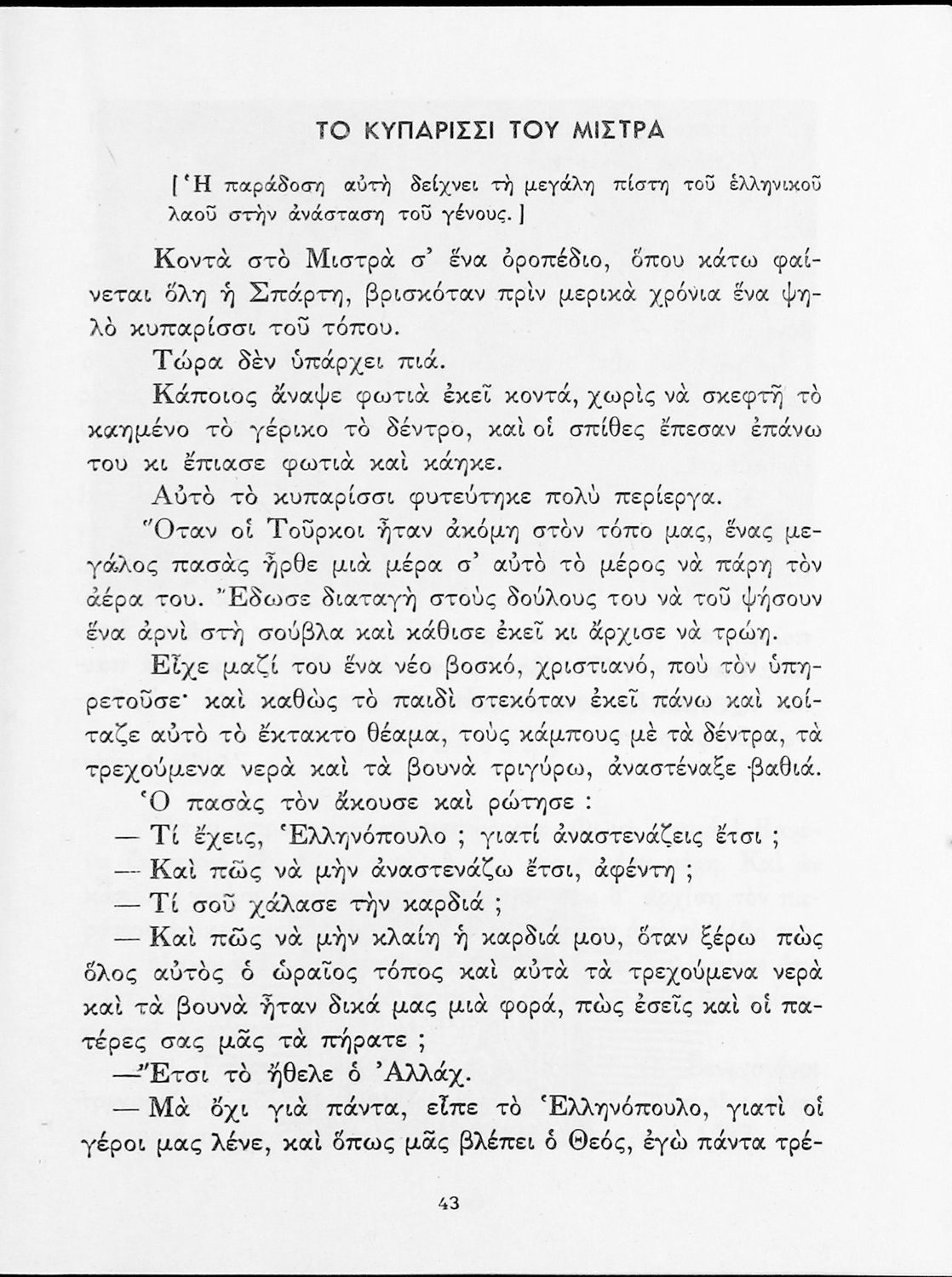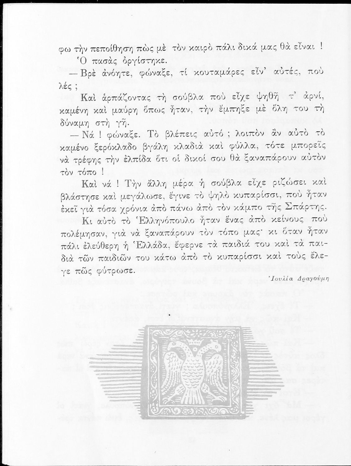 Αναγνωστικό της ΣΤ΄ Δημοτικού που κυκλοφόρησε σε 7.000 αντίτυπα 25 ημέρες πριν την 4η Αυγούστου 1936, οπότε κατά την επόμενη σχολική χρονιά διδάχτηκε ελάχιστα και η έκδοσή του με αυτή την μορφή σταμάτησε.