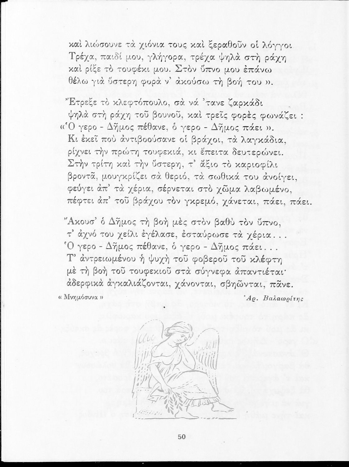Αναγνωστικό για τους μαθητές της ΣΤ΄ τάξης του Δημοτικού που περιέχει πεζά και ποιήματα Ελλήνων λογοτεχνών για την εκμάθηση της Ελληνικής γλώσσας.