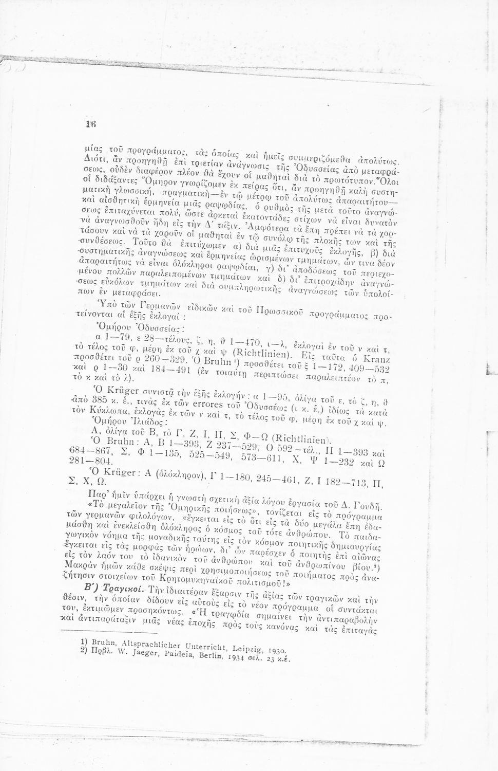 520 ## _aΑνατύπωση άρθρου που πρωτοδημοσιεύτηκε στο Δελτίον Ομοσπονδίας Λειτουργών Μέσης Εκπαιδεύσεως (Μάιος 1934, φ. 91) και αποτελεί μια κριτική αποτίμηση του αναλυτικού προγράμματος των Αρχαίων Ελληνικών για τα Γυμνάσια. Η μελέτη εκπονήθηκε κατόπιν παραγγελίας του Ν. Εξαρχόπουλου που ήταν επόπτης του Πειραματικού Σχολείου. Περιλαμβάνει πίνακα που συγκρίνει το αναλυτικό πρόγραμμα Αρχαίων Ελληνικών και Ιστορίας του ελληνικού και του πρωσσικού Γυμνασίου.