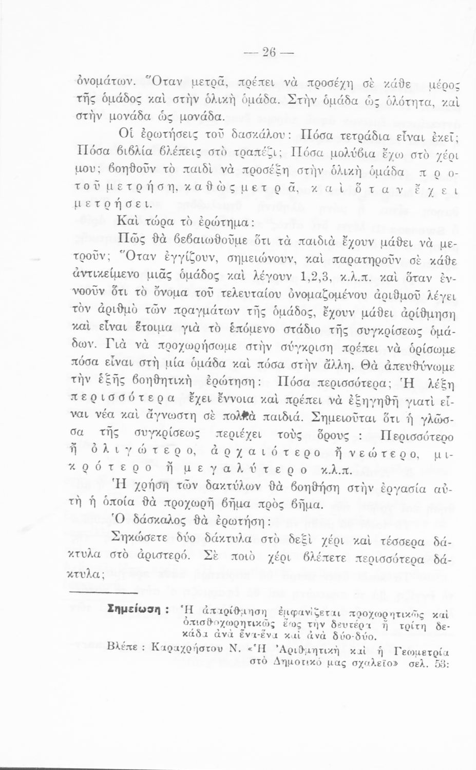 Παιδαγωγικό βοήθημα το οποίο σκοπό είχε να προετοιμάσει εκπαιδευτικούς και γονείς στη διδασκαλία της Αριθμητικής στην Α΄ Δημοτικού. Φέρει ιδιόχειρη αφιέρωση καθώς και σκίτσα για τη διευκόλυνση της διδασκαλίας.