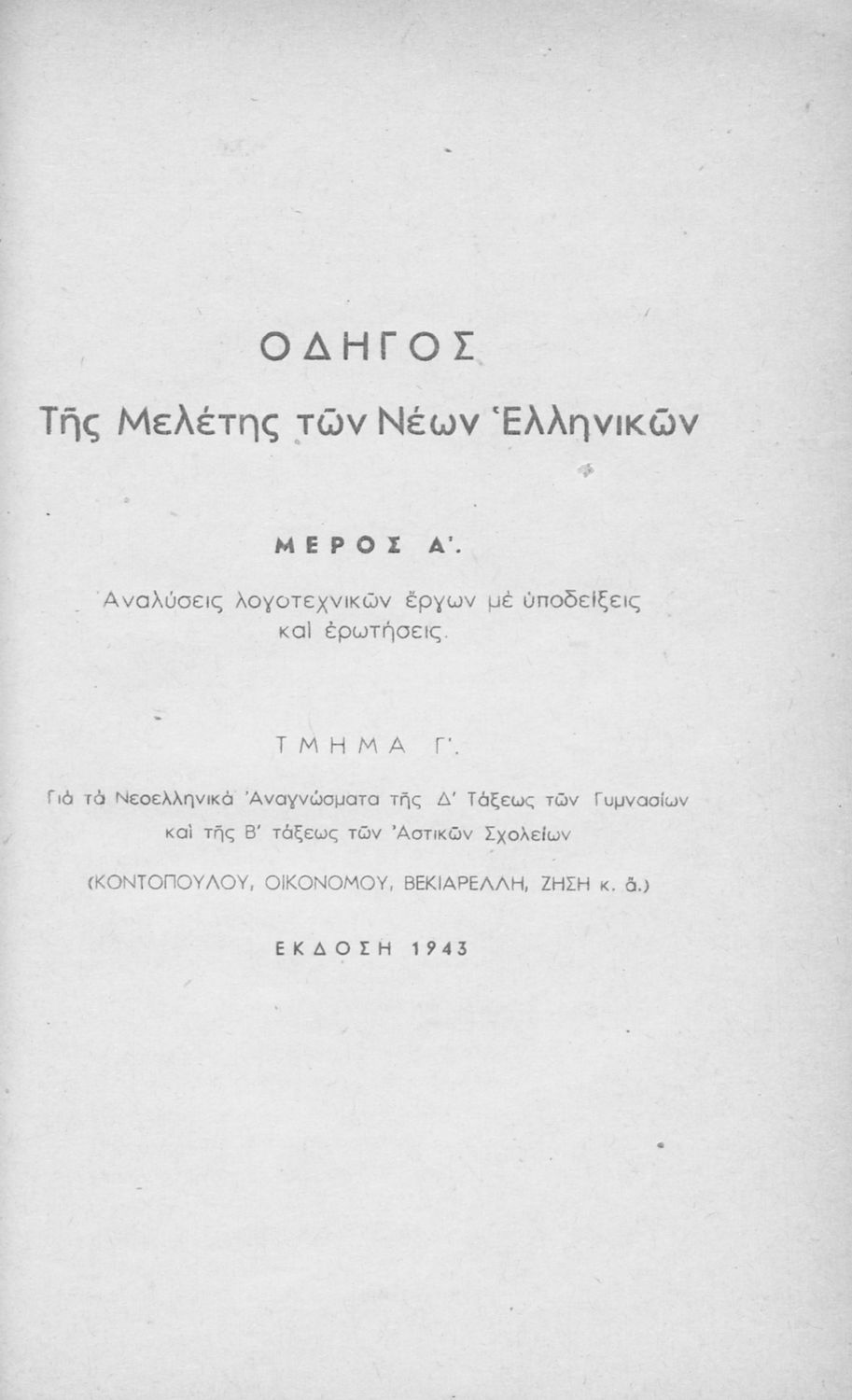 Οδηγός της μελέτης των Νέων Ελληνικών . Διά τους μαθητάς των Γυμνασίων, Πρακτικών Λυκείων και λοιπών Σχολείων της Μέσης Εκπαιδεύσεως