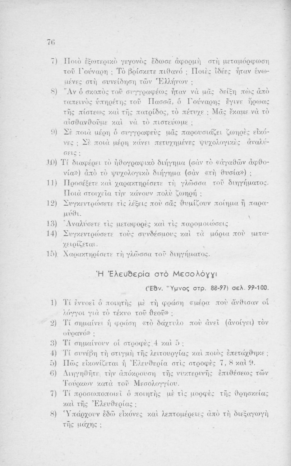 Μαθητικό βοήθημα Νέων Ελληνικών για τη Μέση Εκπαίδευση που περιέχει αναλύσεις λογοτεχνικών έργων, υποδείξεις και ερωτήσεις.