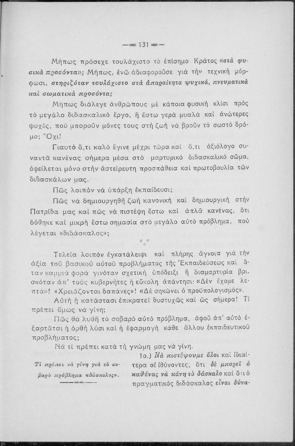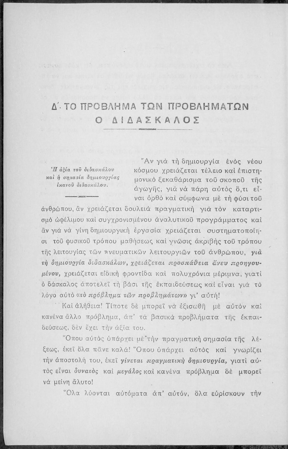 Τίτλος: Τα βασικά εκπαιδευτικά προβλήματα. Σκοπός της αγωγής. Επίσημο Αναλυτικό Πρόγραμμα - Μέθοδος διδασκαλίας. Ο διδάσκαλος «Το πρόβλημα των προβλημάτων»