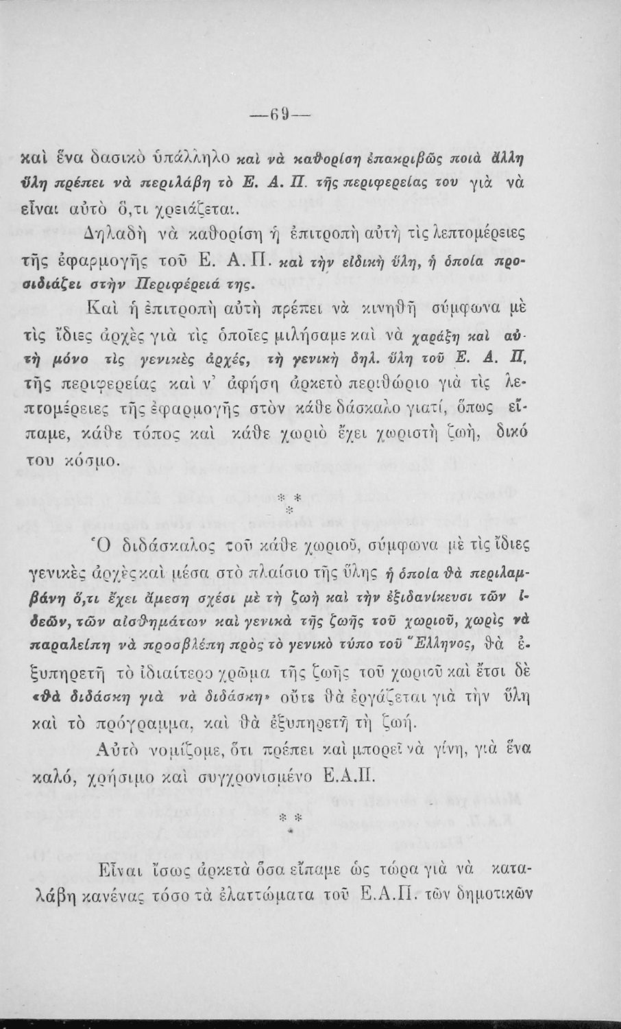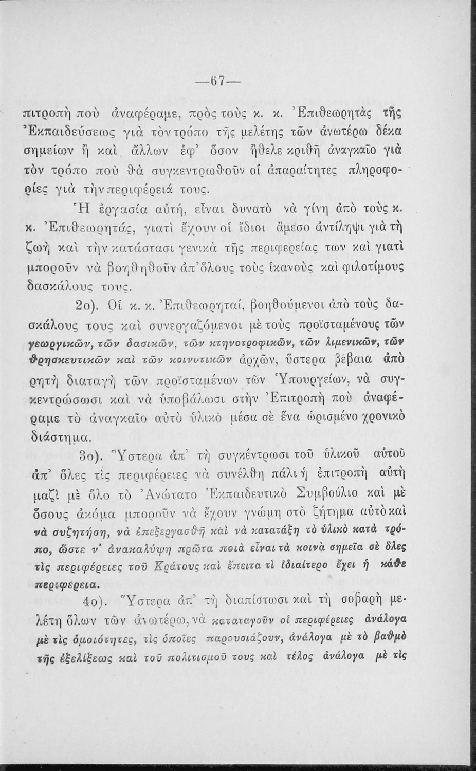 Εισηγητική έκθεση που απευθύνεται στο Υπουργείο Δημόσιας Παιδείας και πραγματεύεται ζητήματα οργάνωσης, διοίκησης, δομής και λειτουργίας του εκπαιδευτικού συστήματος στην Ελλάδα.