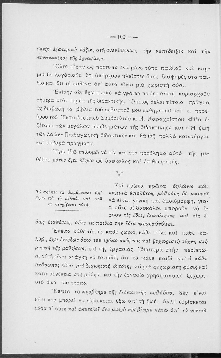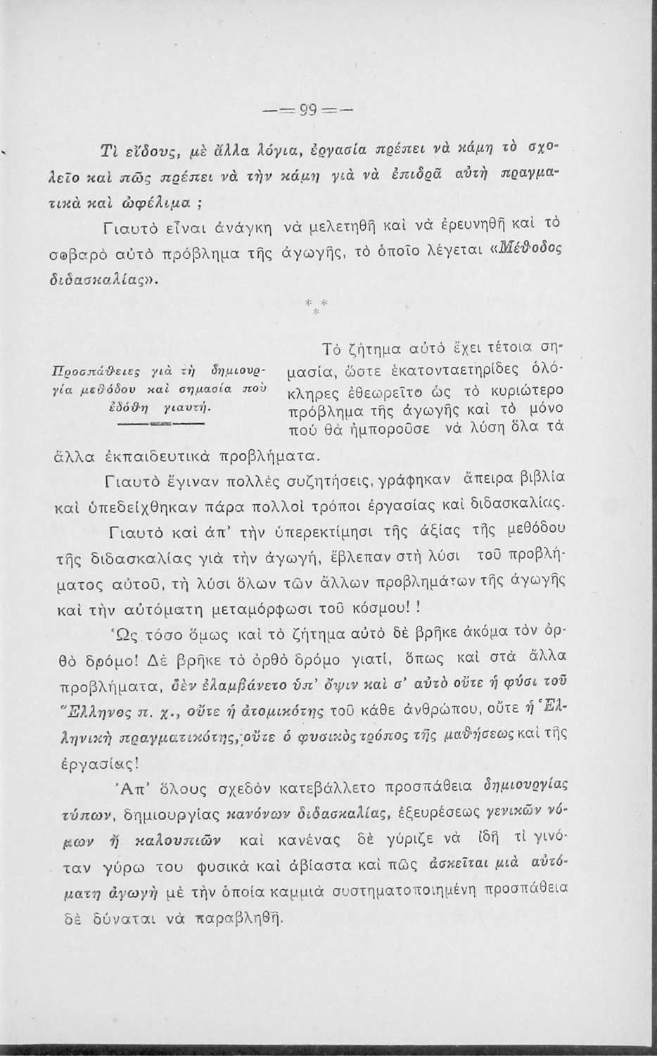 Τίτλος: Τα βασικά εκπαιδευτικά προβλήματα. Σκοπός της αγωγής. Επίσημο Αναλυτικό Πρόγραμμα - Μέθοδος διδασκαλίας. Ο διδάσκαλος «Το πρόβλημα των προβλημάτων»