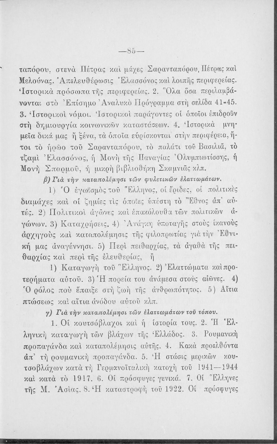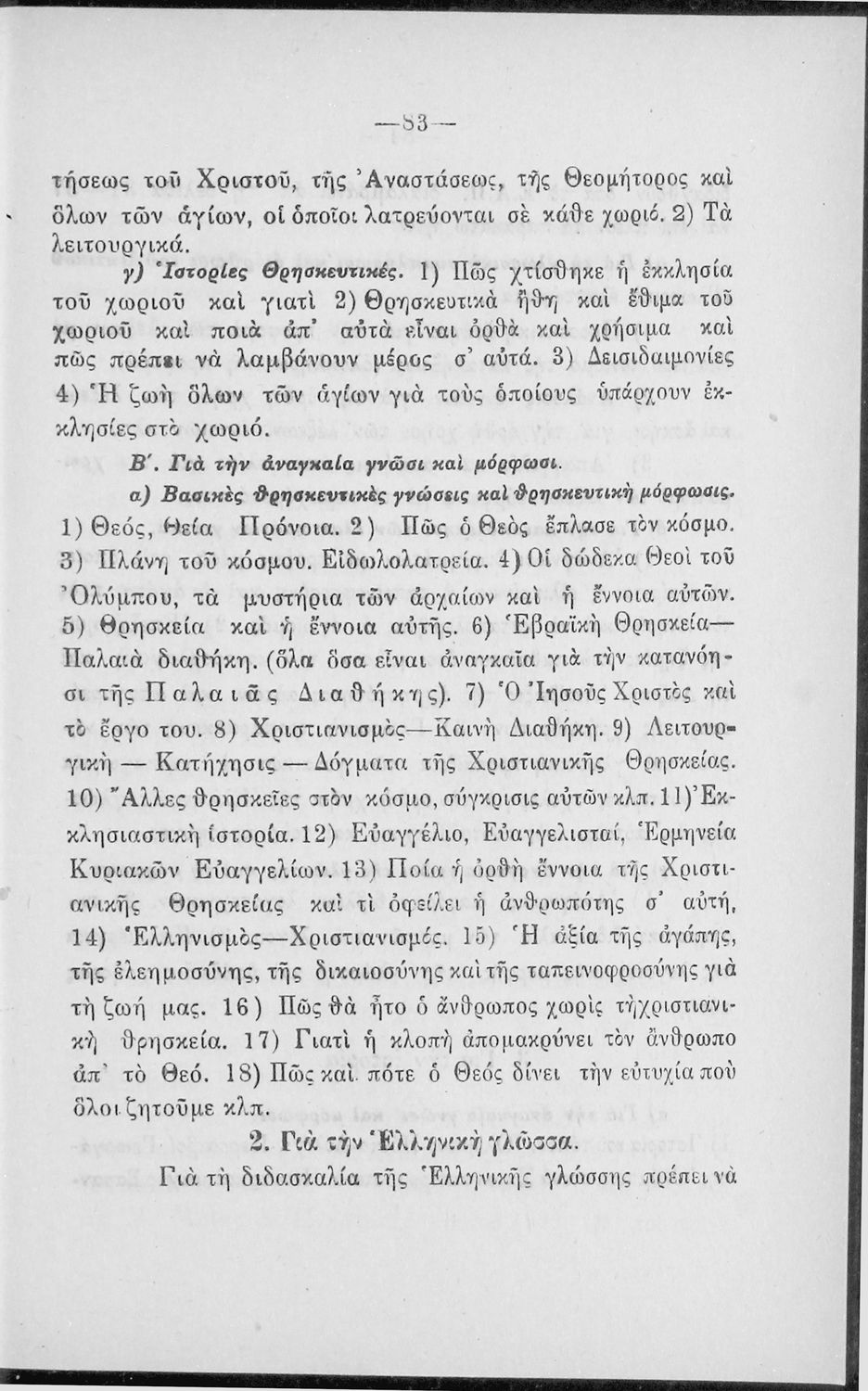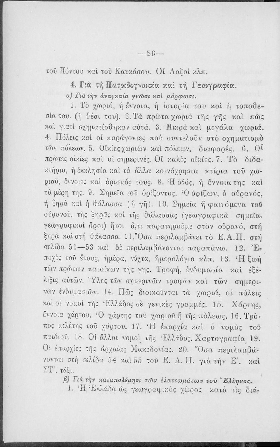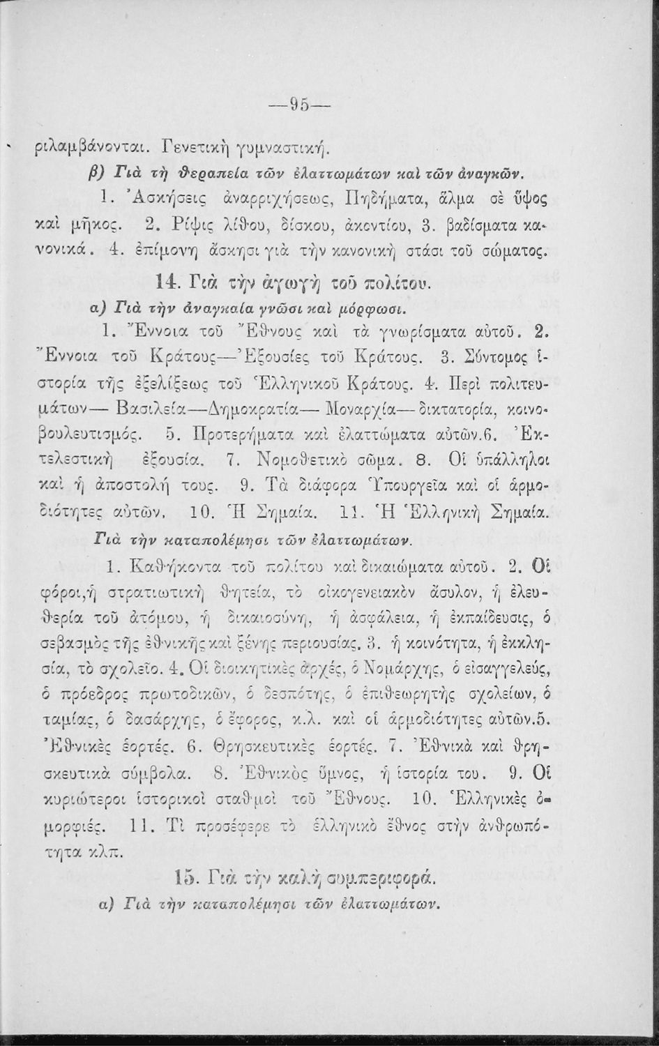 Έκδοση του Υπουργείο Παιδείας που περιλαμβάνει τα ωρολόγια αναλυτικά προγράμματα των μαθημάτων που διδάσκονται στα Εξατάξια Γυμνάσια, Πρακτικά Λύκεια, Ανώτερα Παρθεναγωγεία και τα Τριτάξια Αστικά Σχολεία.