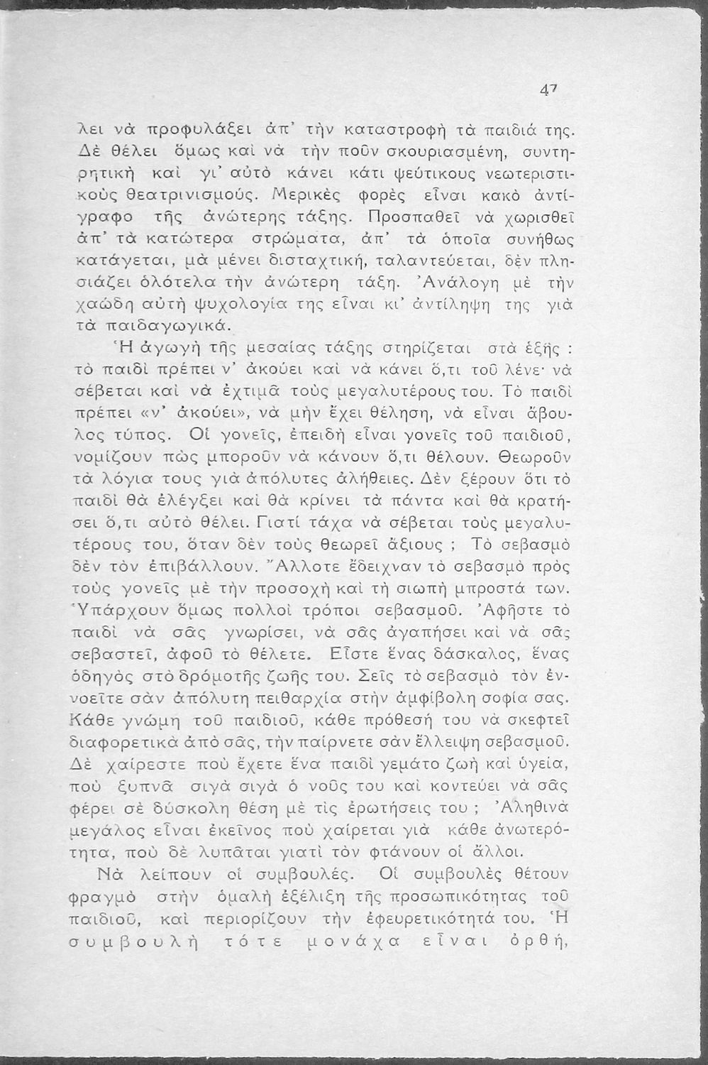 Παιδαγωγικό βοήθημα στο οποίο αναλύεται η σπουδαιότητα του ρόλου της μάνας στην αγωγή και την εκπαίδευση του παιδιού. Ο συγγραφέας υπήρξε Διευθυντής του Πειραματικού Σχολείου Πανεπιστημίου Θεσσαλονίκης.