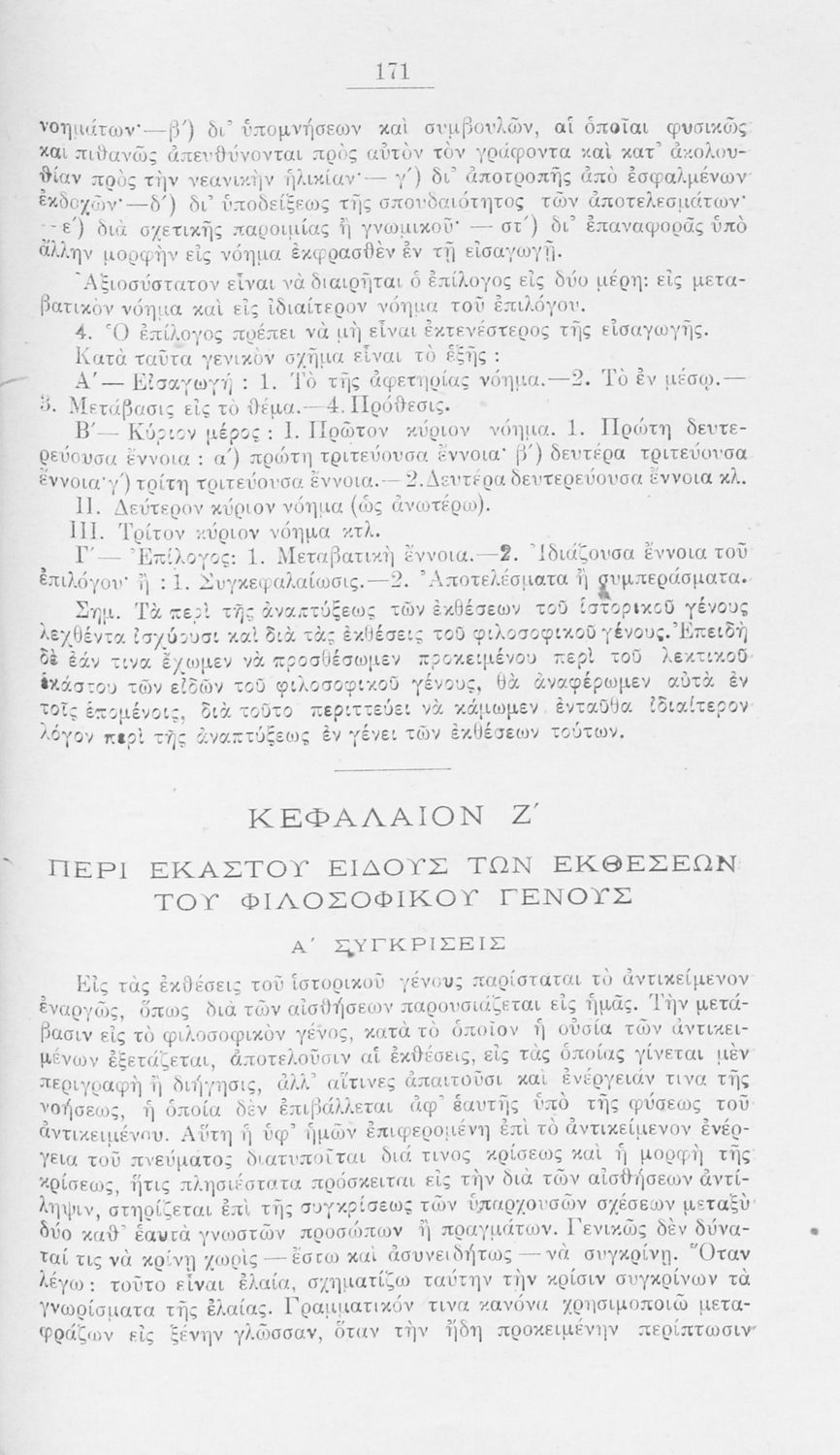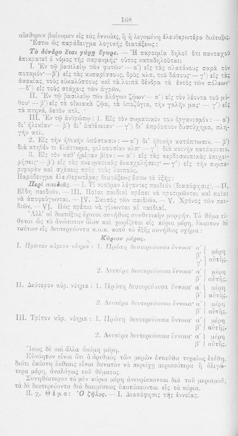 Βαθμίδα εκπαίδευσης: Δευτεροβάθμια Τάξη: Γυμνάσιο Μάθημα: Νέα Ελληνικά Γλώσσα: Καθαρεύουσα Παρουσίαση περιεχομένου: Παιδαγωγικό βοήθημα Νέων Ελληνικών Γυμνασίου που εστιάζει στην οριοθέτηση, δομή και ανάπτυξη ενός θέματος, το οποίο, με τη σειρά του, υποδιαιρείται σε ιστορικό και λογικό/φιλοσοφικό. Περιέχει υποδειγματικές διδασκαλίες εκθέσεων. |