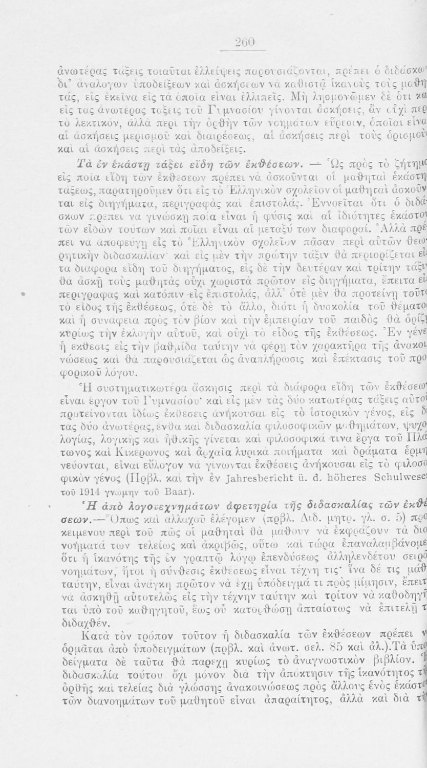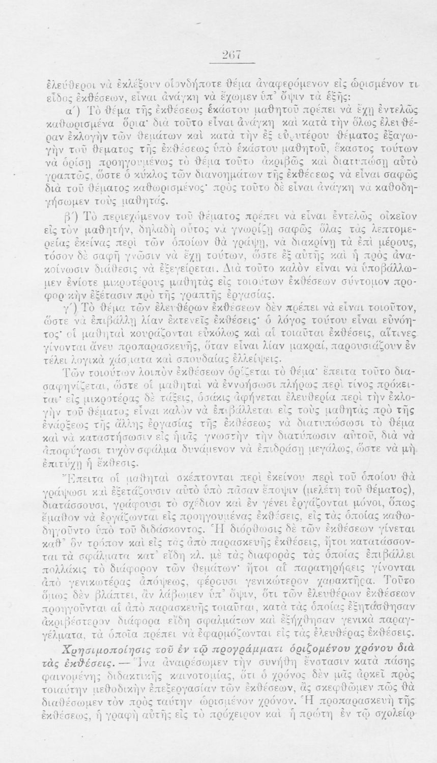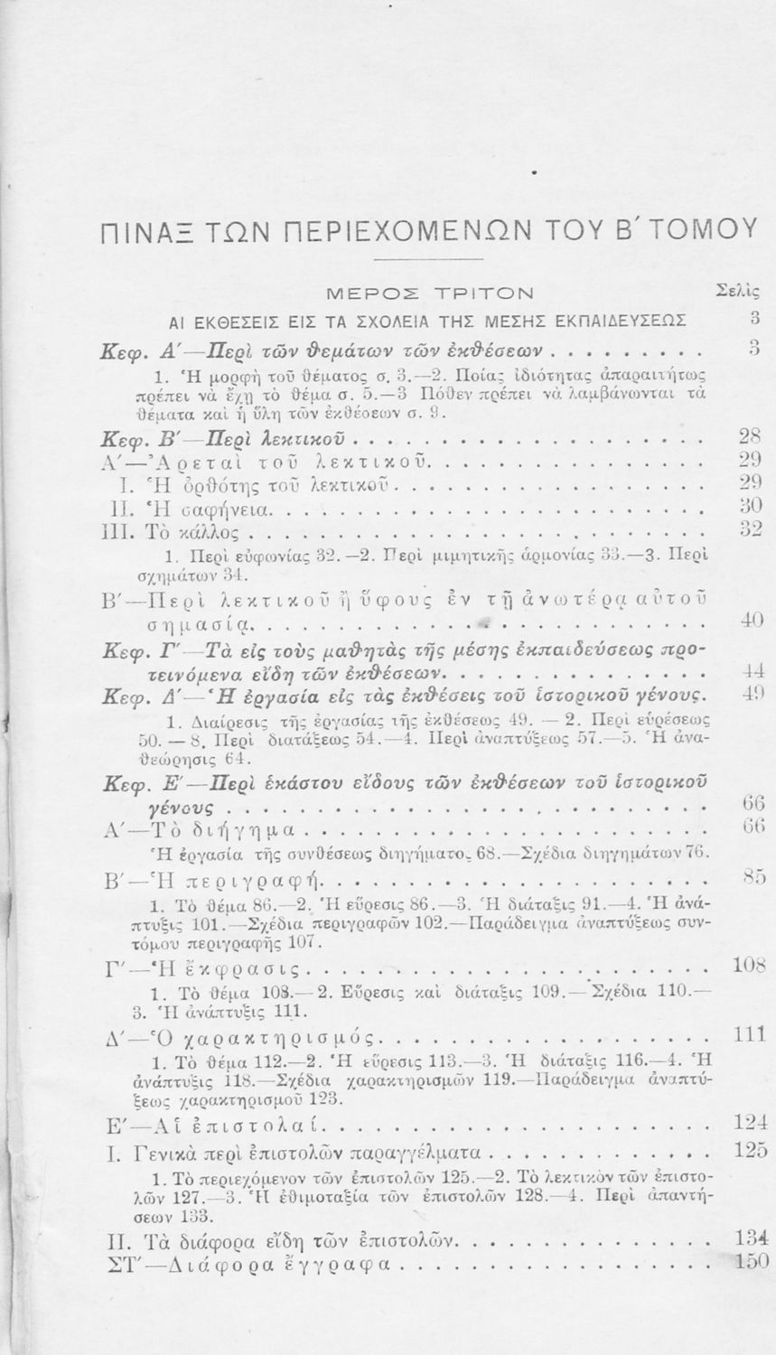 Παιδαγωγικό βοήθημα Νέων Ελληνικών Γυμνασίου που εστιάζει στην οριοθέτηση, δομή και ανάπτυξη ενός θέματος, το οποίο, με τη σειρά του, υποδιαιρείται σε ιστορικό και λογικό/φιλοσοφικό. Περιέχει υποδειγματικές διδασκαλίες εκθέσεων.
