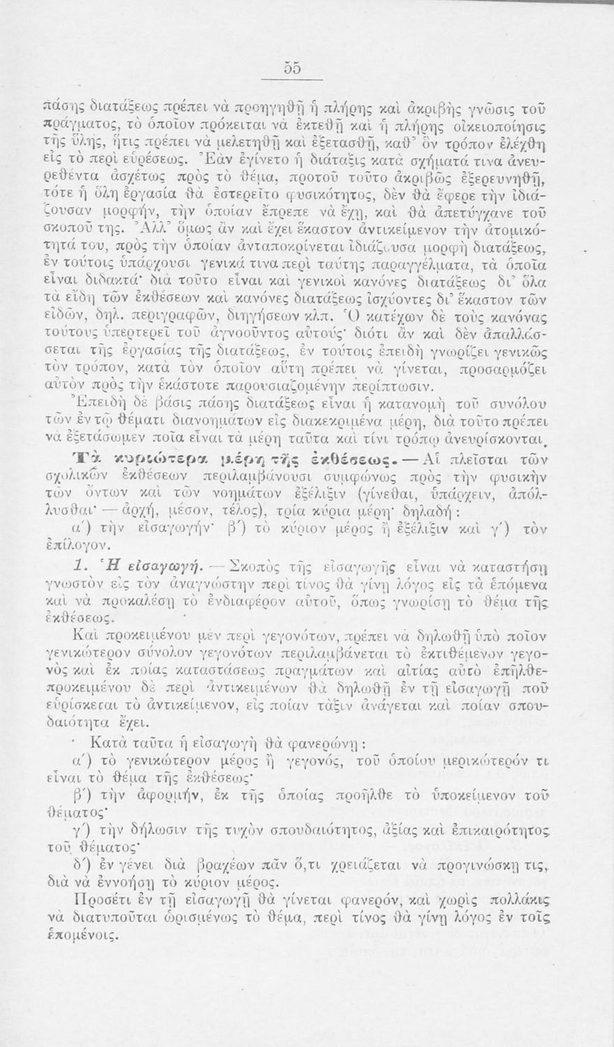 Παιδαγωγικό βοήθημα Νέων Ελληνικών Γυμνασίου που εστιάζει στην οριοθέτηση, δομή και ανάπτυξη ενός θέματος, το οποίο, με τη σειρά του, υποδιαιρείται σε ιστορικό και λογικό/φιλοσοφικό. Περιέχει υποδειγματικές διδασκαλίες εκθέσεων.