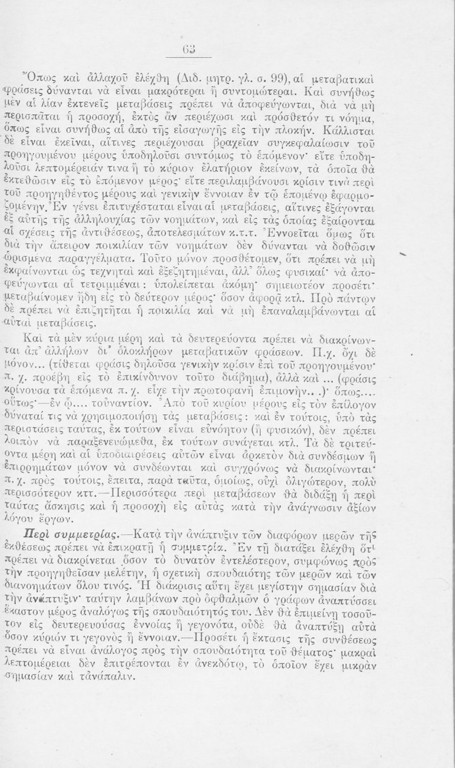Βαθμίδα εκπαίδευσης: Δευτεροβάθμια Τάξη: Γυμνάσιο Μάθημα: Νέα Ελληνικά Γλώσσα: Καθαρεύουσα Παρουσίαση περιεχομένου: Παιδαγωγικό βοήθημα Νέων Ελληνικών Γυμνασίου που εστιάζει στην οριοθέτηση, δομή και ανάπτυξη ενός θέματος, το οποίο, με τη σειρά του, υποδιαιρείται σε ιστορικό και λογικό/φιλοσοφικό. Περιέχει υποδειγματικές διδασκαλίες εκθέσεων. |