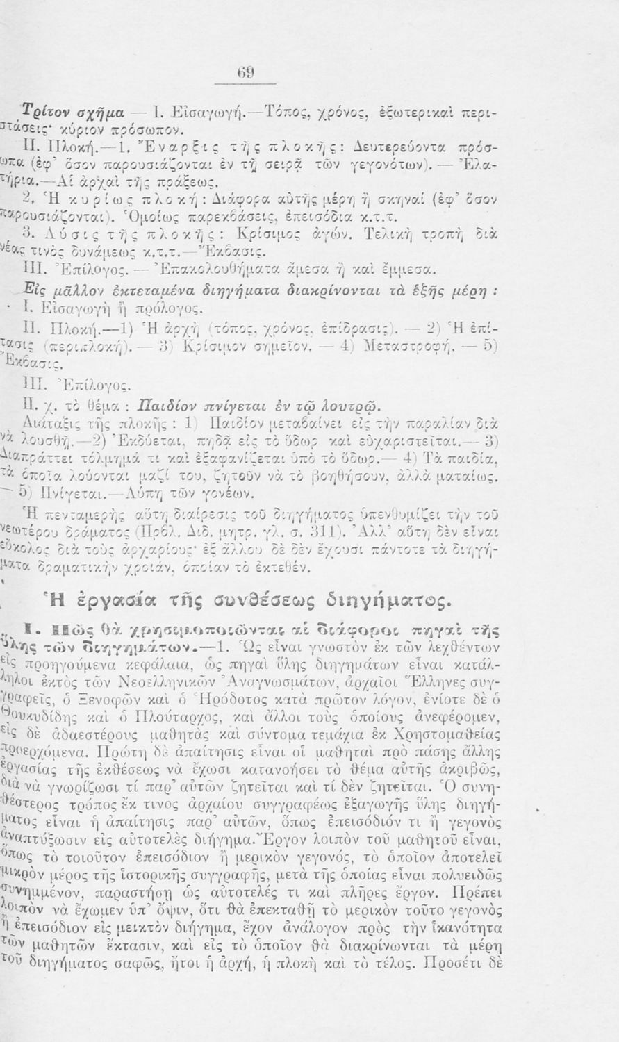 Παιδαγωγικό βοήθημα Νέων Ελληνικών Γυμνασίου που εστιάζει στην οριοθέτηση, δομή και ανάπτυξη ενός θέματος, το οποίο, με τη σειρά του, υποδιαιρείται σε ιστορικό και λογικό/φιλοσοφικό. Περιέχει υποδειγματικές διδασκαλίες εκθέσεων.